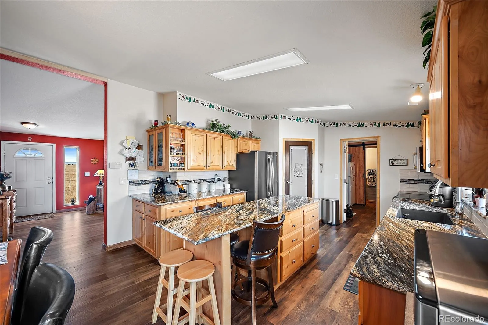 Experience the perfect blend of country living and modern convenience just east of Colorado Springs! This well maintained 4-bedroom, 3-bathroom home sits on large acreage, with expansive unobstructed mountain views that create a stunning backdrop from sunrise to sunset. Located just off a main paved road, this property offers easy access to town while still providing the peace, privacy, and open space of rural living.