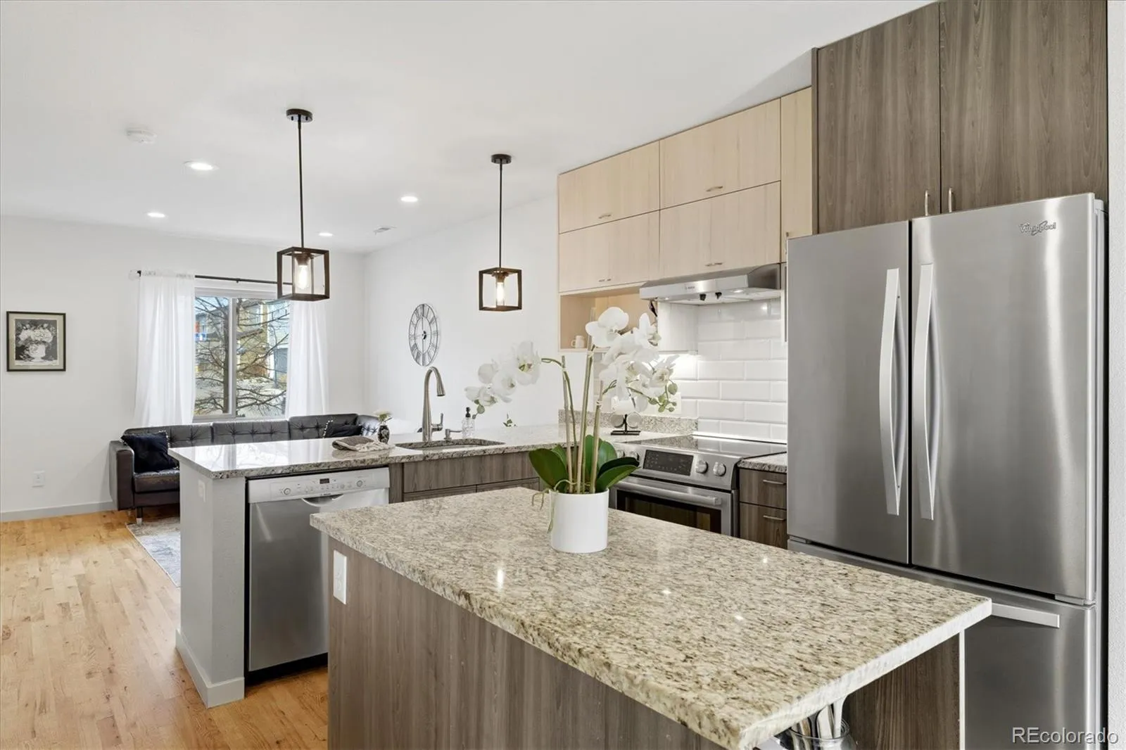 Super warm and cute end-unit townhome in the highly efficient GEOs community of West Arvada! Built in 2017, this 3-bed/3-bath home offers modern finishes, hardwood floors, a bright, open layout, and a fully finished basement. Designed for comfort and sustainability, GEOs homes feature advanced insulation, high-efficiency windows, all-electric systems, rooftop solar, and no on-site fossil fuel use, resulting in impressively low utility costs.