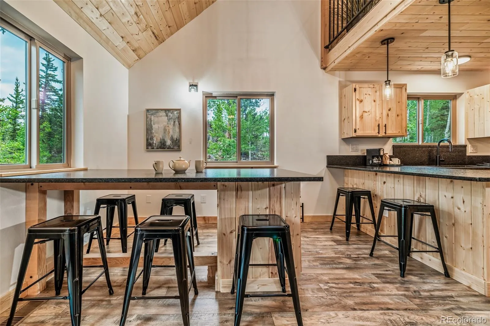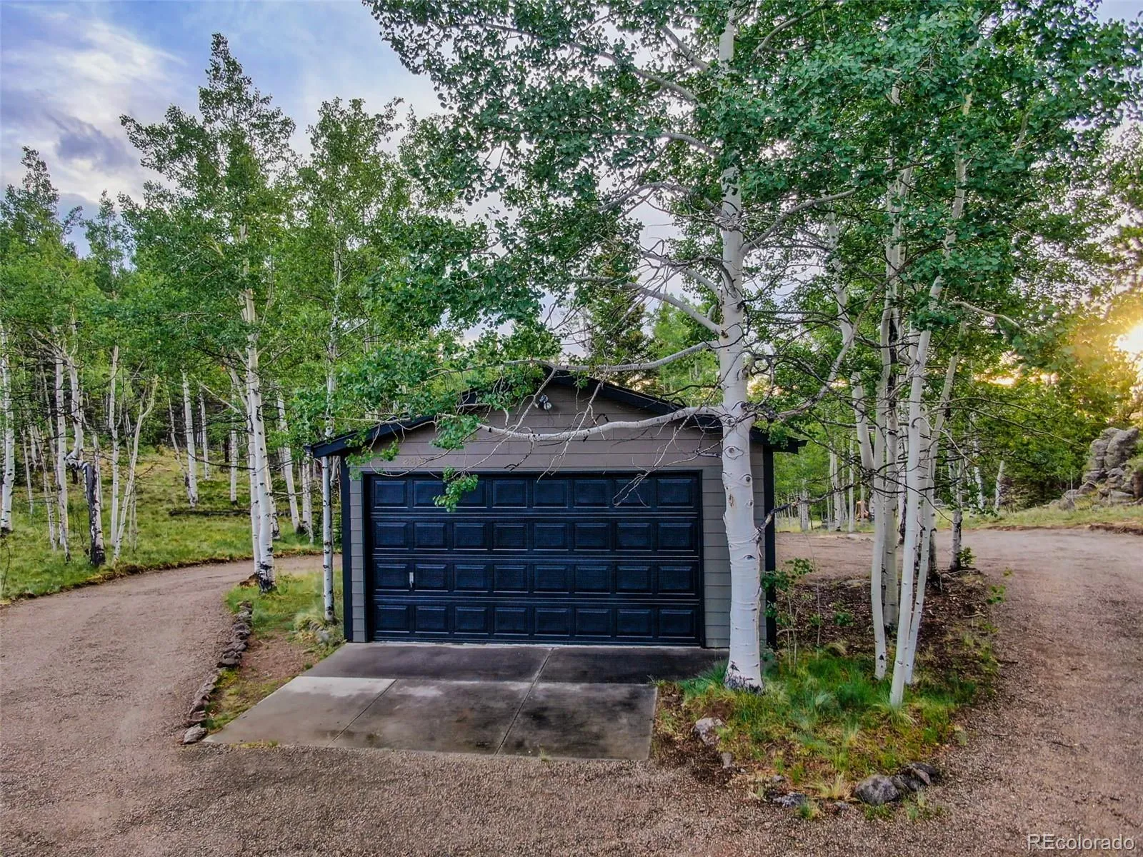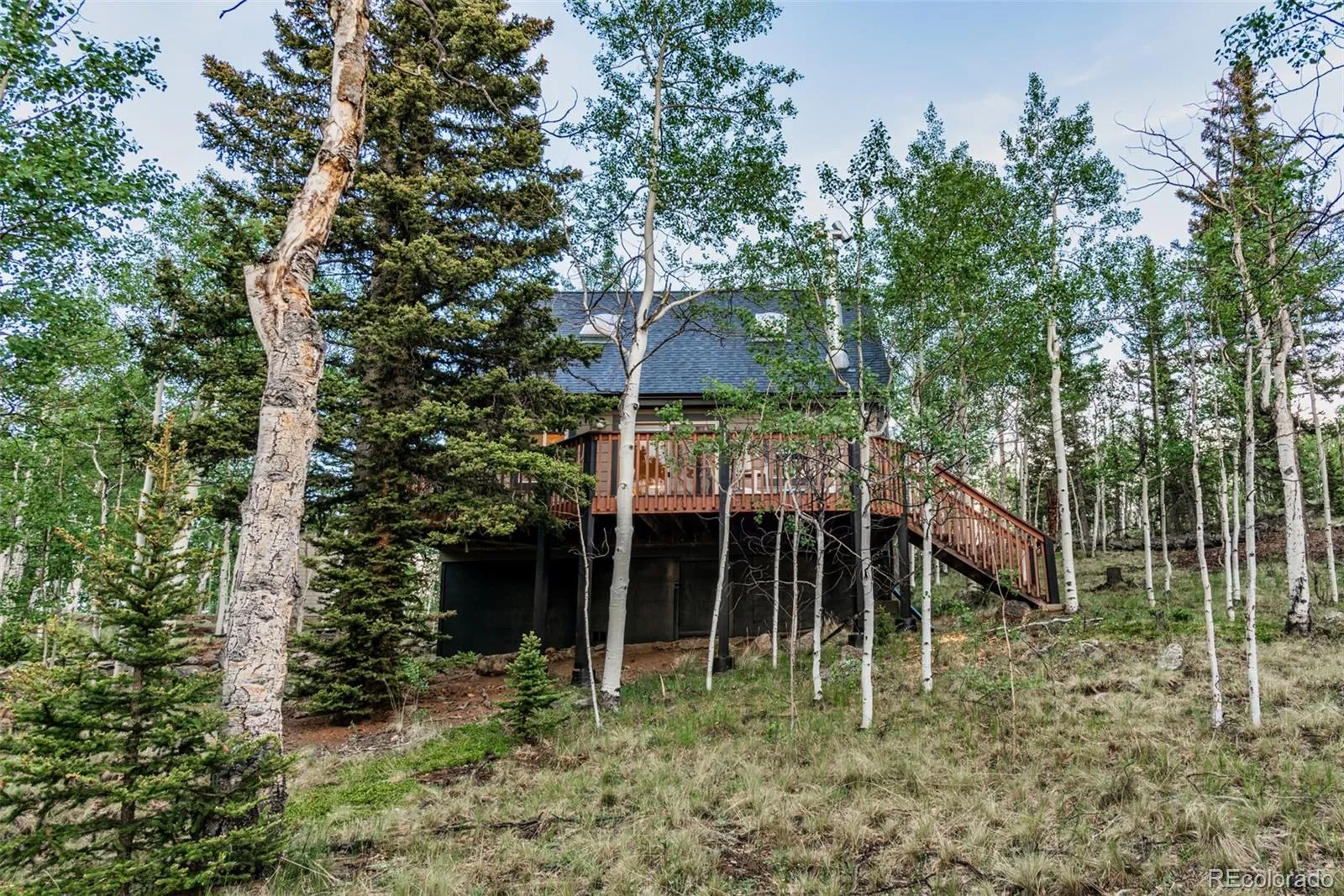 This mountain cabin has been completely, meticulously, and beautifully remodeled. From the first glimpse of the two level cabin, with a main level covered front entry and a charming balcony off the second level, you will fall in love. The great room, with so many unique features, will become your favorite space. The weathered looking wood floors add warmth, the wood burning stove with a roomy hearth for firewood, and t&g walls and ceilings give the space that cozy cabin ambiance. Windows all around let in the 300 days of Colorado sunshine. A sliding wall holds your television so you can tuck it out of the way. A bar with extra storage is nestled under the stairs. A built in dining table topped with luxurious leathered granite is perfect for any get together. The open kitchen has the same granite countertops, a pantry, high end finishes, custom cabinets, and extra seating. Or, step outside onto the back deck to enjoy your morning coffee and stunning views of mountains, rock outcroppings, and an abundance of mature Pine and Aspen. The main level is finished off with a bedroom, full bath, and a utility/laundry room. Upstairs are two additional bedrooms, a 3/4 bath, and the most charming loft space. The views are inspiring. The circular driveway surrounds an oversized, 3 car garage with a wood stove. This space is so versatile. The front space is large enough to be used as a garage plus a workshop. The rear space would be a perfect for a man cave, home gym, or entertaining. All this located in the Stagestop community which offers all the amenities that make Colorado so attractive. The Property backs up to BLM LAND. Stagestop residents have exclusive access over 17 miles of private fly fishing on the Tarryall River and three stocked ponds. Just about an hour to skiing in Breckenridge or rafting the Arkansas River, and only an hour and a half to both Denver and Colorado Springs, the cabin is the ideal vacation getaway, full time residence, or short term rental prospect.