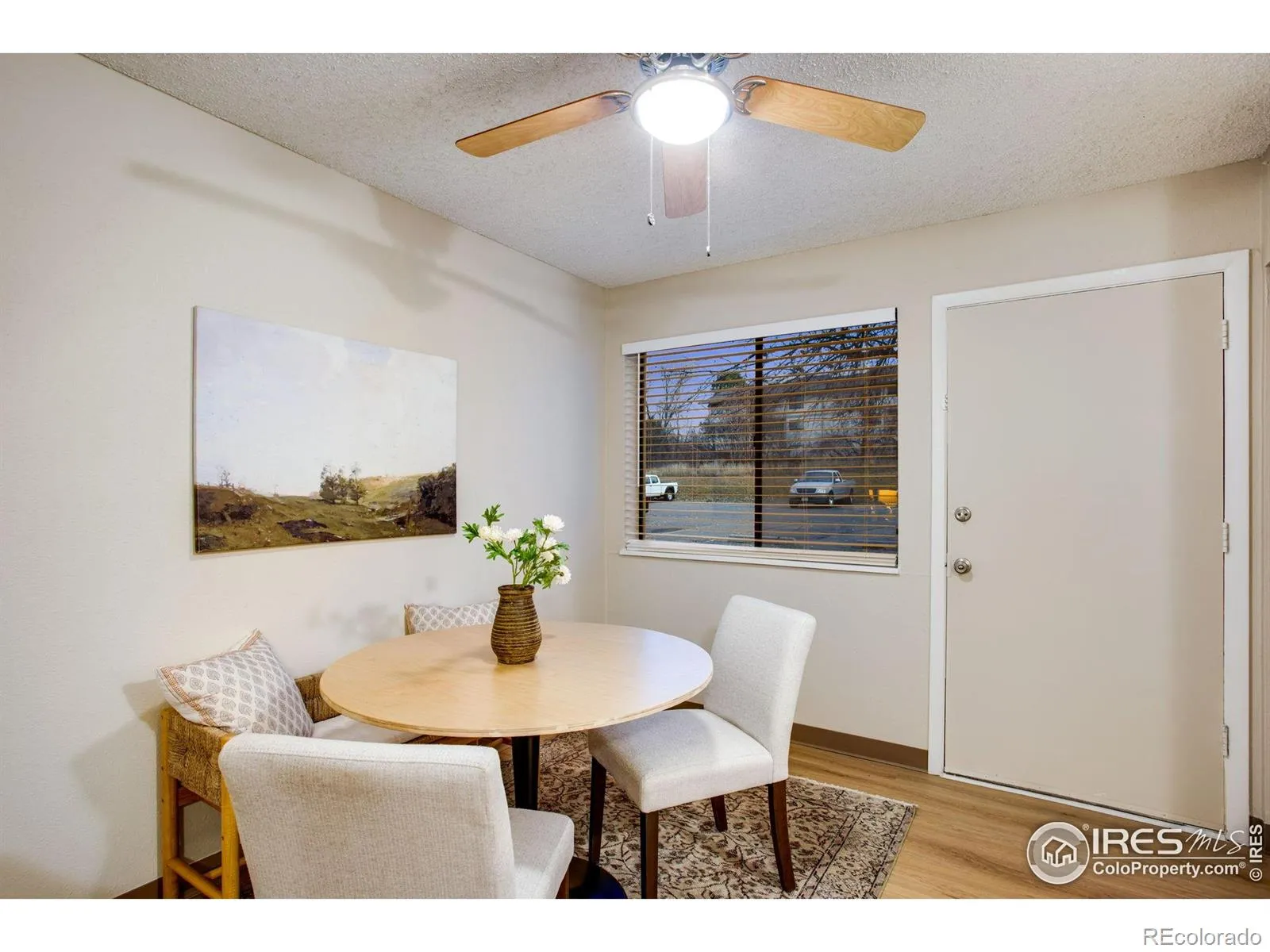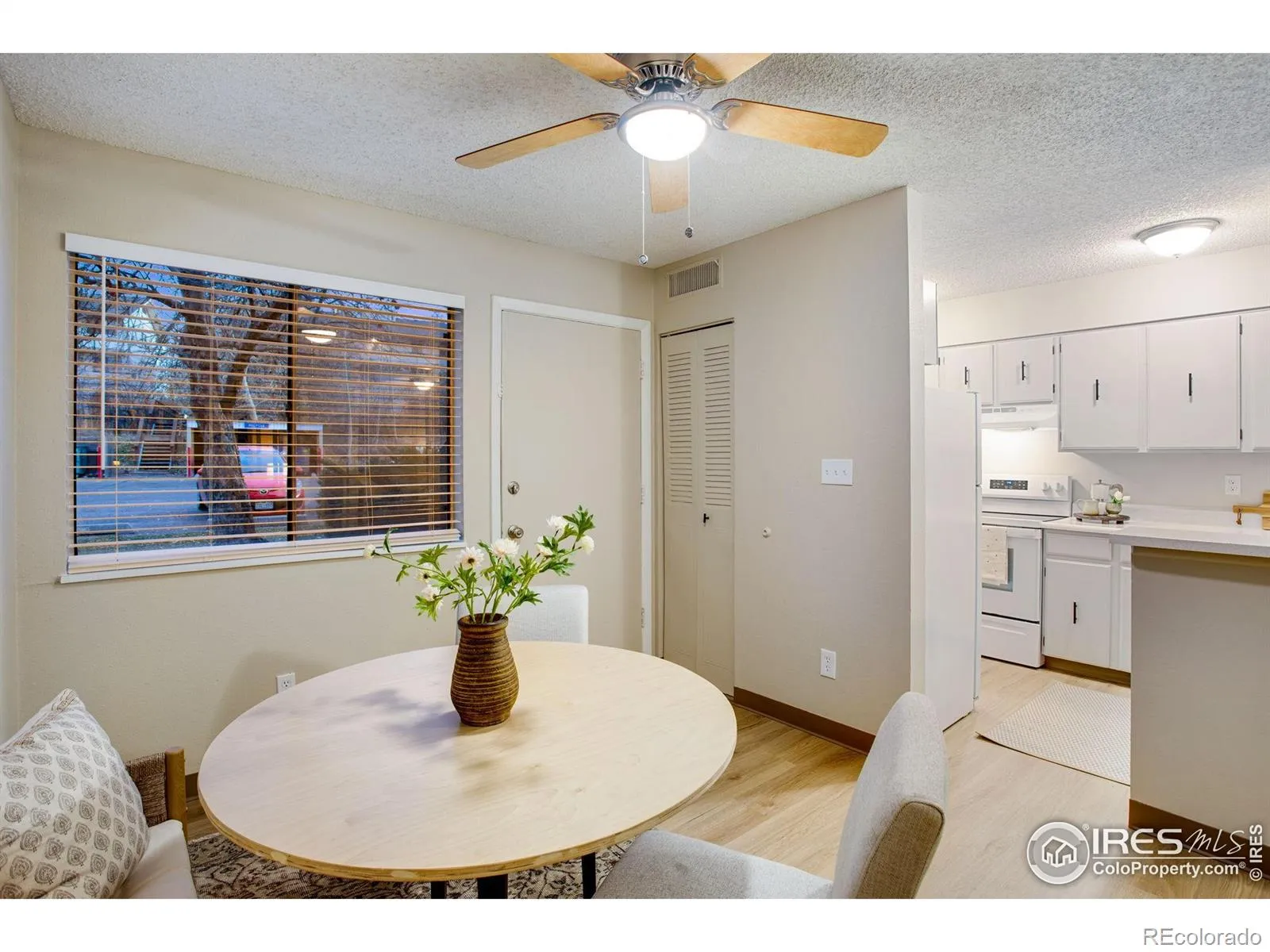 2-Bed Condo Near CSU! This move-in ready condo offers the perfect blend of modern updates and natural surroundings. Near open space with paths and trails, the property backs directly to a lake and greenbelt, creating a peaceful retreat while still being close to campus, shopping, and dining. Inside, you’ll find a complete repaint, along with refinished kitchen and bath cabinets accented by new hardware. The kitchen shines with brand-new countertops and appliances. The bathrooms have also been thoughtfully upgraded. Additional improvements include new windowsills, blinds, and light fixtures throughout, plus a ceiling fan in the dining area. Flooring has been refreshed with new laminate on the main level and in the upstairs full bath, complemented by plush new carpet and pad in the bedrooms and walk-in closets. Modern touches such as new door knobs, a new water heater, and recently replaced A/C and furnace (five years old, with filter changed) add peace of mind. Beyond the home itself, residents enjoy access to a welcoming community garden – perfect for those who love to grow their own flowers, herbs, or vegetables. There is also a pool, clubhouse, and on-site laundry facility, adding convenience and opportunities for relaxation and connection. With its extensive updates, prime location, and inviting amenities, this condo is an ideal choice for anyone seeking comfort, convenience, and a connection to nature.