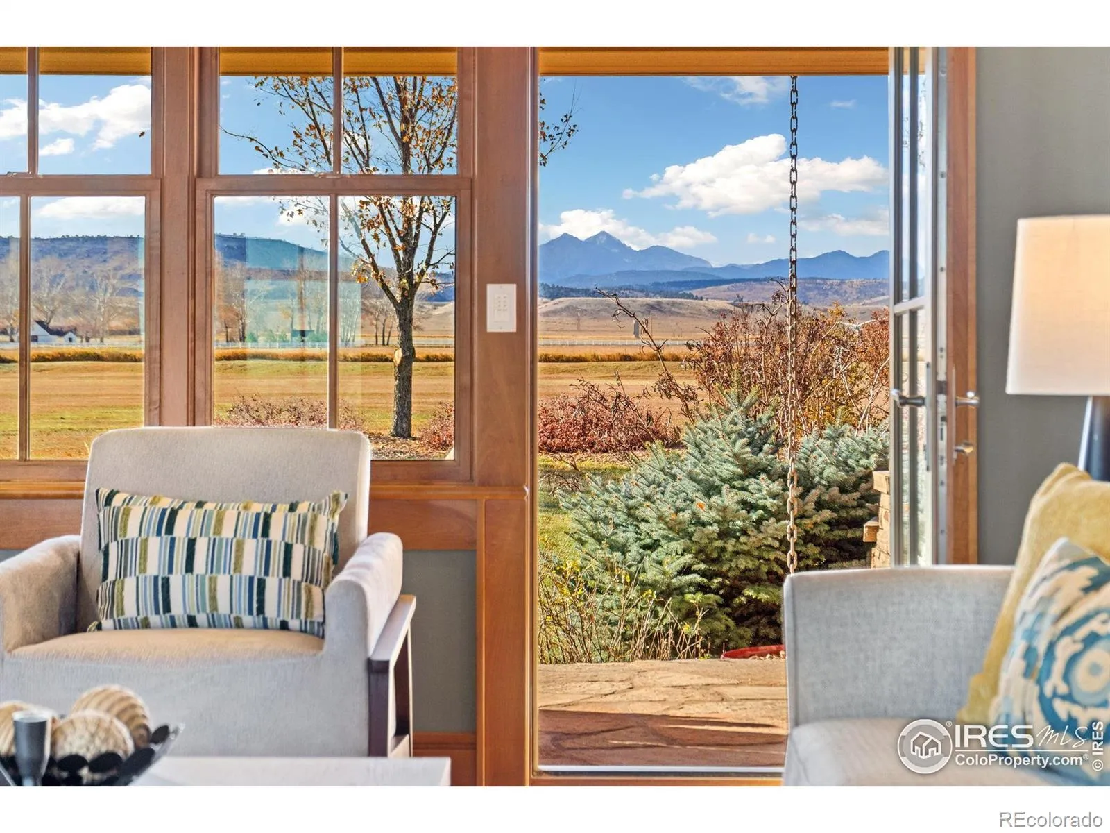 Welcome to 14754 Creekside Lane, a stunning one-of-a-kind Colorado sanctuary in Boulder County. Set on more than 4 acres at the end of a private lane and surrounded by permanent conservation easements, this custom-built home offers uninterrupted views of the plains and front range, including iconic Longs Peak and Mt. Meeker. Arcadea Architect designed, this home showcases exceptional quality, materials and detail such as locally quarried Colorado Buff sandstone, cedar siding and shingles, Douglas Fir timber beams and copper accents. An acre of fully irrigated, mature landscaping surrounds the home with over 200 shrubs and established trees, creating a lush, private setting. Flanked with 1600 square feet of flagstone patios and an outdoor fireplace, it’s the ideal place to relax, entertain, or watch the Oreo cows grazing in the adjacent field. Warm American cherry millwork, 9-foot ceilings, and full custom cabinetry add richness, warmth and character throughout the home. The main floor offers a functional layout, highlighted by a chef’s kitchen, home office, living room, and a fireplace. An expansive mudroom with built-in storage, conveniently located next to the laundry room and kitchen, streamlines everyday living. The upper level has cozy loft spaces, three bedrooms and a generous primary suite with a 5-piece luxury bath and walk-in closet. Comfort meets efficiency with in-floor radiant heat throughout both the house and the garage, high-quality Kolbe windows and doors designed to maximize energy performance and natural light. Outdoor living is exceptional with a garden area, and ample room for larger ambitions-whether planting a vineyard, establishing an orchard, or designing your own sanctuary. The carriage house offers a 4th bedroom, bath, and rec room, 2nd office, gym, or craft space. A rare blend of craftsmanship, privacy, modern comfort, and sweeping Colorado views, this property offers an extraordinary lifestyle in an unmatched setting. Love Where You Live