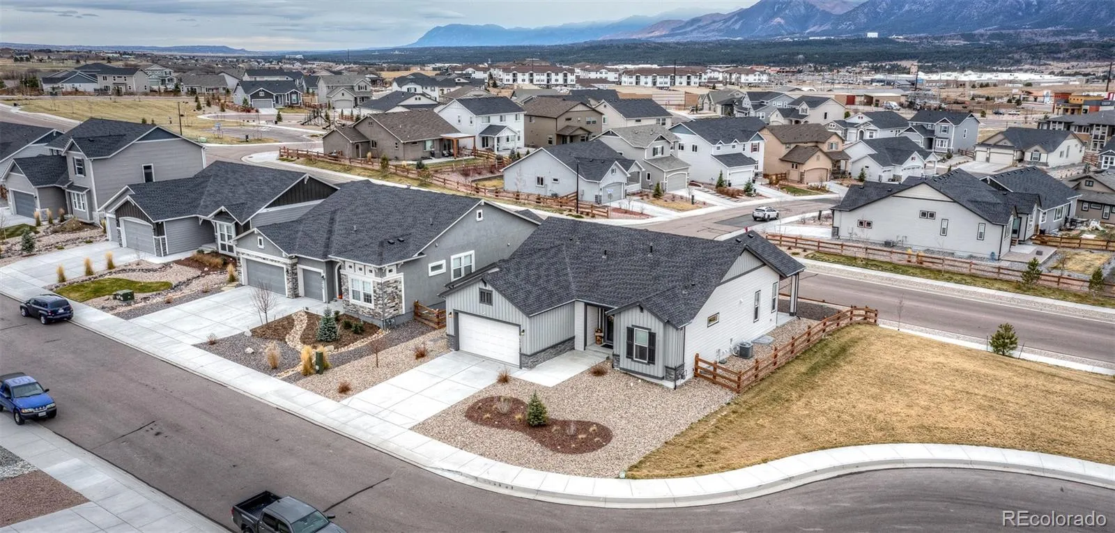 Experience Colorado living at its finest in this stunning Classic Homes residence, built in 2022 and perfectly positioned on a spacious corner lot in a quiet Monument cul-de-sac. With unobstructed views of the Front Range and iconic Pikes Peak, this meticulously maintained home offers 4 bedrooms, 3 bathrooms, and over 3,100 square feet of beautifully designed living space. From the moment you enter, you’ll appreciate the bright, open layout enhanced by custom windows that frame the mountain scenery. The gourmet kitchen features granite countertops, stainless steel appliances, a gas cooktop, modern pendant lighting, and a large center island that flows into the dining area and inviting great room. A cozy gas fireplace adds warmth and charm, making this space ideal for everyday living or entertaining. The main-level primary suite serves as a private retreat with its spacious design, double vanity, walk-in shower, and expansive walk-in closet. A second main-floor bedroom offers excellent flexibility for guests or a home office. The finished basement expands the home’s livability with a generous family room perfect for a home theater or game area, along with two additional bedrooms, a full bathroom, and a versatile storage room that can function as a gym or be finished into a fifth bedroom. Outside, the fully landscaped yard includes an automatic sprinkler system, while the oversized two-car garage provides EV charging capability for added convenience. Smart home features enhance efficiency throughout, and the quiet cul-de-sac location offers direct access to open space for outdoor enjoyment. Combining breathtaking views, modern finishes, and thoughtful design, this move-in-ready home represents the best of Monument living. Don’t miss the opportunity to make it yours.