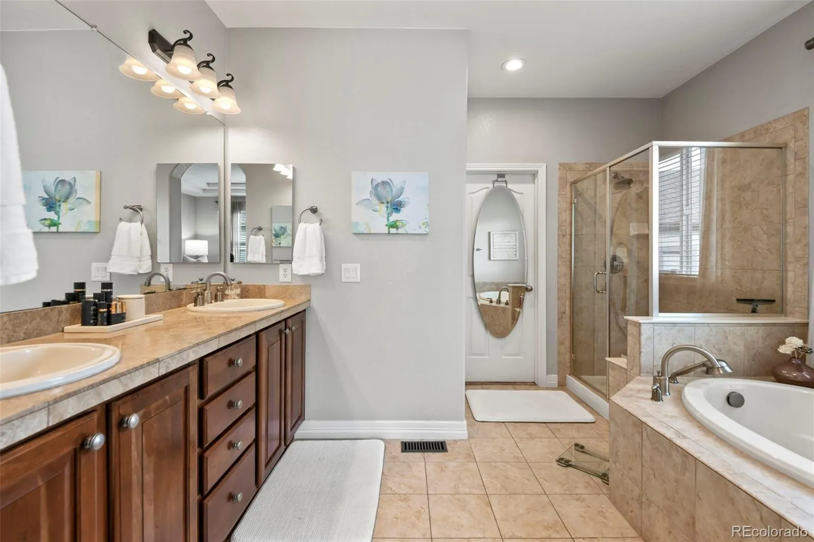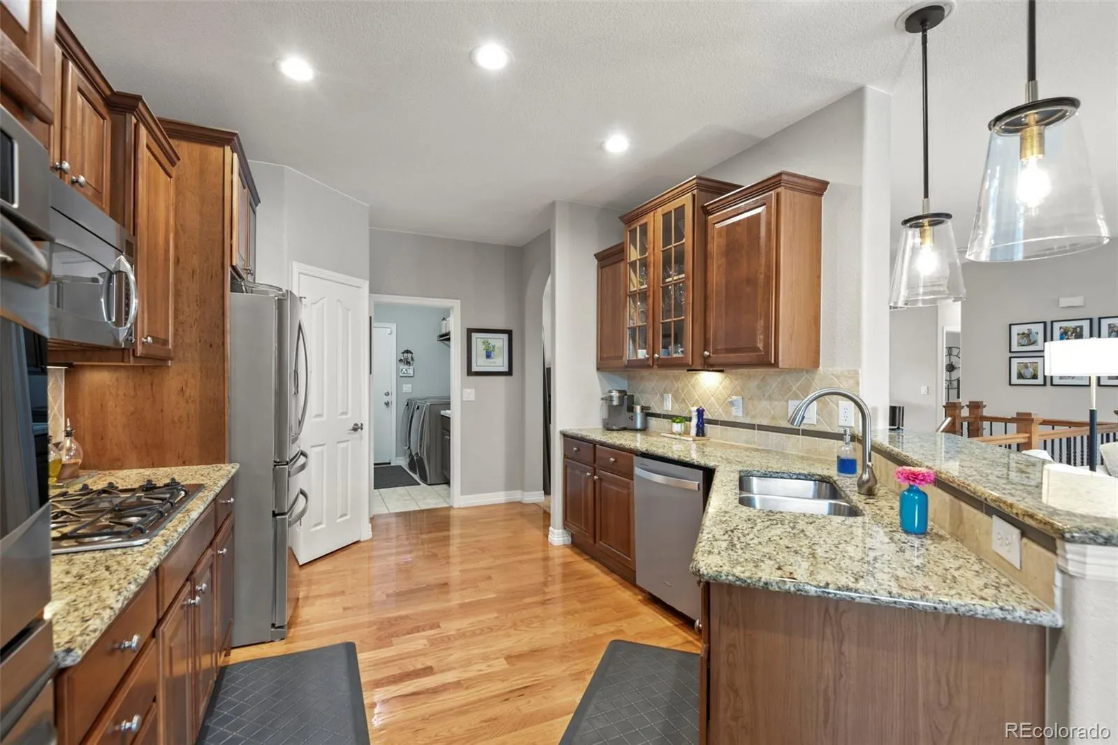 Gorgeous Ranch on a Corner Lot in desirable Heritage Todd Creek! 3 Bed, 3 Bath, 2.5 Car Garage-Golf Cart Parking w/ a finished basement! Todd Creek Golf Club is a gated community, vibrant and resort-style community! Large covered west facing front porch! Tons of Natural light as you enter the foyer! Great Kitchen w/ breakfast bar-Gleaming Hardwood floors-Granite Counters-Stainless Appliances-Pantry-Double Oven! Also has Eat in Kitchen w/ slider to this New Custom Trex Deck w/ Cable railing-NEW Privacy Shade installed! Huge Formal Dining Room or use for Piano/Reading Room! Family room has tons of windows/natural light-Gas Fireplace-Custom Mantle! Primary Suite has an 5 Pc bath w/ Oval soaking Tub-Shower & walk in closet! 2nd Bedroom currently an office-Light & Bright w/ a Full bathroom for guests! Professionally Finished Walkout Basement is perfect for entertaining! Custom Bar w/Leather Granite Counter-HEATED Tile floor-Darts/Poker Area w/ sliding door to a 2nd covered patio! 3rd Bdrm & a large 3/4 Bath-Huge Custom Shower – Storage! Mature Landscaping & trees offer privacy and lots of room between neighbors! Fully Finished 2.5 Car garage has epoxy floor-Golf Cart parking-50 Amp Service for RV-Shelves-Workbench with entry into the Mud room-Large Laundry Room! New Furnace 2023 – New H2O 2021 ! Luxury living with tons of activities to be a part of, including Concerts-Shows-Parades! Heritage Todd Creek amenities Include the Public Golf Course, Clubhouse, Fitness Center/Classes, Pool & Spa, Library, Tennis Courts & Delightful Restaurant/Bar to Enjoy!! Don’t miss this opportunity!!