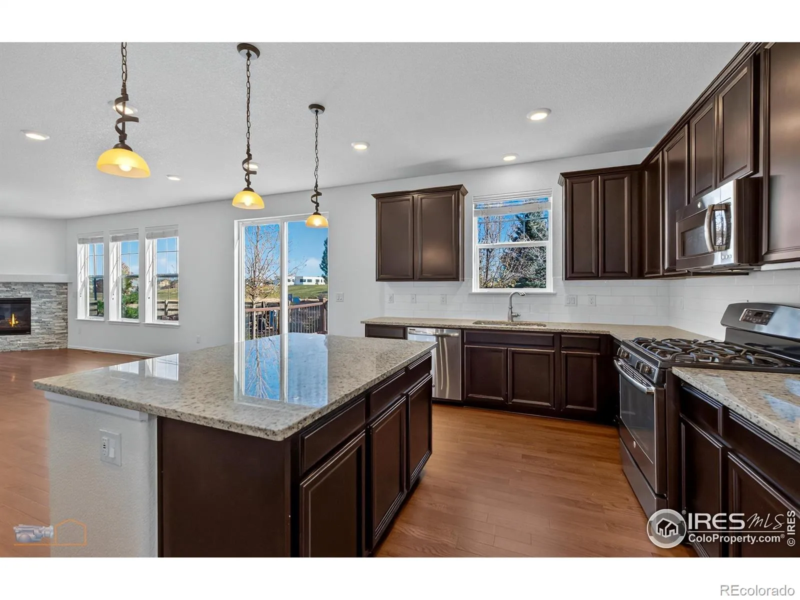 FABULOUS HOME IN FLATIRON MEADOWS WITH MOUNTAIN VIEWS AND CORNER LOT! Welcome to this stunning 5-bedroom, 4-bath home located in the highly sought-after Flatirons Meadows subdivision of Erie, Colorado. This beautifully updated residence offers an inviting open-concept layout, featuring a spacious kitchen that flows seamlessly into the large living room, complete with a fireplace perfect for cozy Colorado evenings. The kitchen shines with stainless steel appliances, granite countertops, and fresh interior paint throughout the home. A dedicated main-level office provides the ideal space for remote work or study. Enjoy peace of mind with major upgrades including a new roof (2023), a whole-house water purification system, and a newer HVAC system. The expansive unfinished basement offers endless potential for customization. The backyard is private with no neighbor and mature trees. Additional highlights include a two-car attached garage and an easy walk to Meadowlark K-8 School. This exceptional home blends comfort, style, and convenience-don’t miss your opportunity to make it yours!