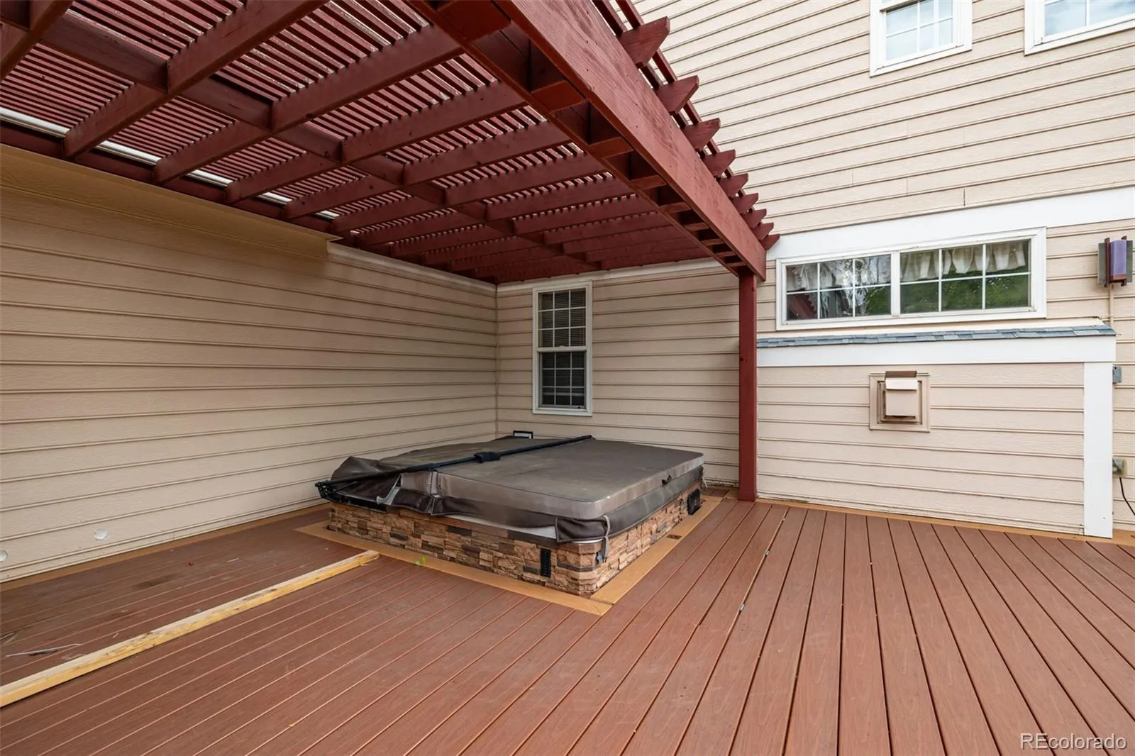 Additional features to this home include a serene backyard with a covered wooden balcony. Complete with a garden hot tub and a soothing water fountain, creating a peaceful ambiance for any occasion.