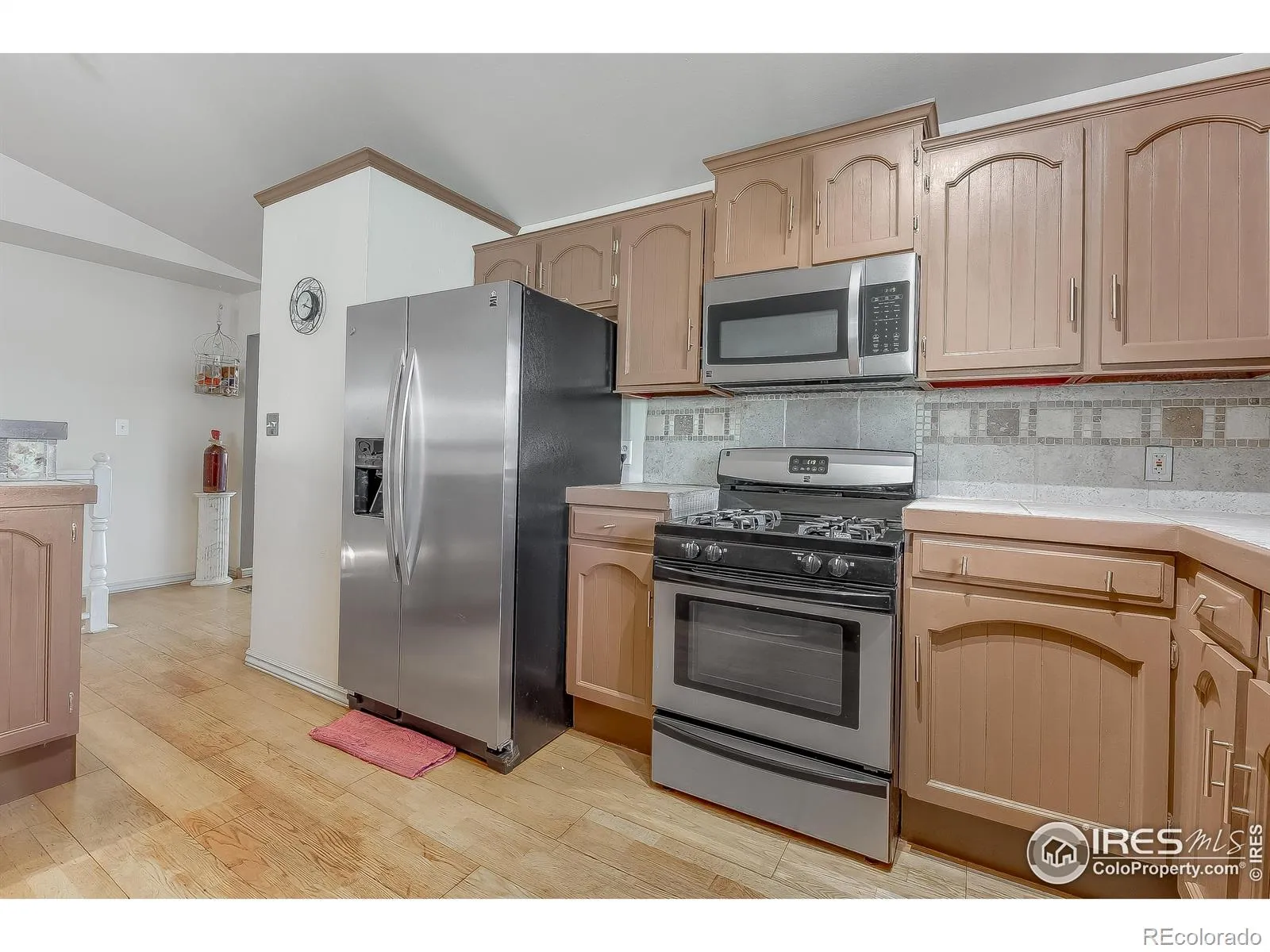Looking for a home that blends comfort, function, and Colorado lifestyle? This beautifully maintained ranch in East Greeley offers 5 bedrooms, 3 bathrooms, and flexible living across two finished levels. Located on a quiet cul-de-sac in the peaceful Lindale Subdivision, it features timeless design, thoughtful updates, and room for work, play, or multi-generational living.Inside, the open-concept main floor includes vaulted ceilings, oak hardwood floors, and abundant natural light from a large bay window. The living area flows into the kitchen and dining space, complete with painted cabinets, updated hardware, tile counters, a breakfast bar, and pantry. The dining area provides access to the oversized two-car garage and a sliding door to the backyard patio-ideal for easy indoor-outdoor living.The primary suite offers hardwood floors, a ceiling fan, and a private 3/4 bath with updated vanity and shower. Two additional bedrooms share a refreshed full bath.Downstairs, the finished basement adds even more versatility with a large family/flex area, a dedicated office with built-ins, two additional bedrooms with egress windows, and a 3/4 bathroom. The laundry/mechanical room includes vinyl flooring, a folding counter, storage, and comes with a Roper washer and GE dryer.Outside, enjoy a fully fenced backyard with a concrete patio and plenty of room for pets, play, or landscaping projects. The xeriscaped front yard provides low-maintenance appeal, and alley access and or large front metal swing gate leads to dedicated RV/boat parking, perfect for Colorado recreation.Recent updates include a new roof (2024). Additional features include a furnace with humidifier, central A/C, 40-gallon water heater, and leased solar panels for added efficiency. A 1-year First American home warranty is included for peace of mind.Conveniently located near Downtown Greeley, UNC, and highways 34 & 85, this home offers the perfect balance of peaceful living and modern convenience.