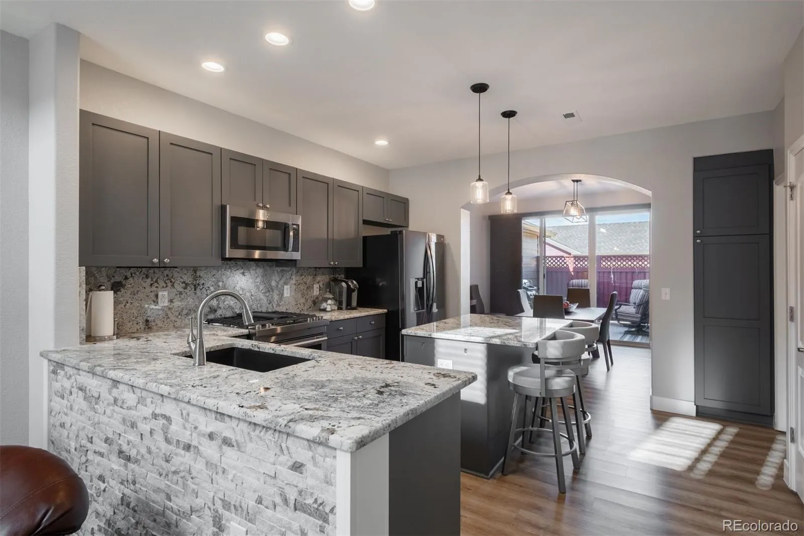 Discover effortless, turn-key living in Palomino Park. 3 bedroom, 3 bathroom and a rare opportunity to have 3 car garage (2 attached +1 detached). This beautifully updated home features a highly sought after main-floor primary suite that offers convenience & comfort with an ensuite bath. You’ll love the stylish finishes, walk-in shower, and the generous customized walk-in closet. The beautifully updated kitchen is the heart of the home, featuring quartz countertops, a gas range, and sleek stainless-steel appliances. Seating for two at the island makes it a perfect spot for casual meals or conversation while cooking. Designed with an open-concept flow, the kitchen connects effortlessly to the living area and transitions seamlessly into the dining space, which leads directly to a private patio—ideal for grilling & entertaining. Upstairs, you’ll find an airy loft ideal for a cozy media space, two additional bedrooms, an updated full bath, plus a bonus room ideal to use as a dedicated office, a hobby or exercise room. This turnkey home with all major systems replaced including a newer AC unit, furnace, water heater. Palomino Park offers resort-style amenities including a full fitness center, pool, basketball and pickleball courts and a sprawling park. With unbeatable access to C-470, I-25, and the best of Park Meadows shopping and dining, this location checks every box. *This home can be sold furnished —lets discuss the details*