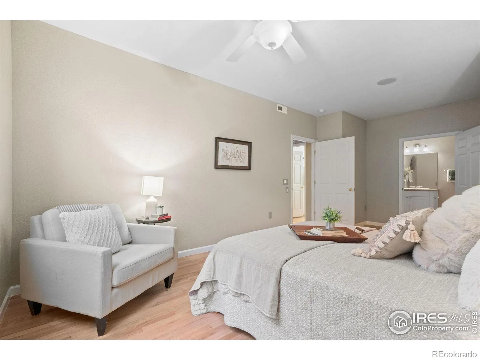 LOCATED IN SOUTHWEST LONGMONT, EASY ACCESS TO BOULDER. Sunny ground-floor corner unit with excellent natural light from 3 of the four walls. Not a stair or a step in this freshly updated 3-bedroom and 2-bath condo. The updates include modern white kitchen cabinets and newly refinished hardwood floors throughout; no “lived-in” carpeting to deal with. Open and easy to entertain between the kitchen, dining, and living areas. The master bedroom is spacious, with ample closet space, and is light and bright with a crawl space in the closet. The master bath features a tub/shower surround and a large vanity with ample storage space. The second bedroom has a large walk-in closet, and with lots of natural light, the third bedroom can also be used as a home office for the work-from-home professional. The main bath also features a tub/shower surround and a spacious vanity. The detached single-car garage is just steps away from the unit and includes shelving for additional storage-located in the highly desired St. Vrain Valley School District. The unit also includes an ample, fenced outdoor space, landscaped with low maintenance in mind, that provides a nice, private place to entertain in warmer months. Close to shopping at Village of the Peaks, Whole Foods Market, and Target. This lovely home is ready to move in and enjoy!