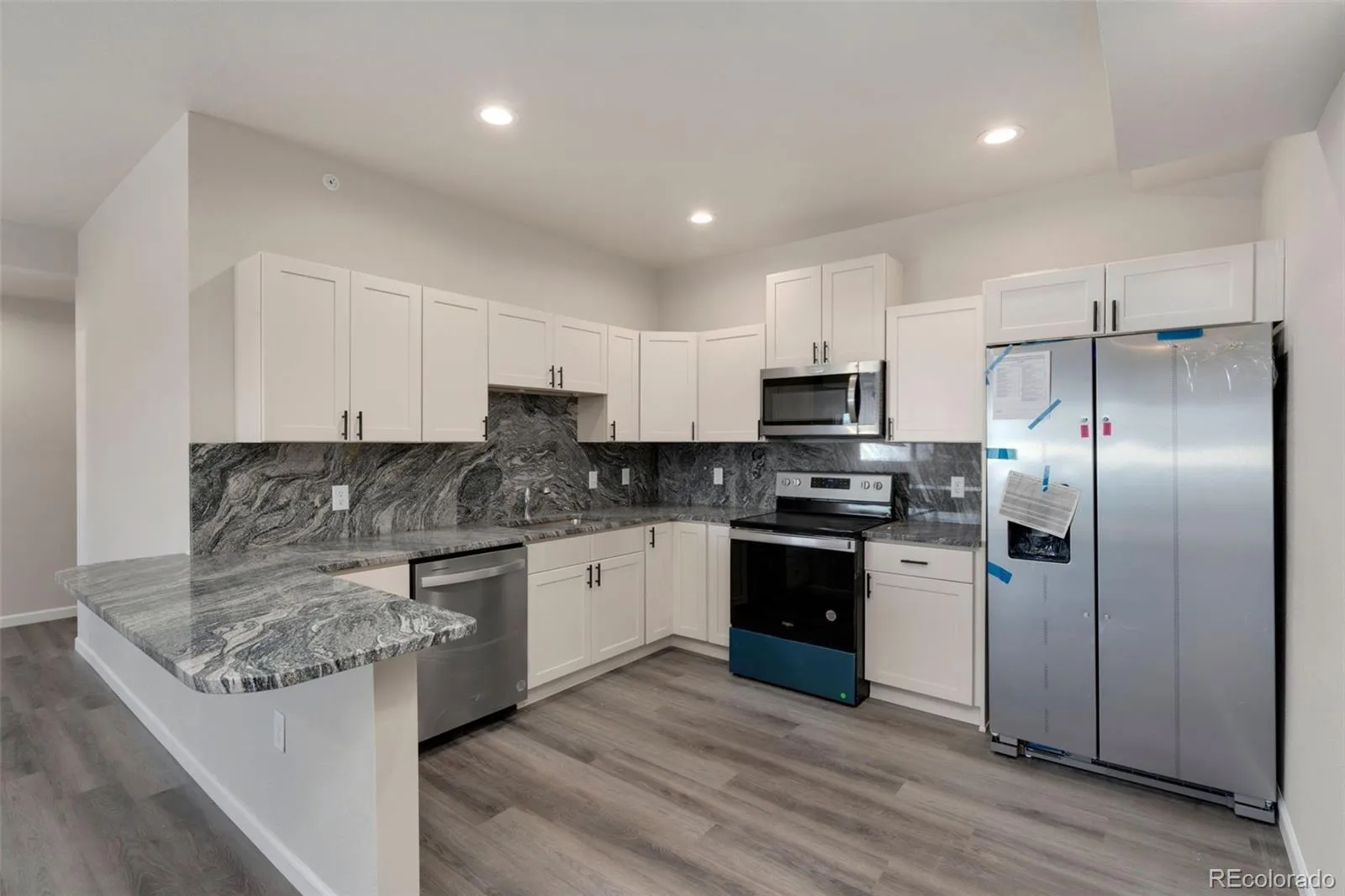 Seller is offering a $12,000 CONCESSION that the Buyer can use towards CLOSING COSTS or a RATE BUYDOWN. Be the first to enjoy this BRAND-NEW condo, the LAST main-floor unit available in this building! Experience effortless living in a prime Denver location with modern finishes and easy accessibility. Designed to accommodate a lock-and-leave lifestyle, this residence allows you to enjoy both peace of mind and the freedom to explore everything the city has to offer. As you step inside, the open-concept layout greets you with a welcoming sense of space, highlighted by low-maintenance wood laminate flooring that eases daily upkeep. A stylish gas fireplace serves as the focal point in the living room, providing a cozy setting for relaxation or entertaining. Get creative in the spacious kitchen, where elegant marble countertops complement the stainless steel appliances, all included to ensure a seamless move-in experience. Serenity extends to all three bedrooms, each carpeted for comfort and warmth, with the primary suite expanding into a larger space that includes an ensuite bathroom and a walk-in closet. The covered patio offers a perfect spot for sipping your morning coffee or relaxing in the fresh air, complete with a convenient storage closet for your extra belongings. Ample parking ensures easy access for both you and your guests. Positioned near Denver, DIA, and the Metro area, this condo places you at the heart of Colorado’s best, with close proximity to city amenities, transport links, and a spectrum of cultural and recreational activities. Discover your new lifestyle in this vibrant setting, where comfort meets convenience. Rentals with a minimum duration of 30 days are permitted. There are multiple new units available in the building. See MLS #5842292 for a top floor model. For all scheduled open houses, please visit the model unit #71.