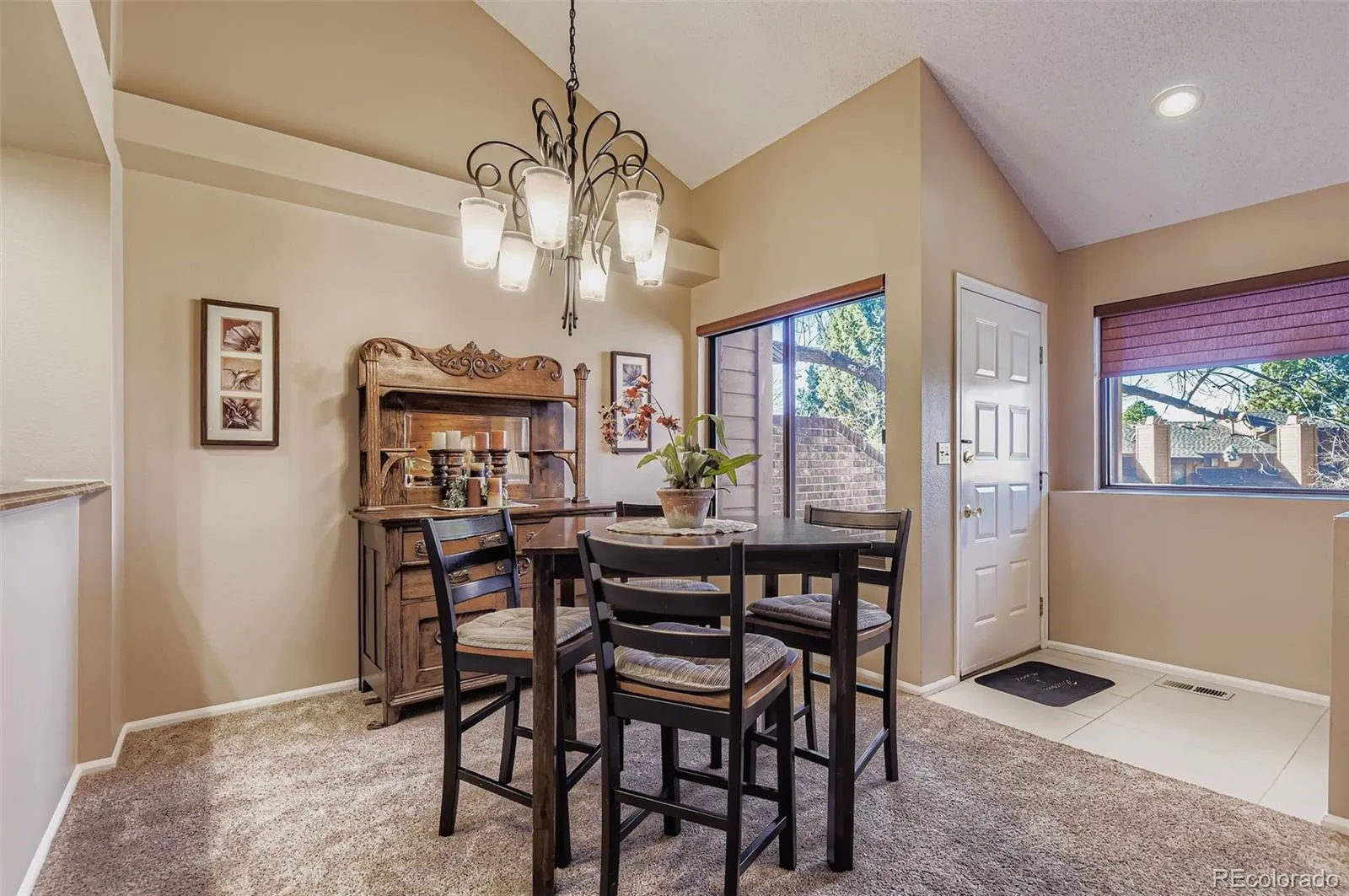 Save this one for last! It’s the nicest one you’ll show. Don’t be frightened by HOA fees. The Association policy covers structure, grounds and common area – you only need a policy for “walls in”. That’s less than 1/10th the cost of a single family home. Contemporary 2-bedroom townhome with soaring ceilings, gorgeous slab granite, fluffy almost new carpet you can sink your toes into, and a view of sunsets from the front porch as you overlook the resort-like pool and spa area. You’ll feel like you’re at a Marriot hotel! Lush greenbelt surrounds. Owner shared no expense when he upgraded this home. There are gleaming cherry soft-close cabinets throughout, stainless Samsung and Frigidaire appliances in the kitchen, including a 5-burner gas range with self cleaning oven, side-by-side giant refrigerator with storage drawer and lower drawer freezer, under counter lighting and a pass through to the dining room. There’s room for a kitchen table or add a display cabinet if you have lots of treasures. There’s a handy powder room for guests. As you walk upstairs, you’ll notice the unique angles and skylights and a long hall and wall which is a great place to display art or special photos. There are two spacious bedrooms and the primary bedroom is massive! Plenty of space for a king size bed, sitting area and all the accessories. The elegant primary full bath area offers yards of granite counters, double sinks, sky lights, soaking tub and a giant walk-in closet. The 2nd bedroom also has room for a king size bed. The full size bath offers more granite and upgraded fixtures. Moving to the finished basement, you’ll enjoy the cozy rec room with an alcove that would be perfect for a bar or home office. There are two storage areas and plenty of room near the laundry area to hang clothes and even a working toilet! Furnace and water heater were replaced recently. This home is ready to welcome its new owners with an ambience seldom seen.