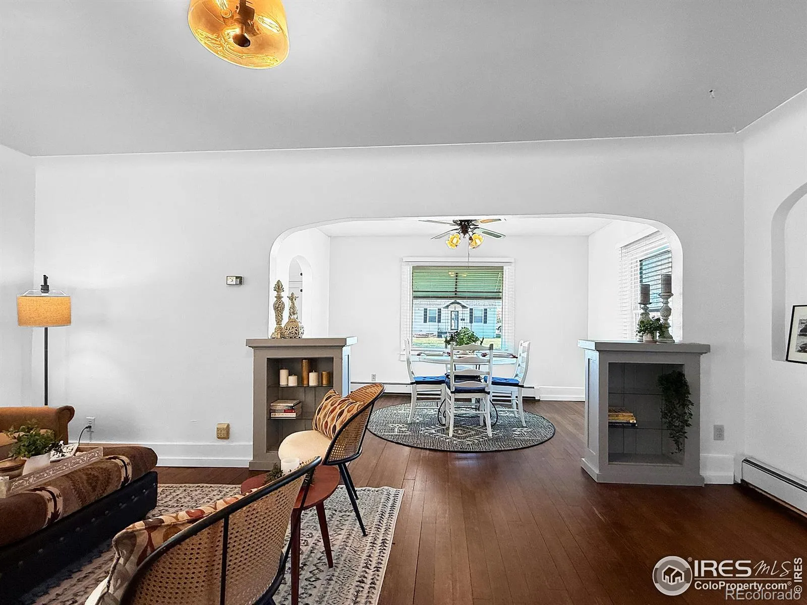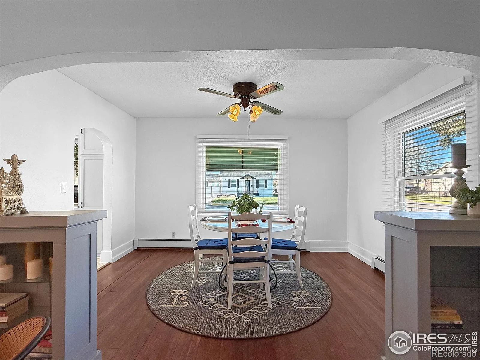 Charming 2-bedroom home on a spacious corner lot on Sterling’s south side! This inviting property features newly refinished hardwood floors, fresh interior paint, and beautiful wood flooring throughout the main living areas. The updated bathroom offers modern comfort, while the vintage kitchen provides wonderful storage and timeless character. Built-in bookshelves and unique glass-block windows add warmth and style to the home. Outside, you’ll appreciate the detached garage with an electric door opener and the expansive corner lot equipped with an automatic sprinkler system. New class 4 shingles just installed! An affordable and well-maintained property, ready for its next owner! Schedule your showing today.