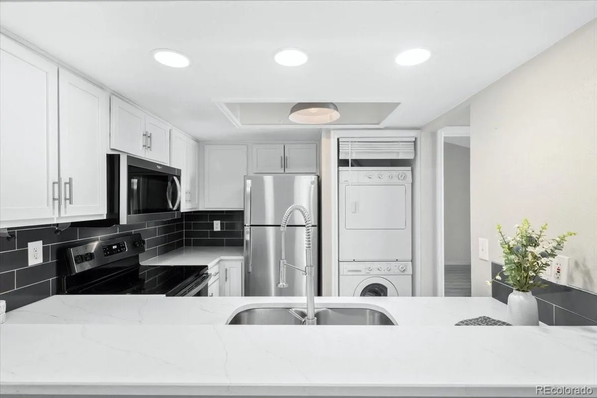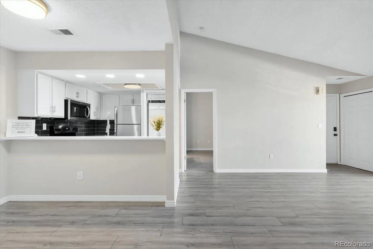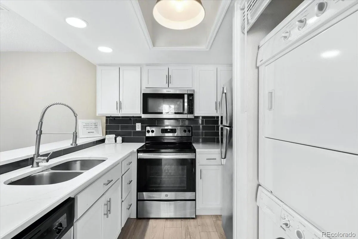 Discover this beautifully updated **top-floor condo** offering **mountain views** and modern, contemporary finishes throughout. The spacious living room welcomes you with **vaulted ceilings** and a cozy **wood-burning fireplace**, creating the perfect place to relax. The dining area sits just off the kitchen, ideal for everyday meals or entertaining. Enjoy cooking in the **updated kitchen**, complete with **quartz countertops**, **stainless steel appliances**, and **white soft-close cabinets**. Convenience abounds with **in-unit laundry**, **low-maintenance flooring**, and abundant natural light from the **west-facing balcony**. This home features **two bedrooms and two full bathrooms**, both tastefully updated with quartz counters. Additional highlights include plenty of available parking, plus a **new furnace and water heater installed in 2020**. Residents can take advantage of wonderful community amenities including a **pool, tennis courts, and clubhouse**. A perfect blend of comfort, style, and low-maintenance living—welcome home!