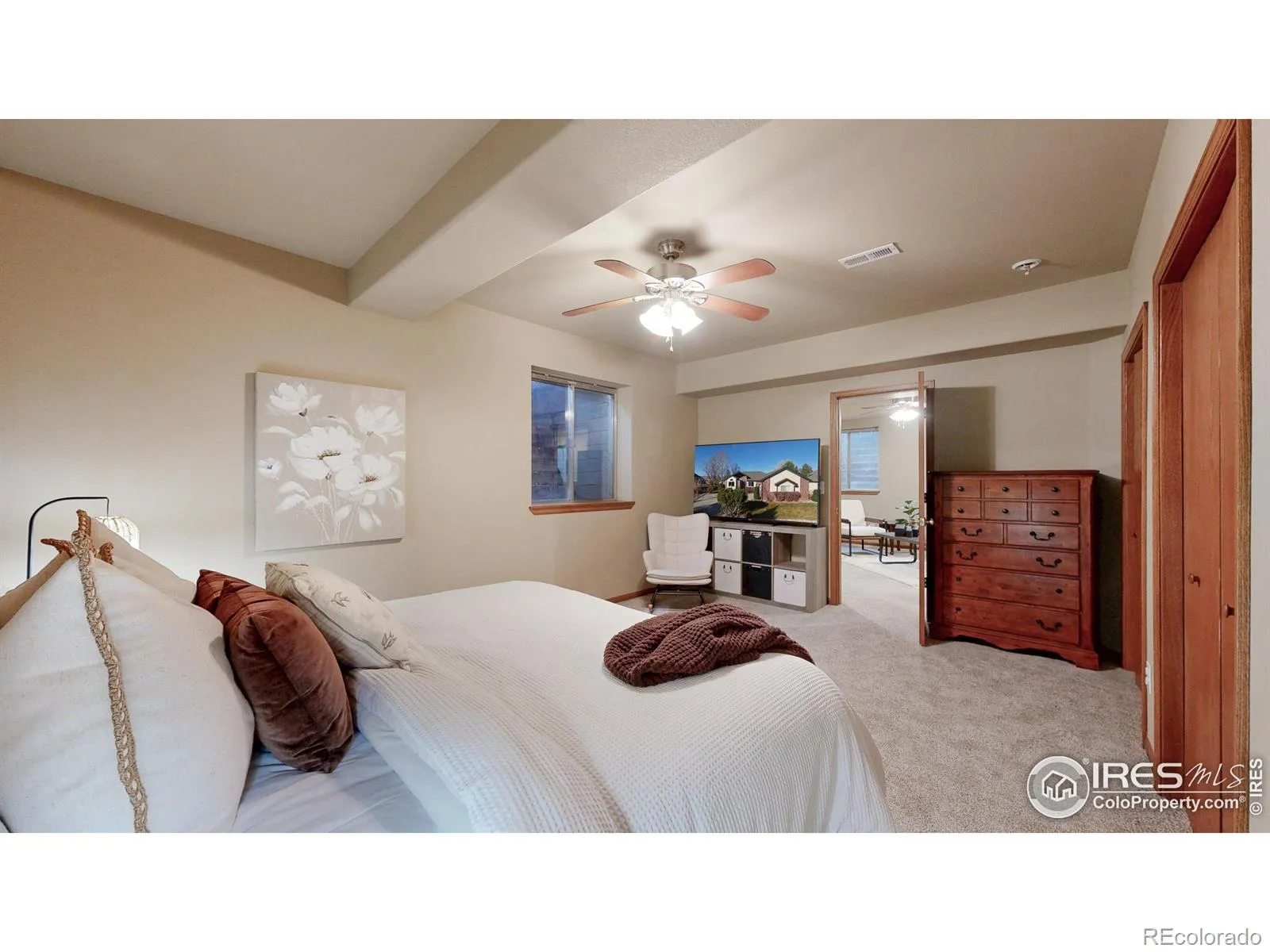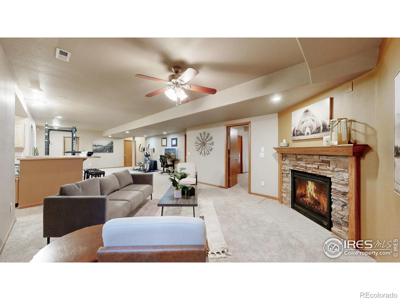 Welcome to this beautifully maintained home offering a warm, comfortable atmosphere inside and out. Featuring 4 bedrooms, 3 bathrooms, and an office, this home is thoughtfully designed to provide both functionality and charm. Outstanding mountain views backing up to extensive hiking/biking trails, Big Thompson River as well as numerous ponds and Lakes. The interior welcomes you with a bright, open main living space that includes a comfortably sized living room with large windows that fill the home with natural light. The adjoining kitchen provides good counter workspace, traditional cabinetry, new updated appliances, and a dining area large enough for family meals or casual gatherings. The primary suite includes ample space, new LVP flooring, lots of natural light, and good sized attached 5-piece bathroom and walk in closet. Downstairs, you will find 2 additional bedrooms, full bathroom, a large rec room, cozy fireplace, and full wet bar with appliances that could easily be used for Mother in Law Suite. Outside, the property’s lot offers room to garden, relax, or create your ideal outdoor entertaining space. The quiet cul-de-sac setting adds privacy and reduces drive-through traffic. The location brings added value near dining, shopping, and entertainment. With easy access to major commuter routes, parks, schools, and local amenities, this property offers a balanced lifestyle that combines approachable living, affordability, and the convenience of being close to what makes Loveland such a desirable community, all in one well-cared-for home ready to welcome its next owner.