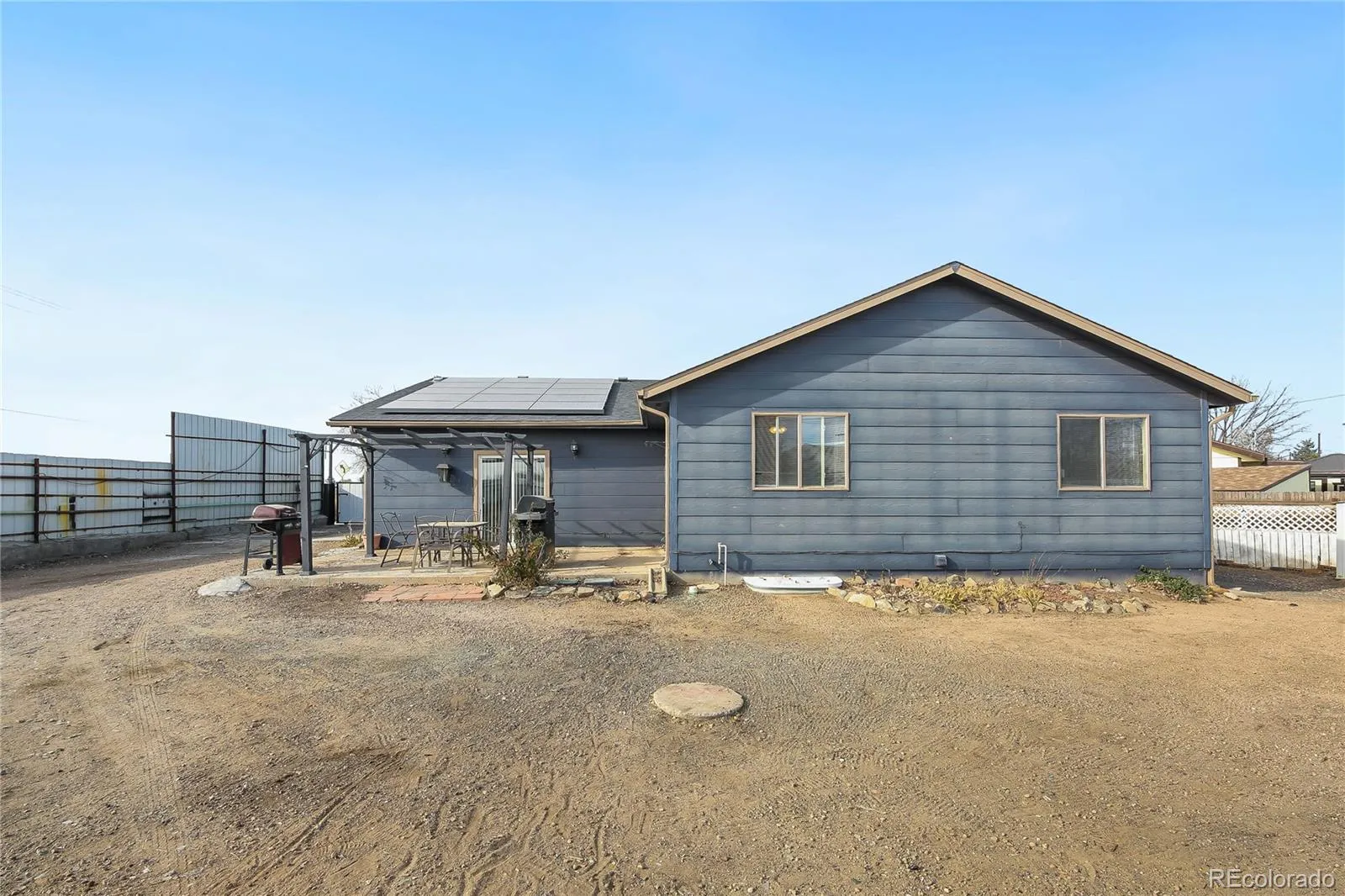 Looking for a home that blends comfort, function, and Colorado lifestyle? This beautifully maintained ranch in East Greeley offers 5 bedrooms, 3 bathrooms, and flexible living across two finished levels. Located on a quiet cul-de-sac in the peaceful Lindale Subdivision, it features timeless design, thoughtful updates, and room for work, play, or multi-generational living.Inside, the open-concept main floor includes vaulted ceilings, oak hardwood floors, and abundant natural light from a large bay window. The living area flows into the kitchen and dining space, complete with painted cabinets, updated hardware, tile counters, a breakfast bar, and pantry. The dining area provides access to the oversized two-car garage and a sliding door to the backyard patio-ideal for easy indoor-outdoor living.The primary suite offers hardwood floors, a ceiling fan, and a private 3/4 bath with updated vanity and shower. Two additional bedrooms share a refreshed full bath.Downstairs, the finished basement adds even more versatility with a large family/flex area, a dedicated office with built-ins, two additional bedrooms with egress windows, and a 3/4 bathroom. The laundry/mechanical room includes vinyl flooring, a folding counter, storage, and comes with a Roper washer and GE dryer.Outside, enjoy a fully fenced backyard with a concrete patio and plenty of room for pets, play, or landscaping projects. The xeriscaped front yard provides low-maintenance appeal, and alley access and or large front metal swing gate leads to dedicated RV/boat parking, perfect for Colorado recreation.Recent updates include a new roof (2024). Additional features include a furnace with humidifier, central A/C, 40-gallon water heater, and leased solar panels for added efficiency. A 1-year First American home warranty is included for peace of mind.Conveniently located near Downtown Greeley, UNC, and highways 34 & 85, this home offers the perfect balance of peaceful living and modern convenience.
