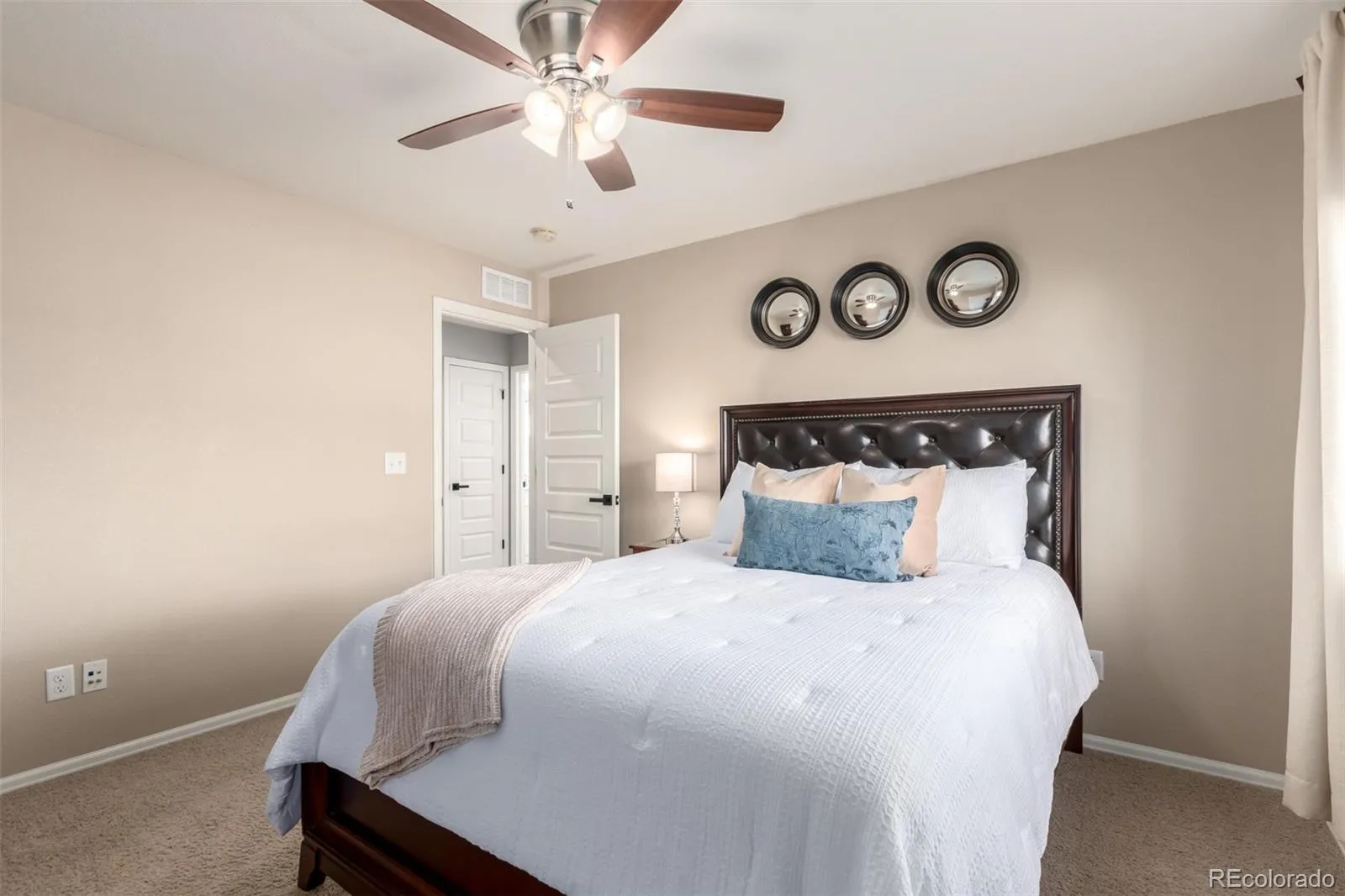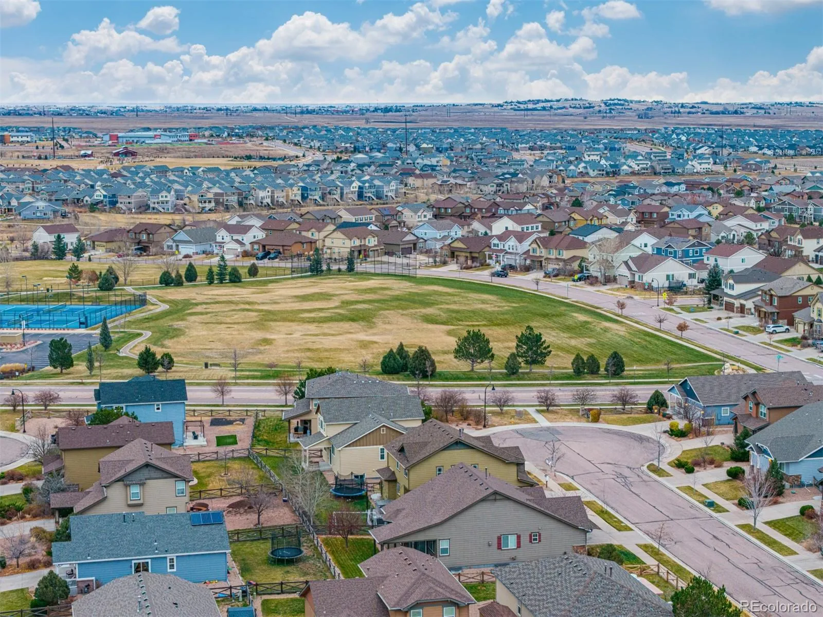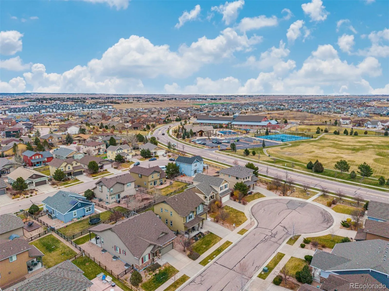 Upstairs, an open landing connects the primary suite, three bedrooms, and a full bathroom. Step through French doors into the private retreat. The ensuite includes updated sintered countertops, new lighting, a dual vanity with real wood cabinetry, a walk-in closet, plus a soaking tub and separate shower. The finished basement adds versatility with a family room wired for sound, a bedroom, 3/4 bath, storage, and a flexible nook ideal for a gym or hobby space. A standout feature is the finished and insulated 3-car tandem garage with a heavy-duty insulated door, workbench, overhead storage, and direct backyard access—perfect for Colorado gear and tools. Additional highlights include new LED ceiling lights, a whole-house humidifier, manifold plumbing, under-stair storage, and front and back sprinklers. Located on a quiet cul-de-sac, you’re within walking distance of the community recreation center and Banning Lewis Ranch Academy, with convenient access to Vista Water Park, Climber’s Park, and seasonal concerts, events, and the farmers market—offering a lifestyle that’s active and connected. Move-in ready and thoughtfully upgraded—this home is one you won’t want to miss.
