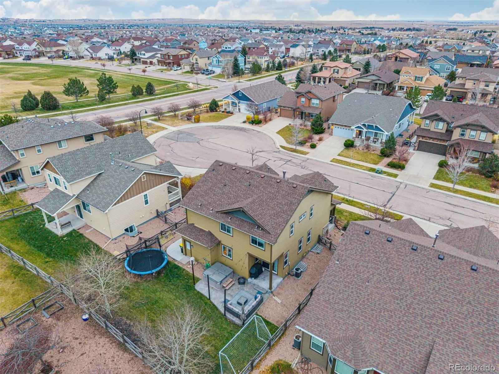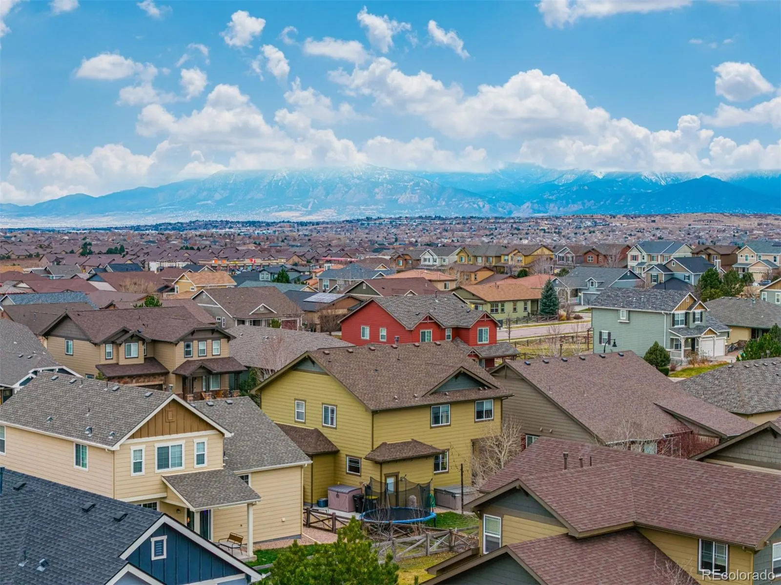 Step into a Banning Lewis Ranch home that’s ready to enjoy from day one! This beautifully maintained 5-bedroom, 3.5-bath residence blends modern upgrades, flexible living spaces, and a true community lifestyle—ideal for buyers seeking comfort, convenience, and room to grow. Rich hardwood floors, 9 ft ceilings, and fresh neutral paint set an inviting tone. A corner gas fireplace connects the living and dining rooms, creating a cozy Colorado backdrop. The gourmet kitchen features granite counters, a center island, double oven, gas range, pantry, and new gold hardware. The dining area opens to a stamped concrete patio with a hot tub that stays, offering easy indoor–outdoor flow. A large front porch with Pikes Peak views provides a relaxing spot to enjoy Colorado sunsets.