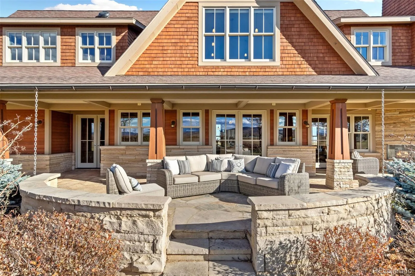 Welcome to 14754 Creekside Lane, a stunning one-of-a-kind Colorado sanctuary in Boulder County. Set on more than 4 acres at the end of a private lane and surrounded by permanent conservation easements, this custom-built home offers uninterrupted views of the plains and front range, including iconic Longs Peak and Mt. Meeker. Arcadea Architect designed, this home showcases exceptional quality, materials and detail such as locally quarried Colorado Buff sandstone, cedar siding and shingles, Douglas Fir timber beams and copper accents. An acre of fully irrigated, mature landscaping surrounds the home with over 200 shrubs and established trees, creating a lush, private setting. Flanked with 1600 square feet of flagstone patios and an outdoor fireplace, it’s the ideal place to relax, entertain, or watch the Oreo cows grazing in the adjacent field. Warm American cherry millwork, 9-foot ceilings, and full custom cabinetry add richness, warmth and character throughout the home. The main floor offers a functional layout, highlighted by a chef’s kitchen, home office, living room, and a fireplace. An expansive mudroom with built-in storage, conveniently located next to the laundry room and kitchen, streamlines everyday living. The upper level has cozy loft spaces, three bedrooms and a generous primary suite with a 5-piece luxury bath and walk-in closet. Comfort meets efficiency with in-floor radiant heat throughout both the house and the garage, high-quality Kolbe windows and doors designed to maximize energy performance and natural light. Outdoor living is exceptional with a garden area, and ample room for larger ambitions-whether planting a vineyard, establishing an orchard, or designing your own sanctuary. The carriage house offers a 4th bedroom, bath, and rec room, 2nd office, gym, or craft space. A rare blend of craftsmanship, privacy, modern comfort, and sweeping Colorado views, this property offers an extraordinary lifestyle in an unmatched setting. Love Where You Live