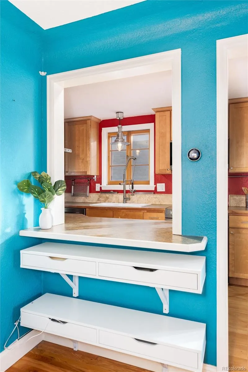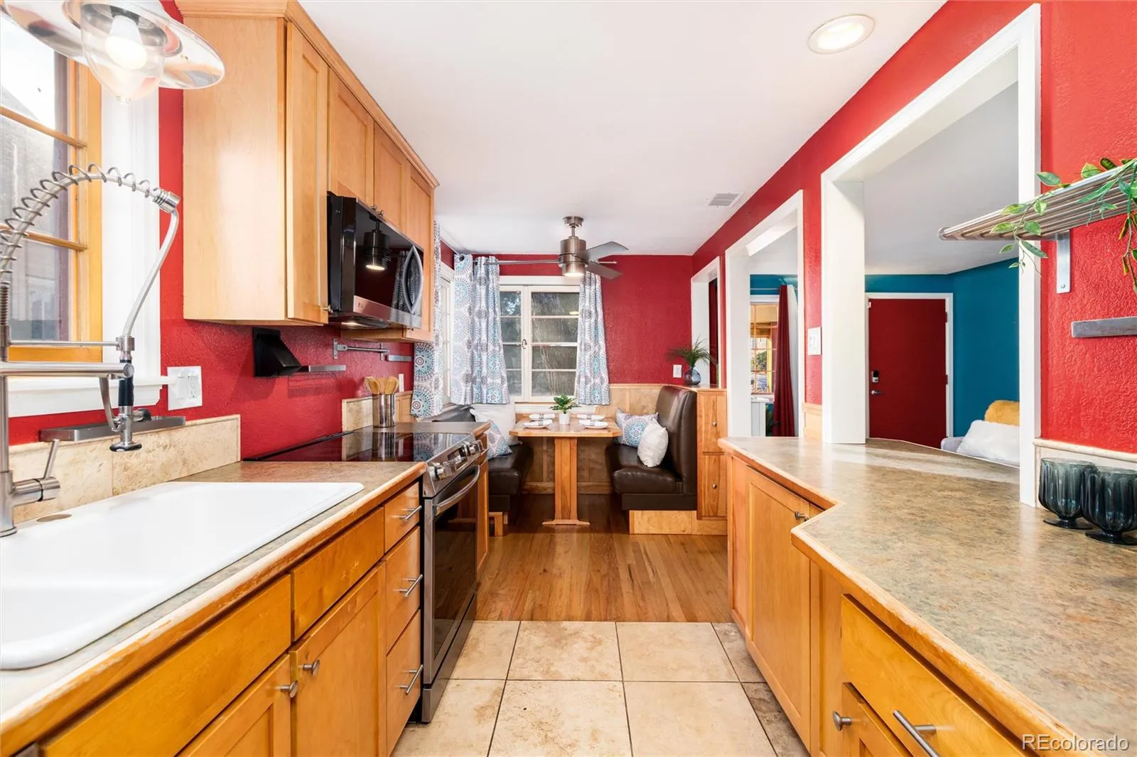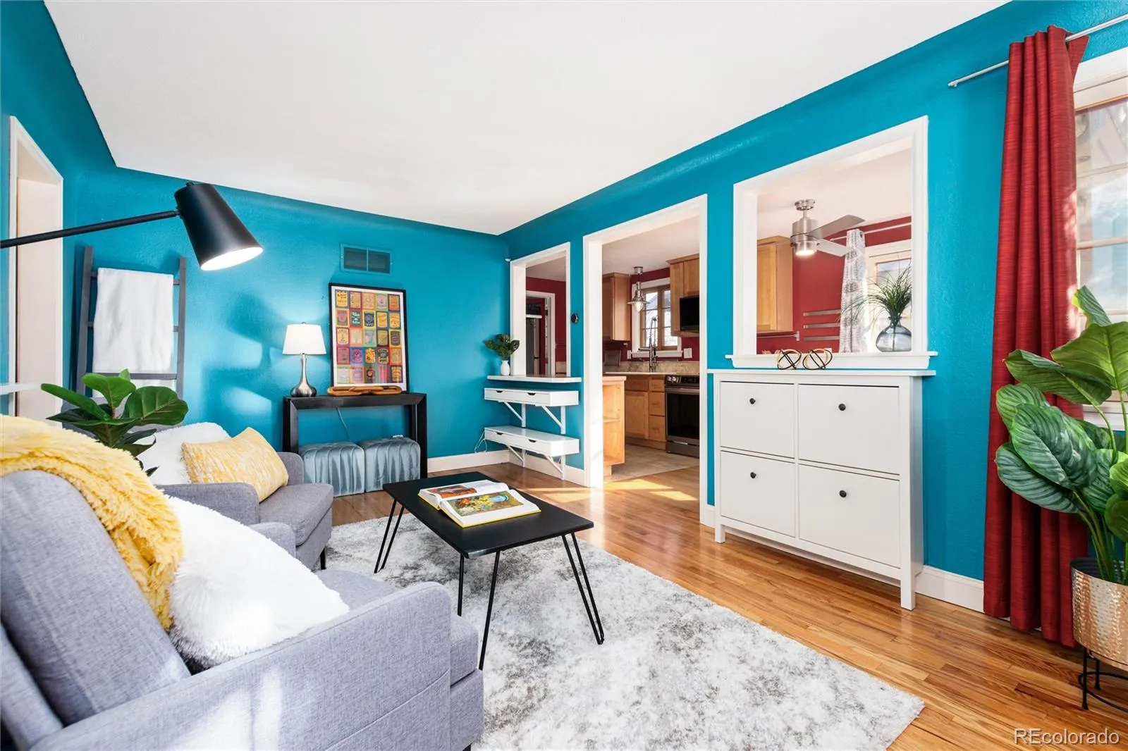 Discover this super-cute cottage in one of Denver’s most coveted pockets—Olinger Gardens is just blocks to the best of Highlands and Sloans Lake, and minutes to Tennyson Street and Crown Hill Park. Neighbors have popped the top to take advantage of views from one of the neighborhood high points! Warm, welcoming, and wonderfully efficient, this home blends classic character with smart updates throughout. Step into the sunny family room, where hardwood floors, playful colors, and a corner window deliver natural light all afternoon. The space flows seamlessly into the thoughtfully designed kitchen featuring a brand new convection oven, refrigerator and updated quiet Bosch dishwasher, plus cleverly planned cabinet storage, and a built-in banquette perfect for morning coffee or dinner with friends. A true bonus for cottage living—an actual mudroom with full-size washer and dryer, shelving, and room to drop your gear after wandering the neighborhood. Three bedrooms provide flexibility for how you live: a west-facing primary with great natural light and an organized closet; a cozy carpeted secondary bedroom with corner windows overlooking the backyard; and a charming third bedroom with hardwood floors—ideal as a nursery, guest room, or home office. The full bath offers clean white subway tile, neutral fixtures, and surprisingly great storage. Nest doorbell, camera, thermostat and smoke detector, plus Quantum Fiber installed (940GB). Large, private backyard includes a garden area, nice patio, storage shed and a useful detached garage with opener. Cute. Cozy. Perfectly placed. This cottage is move-in ready and close to everything you love about Northwest Denver and Wheat Ridge!