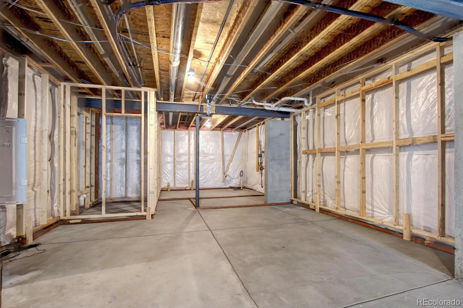 The basement is framed and ready for your personalized finish, designed for a large recreation area, two additional rooms, and a rough-in bath.