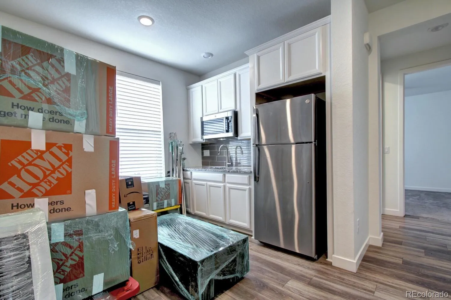 As you enter, you’re greeted by 8-foot doors, 10-foot ceilings, and an open, elegant floorplan. Custom engineered flooring flows throughout the main level, leading to an expansive great room and a stunning chef’s kitchen complete with a large island and pantry. A well-designed mud area with built-in lockers sits off the garage entry, along with an additional half bath.