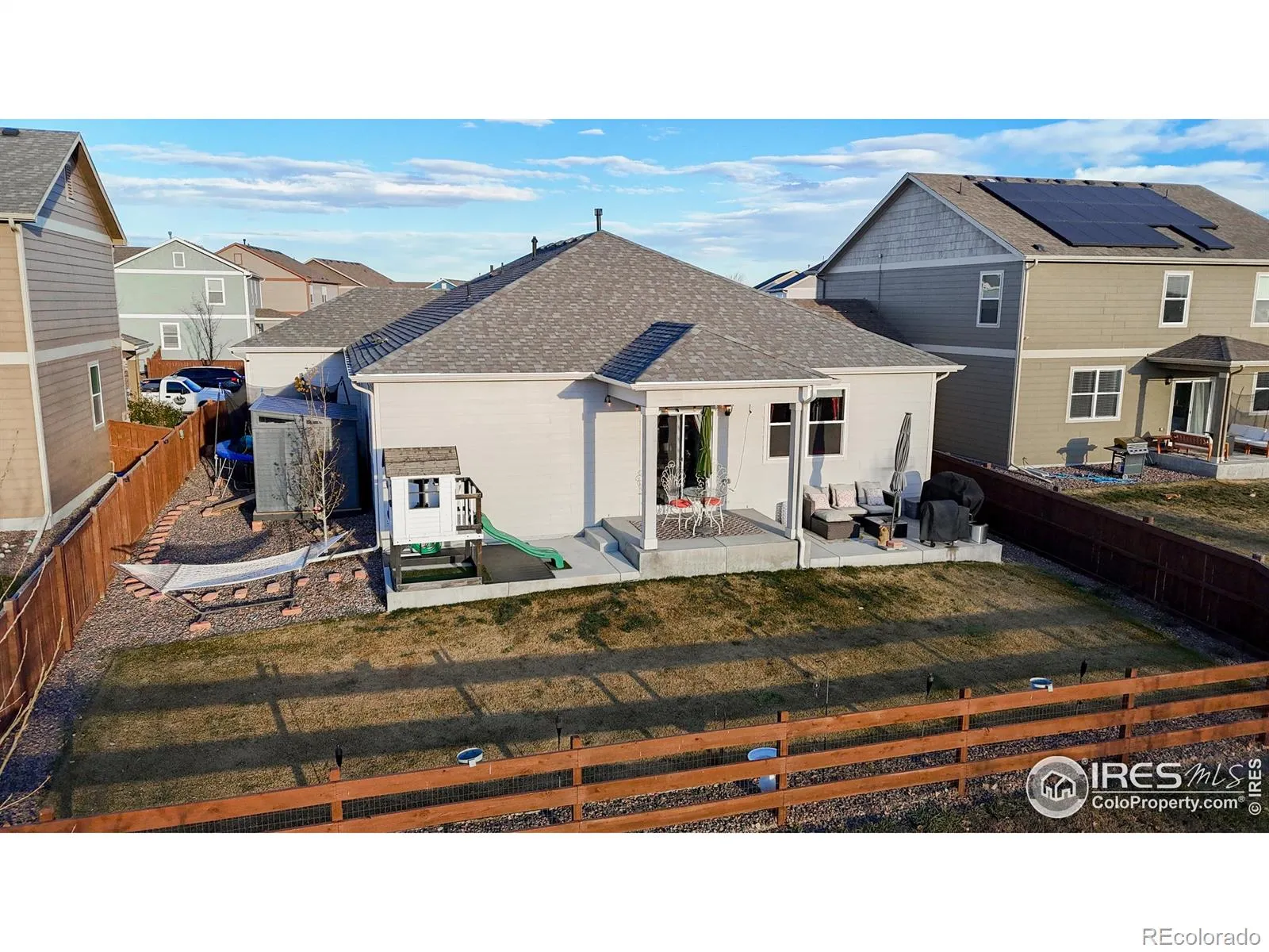 Seller is offering $5k to use your way! Tucked into the south end of Timnath Ranch, 6247 Oak Grove Street is a fantastic four-bed, two-bath ranch that blends easy single-level living with big Colorado mountain views. From the moment you pull up, the curb appeal is obvious-clean exterior, a three-car garage with room for all your gear, and a charming front porch that welcomes you inside. Step into the great room, where the kitchen, dining, and living spaces flow together in one bright, open layout. The large kitchen island makes everyday prep simple and doubles as the perfect spot to grab a quick bite or chat with friends. The living area is spacious and comfy-ideal for movie nights, game days, or just relaxing. The primary suite offers a quiet retreat with loads of closet space and a roomy ensuite bath. Three additional bedrooms give you flexibility for guests, hobbies, or a home office, all supported by a second full bathroom. Outside, the fully fenced backyard is a true highlight, featuring panoramic mountain views, a covered patio ready for summertime hangouts, and a handy storage shed. You’ll also love the neighborhood perks – the pool, clubhouse, fitness center, and parks. With nearby trails, open space, shopping, and dining just minutes away-but still maintaining a peaceful, suburban vibe-this home checks all the boxes. 6247 Oak Grove Street delivers incredible value, convenient living, stunning scenery, and a friendly community, capturing everything people love about life in Timnath! Home has been pre-inspected for Buyer peace-of-mind.
