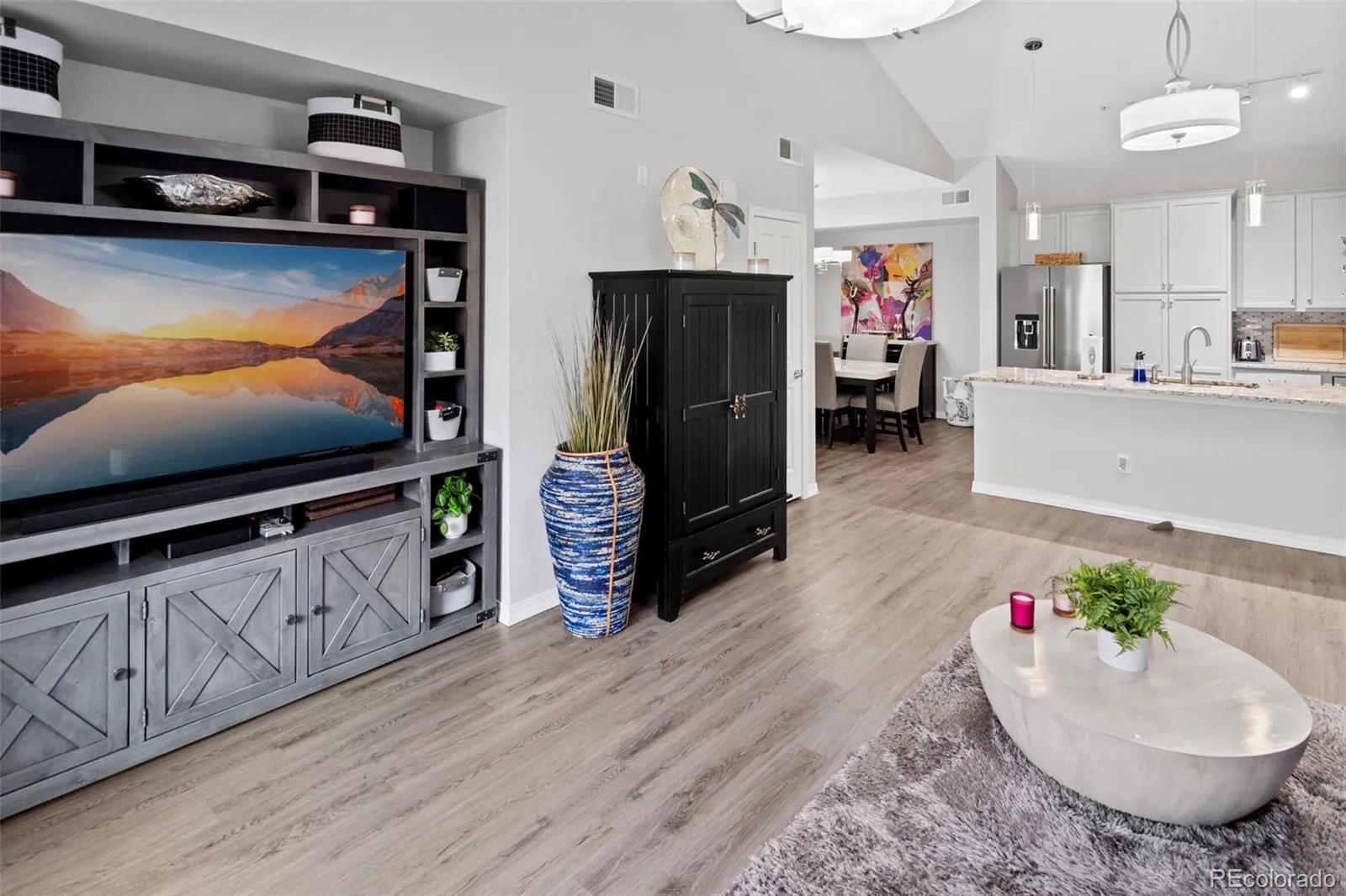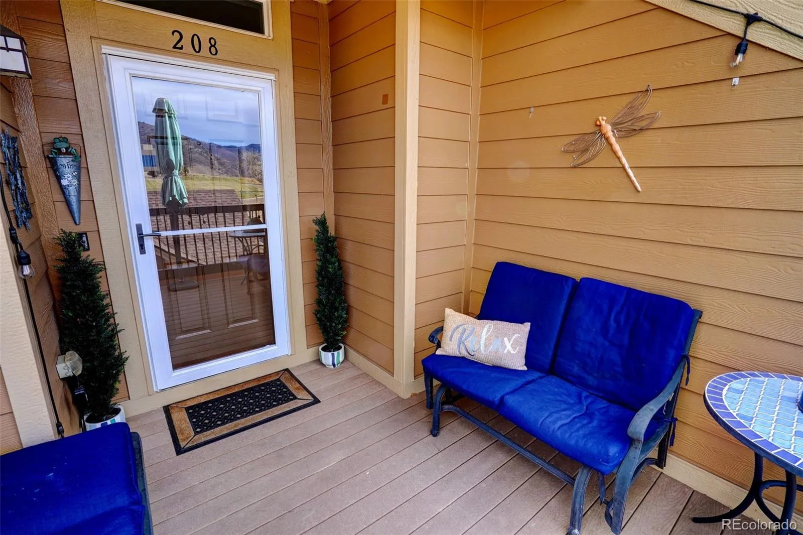 QUIET LOCATION WITHIN THE BLUFFS, MOUNTAIN VIEW FROM 11X9 PATIO LANAI, PRIVATE STAIRS TO FRONT DOOR, QUIET CORNER OF THE CITY, GREAT UPDATES AND UPGRADES. MOSTLY NEW APPLIANCES. VERY INVITING INTERIOR – COLORS – MATERIALS. LUXURY VINYL. SHIP LAP WALL. COMMUNITY IS A JUMPING OFF POINT TO BIKING, HIKING, CHATFIELD RESERVOIR, CHATFIELD BOTANICAL GARDENS, WALK TO GROCERY, COFFEE, AND RESTAURANTS. MURPHY BED INCLUDED. ENTERTAINMENT CENTER STAYS. CABINET IN LAUNDRY STAYS.