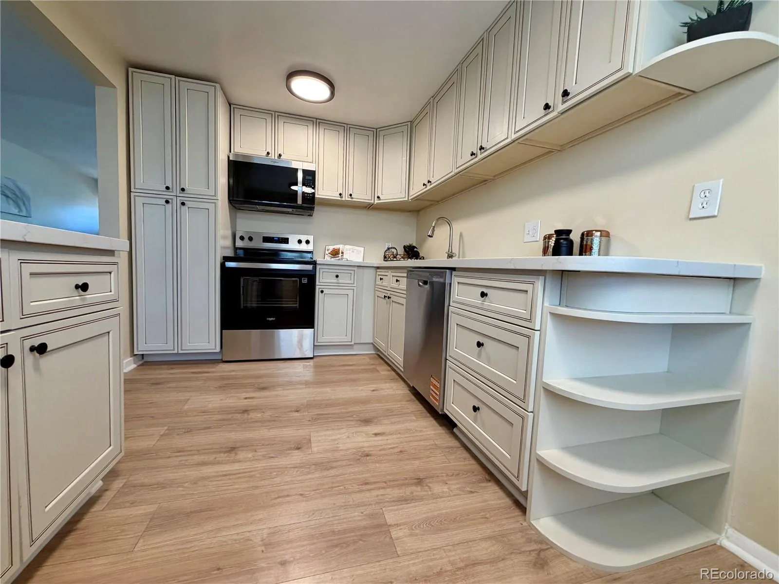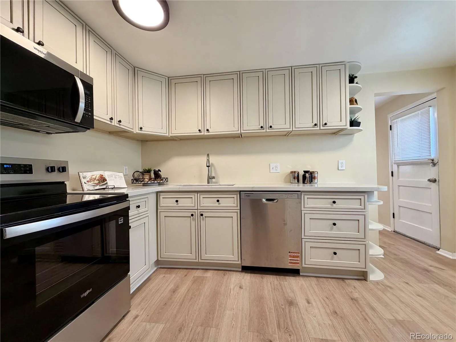 Beautifully updated kitchen with new cabinetry, countertops, and appliances