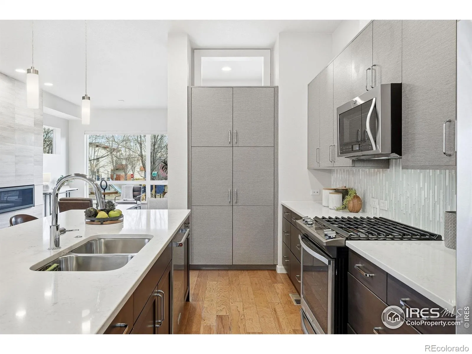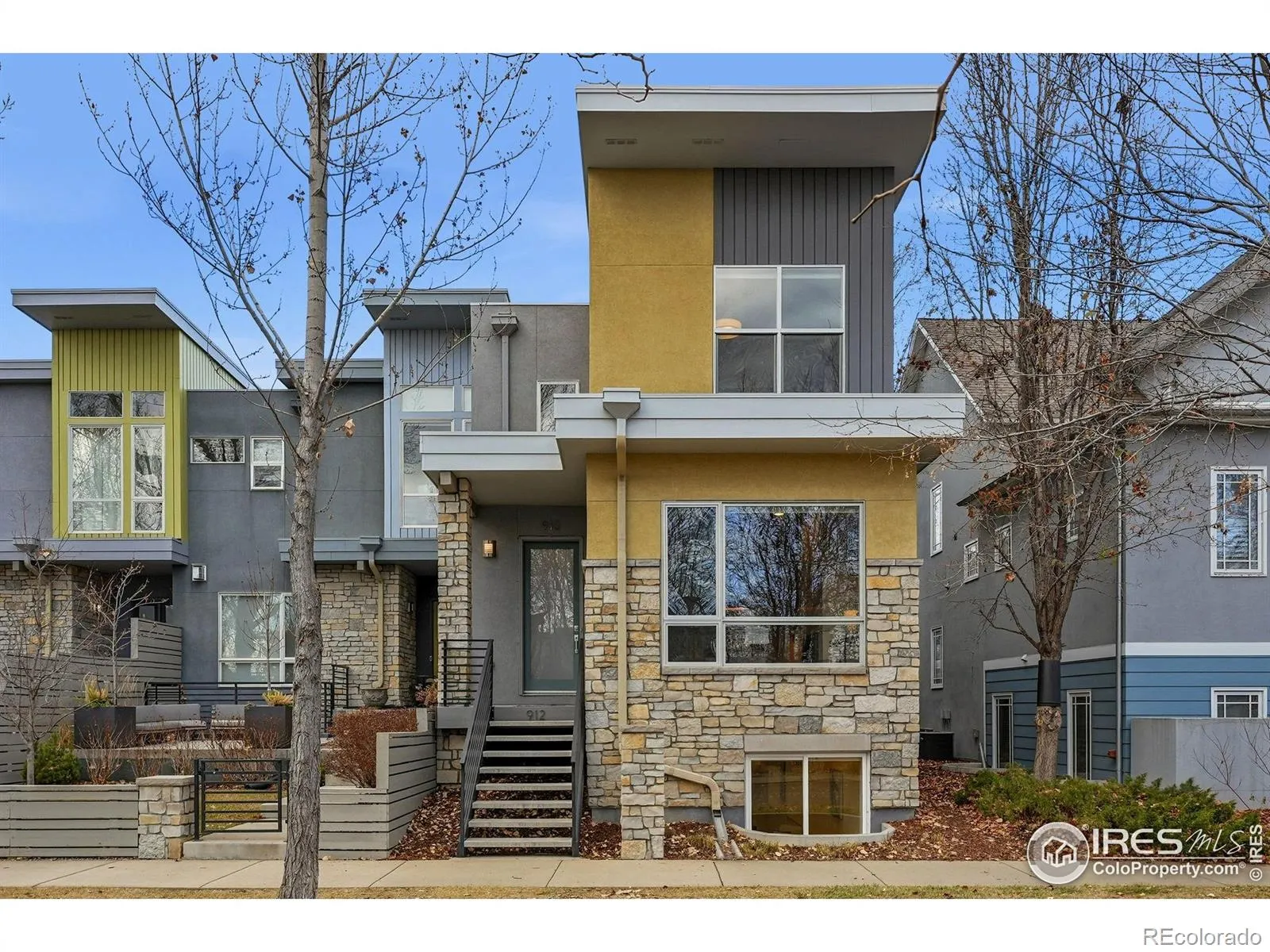 Welcome to 912 Confidence Dr, a stunning 2,856 sq ft townhouse nestled in Longmont’s renowned Prospect New Town-hailed as the “Coolest Neighborhood in America.” Built by the green-certified Markel Homes, this residence offers three bedrooms, four bathrooms, and a focus on sustainable, light-filled living. The main level is designed for effortless daily life, featuring soaring ceilings, beautiful hardwood floors, and an inviting living area anchored by a cozy gas fireplace. The open-concept kitchen is a chef’s delight with stainless steel appliances, a gas range, and a spacious eat-at island, flowing seamlessly into the dining area. A sliding door leads to a private patio, perfect for al fresco dining. True one-level living is made possible by the luxurious main-level primary suite, complete with a walk-in closet and a spa-inspired ensuite featuring dual sinks and a soaking tub. This level also includes a laundry room and direct garage access. Upstairs, a flexible loft area-ideal for an office or reading nook-connects two additional bedrooms and a full bath. The garden-level basement extends the living space with an open, naturally lit area perfect for a recreation room, studio, or guest suite, complete with a full bathroom and ample storage. Modern comforts include central A/C and a UV air filtration system. Living here means unbeatable convenience; you are just blocks from Prospect’s vibrant hub of shops, cafes, and parks. This exceptional home perfectly blends modern design, convenience, and a lively community setting.