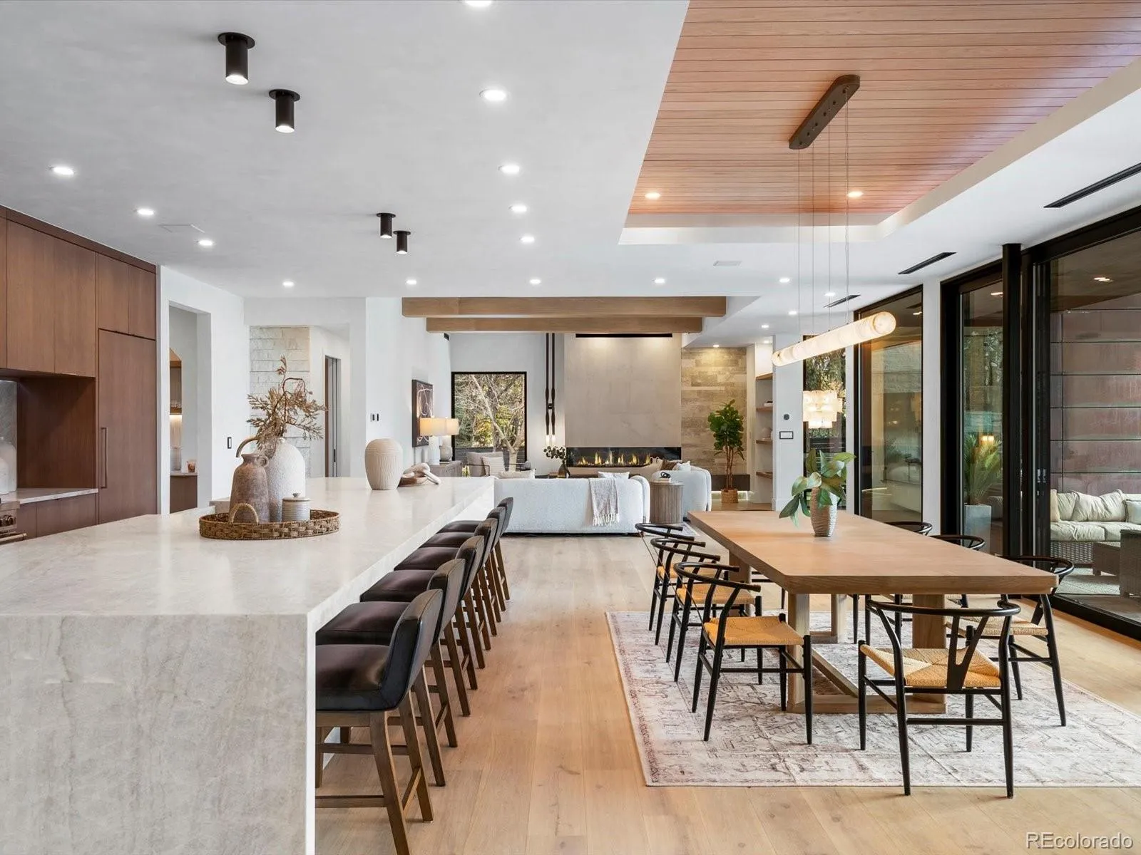 This is Golden Hour Haus. Fully remodeled in 2025 by McCabe Ln. Homes, this iconic property with updated design is one Denver has never seen. Inspired by architecture in Tulum and Aspen this home flows inside to outside. The main floor features a designer kitchen with a 17 foot mitered Taj Mahal island, modern walnut cabinetry with paneled appliances and a back kitchen that is loaded with appliances and features. The main floor is an open concept with floor to ceiling windows surrounding. Off the main floor is an indoor outdoor flow to the large patio, new pool/hot tub, outdoor kitchen, and fire pit. The main floor also features an office, formal living space and dining. The primary is located on the second floor and has a custom closet, and spa like primary bathroom. The primary bathroom has a tub made from solid travertine, steam shower, and two full sized vanities. The upstairs also features a loft, three bedrooms and two full baths. The laundry is also located off the bedrooms in the second floor. The wellness retreat is off the lower level and features walnut paneled walls, plenty of space for gym equipment, a cold plunge and a sauna. The lower level also includes a full bath and bedroom/rec space. The garage is a very rare find in Denver with seven parking spaces, epoxy floors, gas heat, painted walls. This home is on a very private lot that is just under a half acre.