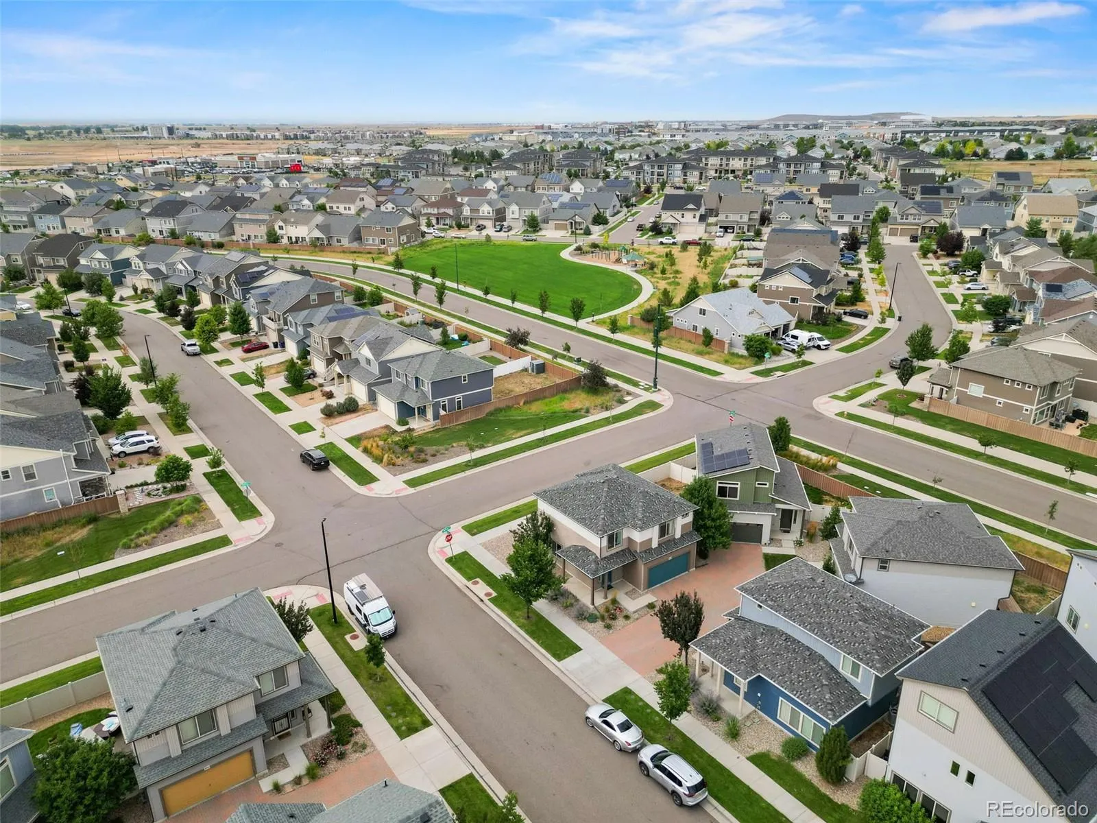 Are you a jet-setter, pilot, or travel frequently for work? Maybe you just want something with a yard in Denver that isn’t over half a million dollars. This 2017 build is conveniently located on a corner lot near grocery stores, restaurants, the airport, and I-70. The open concept kitchen and living area on the main floor will allow you to seamlessly host that dinner party you’ve been pinning recipes for. Easily entertain your guests or have a cocktail night with your friends gathered around the kitchen island. Then head to the front porch for a European cafe style moment with an espresso martini or a glass of wine. The private backyard is a blank slate you can transform into your private oasis or garden of your dreams. Upstairs, you will find two bedrooms and a loft space. The primary bedroom has an attached bathroom with a double vanity, bathtub, and spacious master closet. The second bedroom can be a kids’ room, office, guest space, craft room, you name it. With an additional bathroom across the hall, everyone will have their privacy. The loft/flex space offers versatility and could be used as play area, library nook, workout space, or home theater. Laundry is located on the same floor, so no need to haul clothes up and down the stairs. The two-car garage ensures your vehicles won’t be subject to a hail storm, and the green space and park just a block away is perfect for letting the kids and dog burn off some energy. The neighborhood also offers secluded walking trails to First Creek Park and Green Valley Ranch Golf Club! This is one you won’t want to miss! Be sure to view the floor plans and virtual 3D walkthrough!
