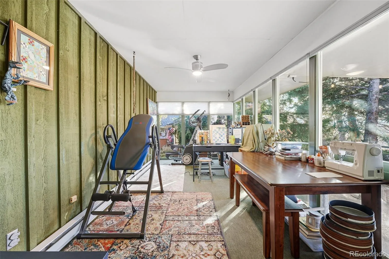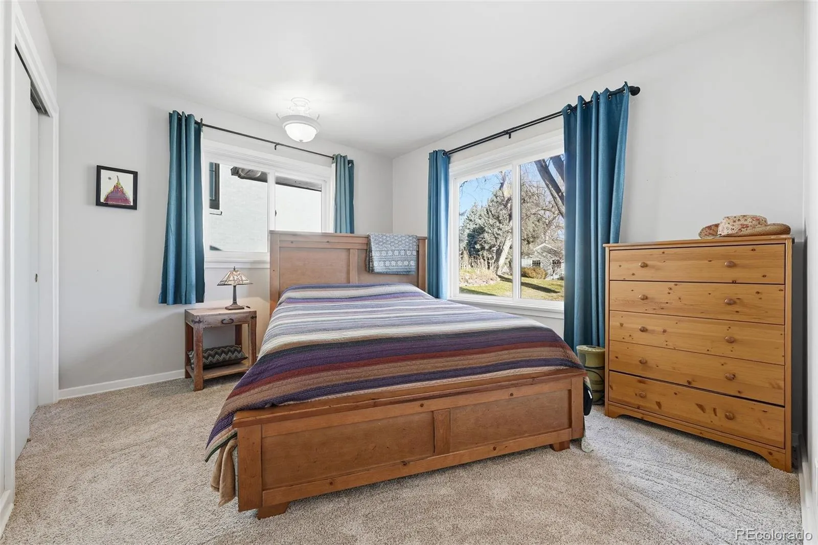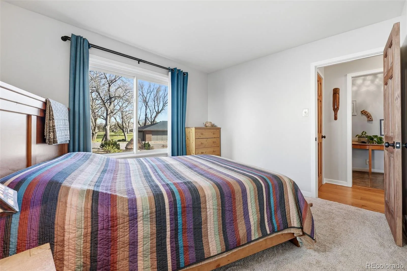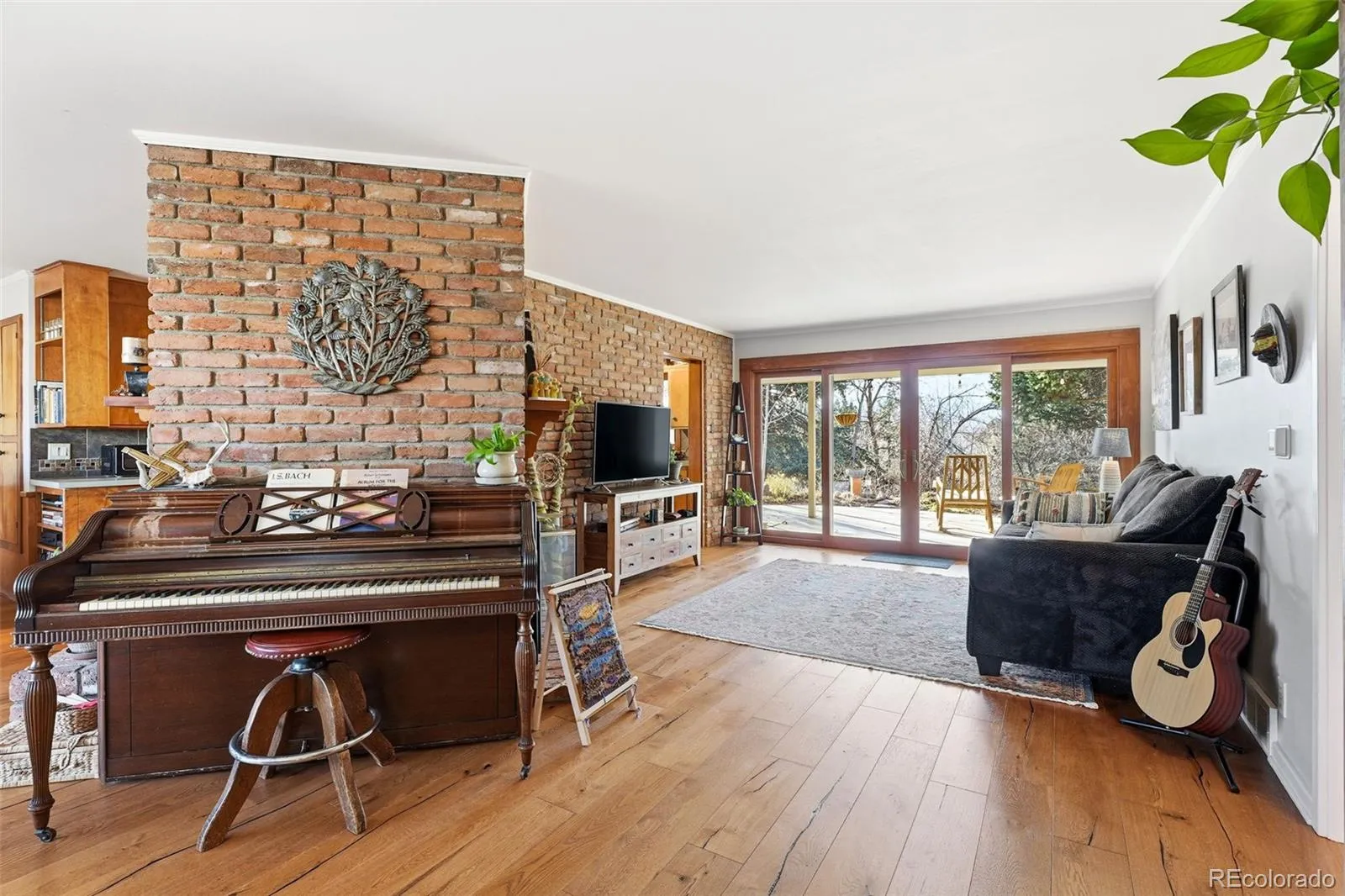 Nestled far back on a secluded cul-de-sac, backed by Sunset Golf Course to the east and mountain/forest views to the west, this tastefully updated mid-century home retains its timeless character while delivering modern luxury. Follow the winding brick path to the blue front door, step inside, and instantly feel at home among exposed brick and floor-to-ceiling windows. The updated kitchen boasts new stainless-steel appliances, generous counters, and abundant storage. The main-level primary suite includes an en-suite bath; down the hall are another bedroom and a second bath—both elegantly refreshed with 21st-century design and function. New energy-efficient windows flood the home with natural light. A double-sided gas fireplace warms the open living and dining areas, accented by original brick and newer engineered wood floors. The sunlit sunroom with floor-to-ceiling windows is perfect for a home office, studio, or gym. New sliding doors lead to a private covered patio and a serene backyard that feels like a step back in time. Major updates include a new roof (2019), windows (2023), AC and furnace (2025), fresh interior/exterior paint, new flooring, and R54 attic insulation for lower bills. A two-car garage plus a large unfinished basement offer storage and expansion potential. With laundry and all essentials on the main level, this home delivers peaceful, turnkey Longmont living—landscaping shines in spring!