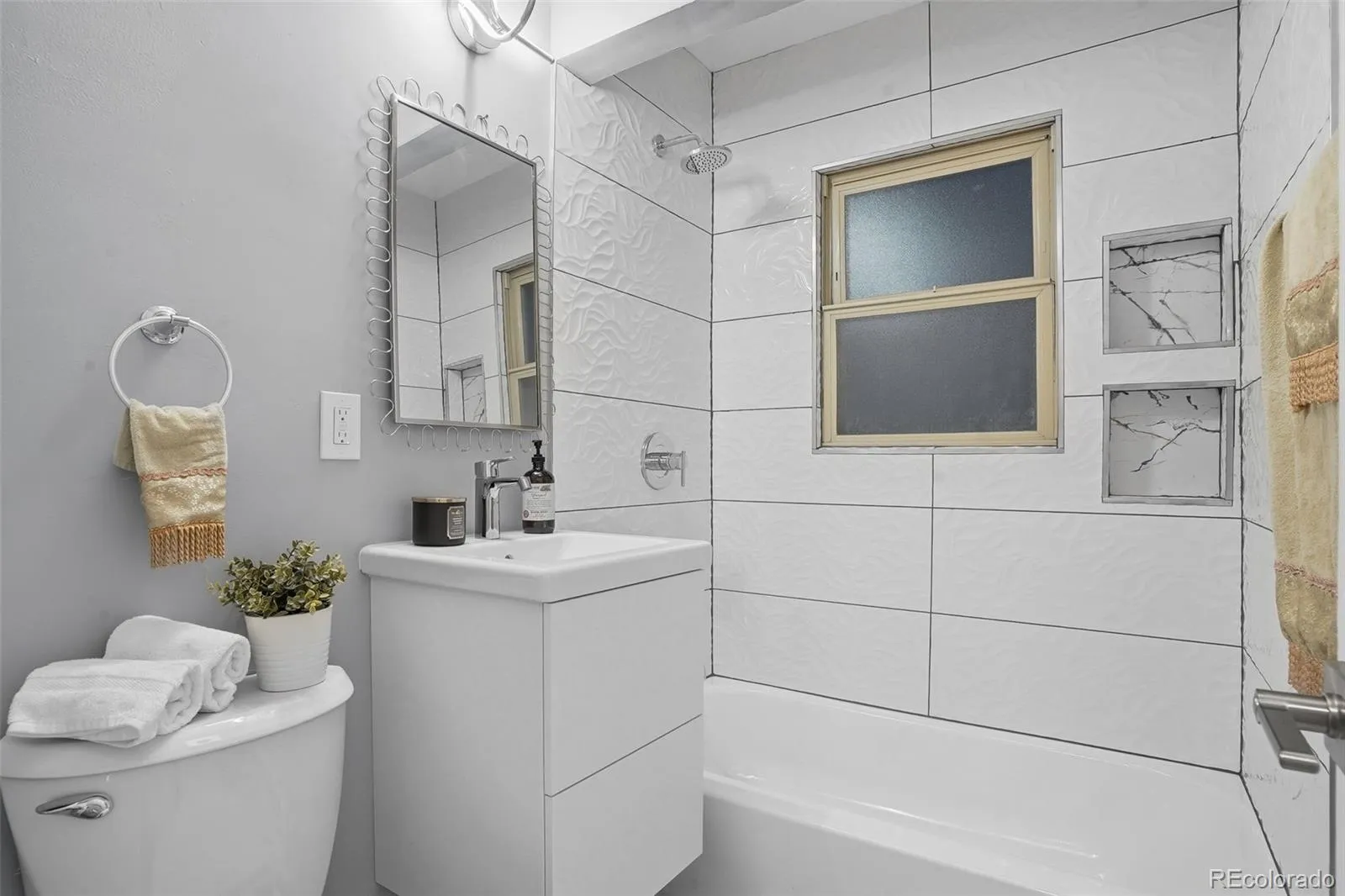 Welcome to 4200 S Bannock St in Englewood — a completely remodeled 4-bedroom, 2-bath home on a corner lot. This 1,548 sq ft home sits on a 6,229 sq ft lot and features an oversized 2-car garage with 9-foot doors, perfect for large vehicles, storage, or a workshop. Step inside to find rich hardwood floors throughout the main living areas, updated and modern lighting, complemented by luxury finishes, designer lighting, custom cabinetry, and high-end bathroom upgrades that make every room feel modern and elegant.