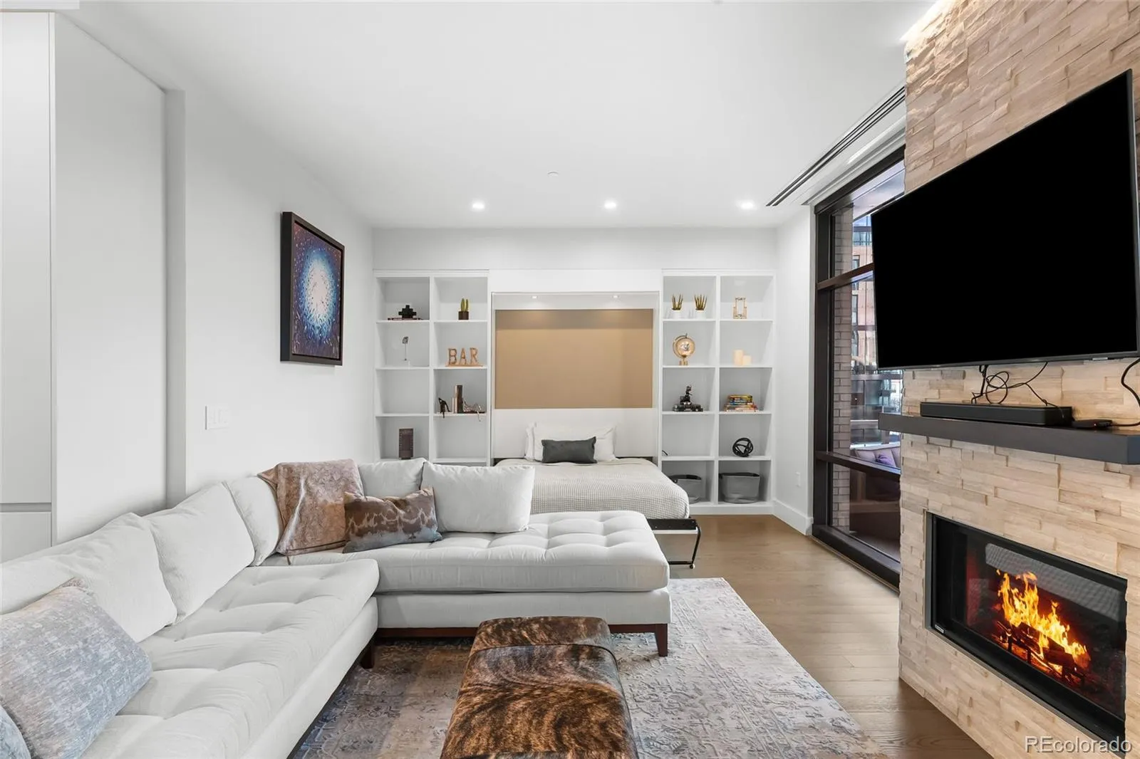 Step into a refined Denver lifestyle at McGregor Square, where modern design meets impressive convenience. This residence offers a balanced blend of comfort, sophistication and smart urban living, suited for anyone who values quality, style and proximity to the best of downtown. The open concept layout welcomes natural light and frames a tranquil courtyard outlook that feels private within a vibrant city setting. A thoughtfully designed kitchen features quartz countertops, ItalKraft cabinetry and Wolf, Sub Zero and Asko appliances. The living area includes a custom Murphy bed that enhances the flexibility of the space while maintaining a polished aesthetic. The expansive private balcony is a signature feature, extending the living space and creating an exceptional setting for entertaining or unwinding. From this vantage point, the stadium style outdoor screen offers a front row viewing experience for sports and events, while sunsets and lively plaza gatherings create a captivating backdrop for quiet evenings at home. The primary suite provides a spacious walk in closet and a luxurious five piece bathroom, while a second bathroom ensures added comfort for daily living. Every detail throughout has been selected to support a lifestyle of refinement, ease and modern comfort. Residents enjoy a state of the art fitness room, a rooftop infinity pool, a sauna, an infrared sauna, a hot tub, a resident lounge, concierge services, 24 hour security and valet guest parking. Dining, entertainment, boutique wellness studios, markets, Coors Field and the dynamic McGregor Square plaza sit just beyond the front door, creating effortless connection to the neighbourhood’s most vibrant offerings. This residence presents a remarkable opportunity to experience elevated urban living in one of Denver’s most desirable and walkable locations.