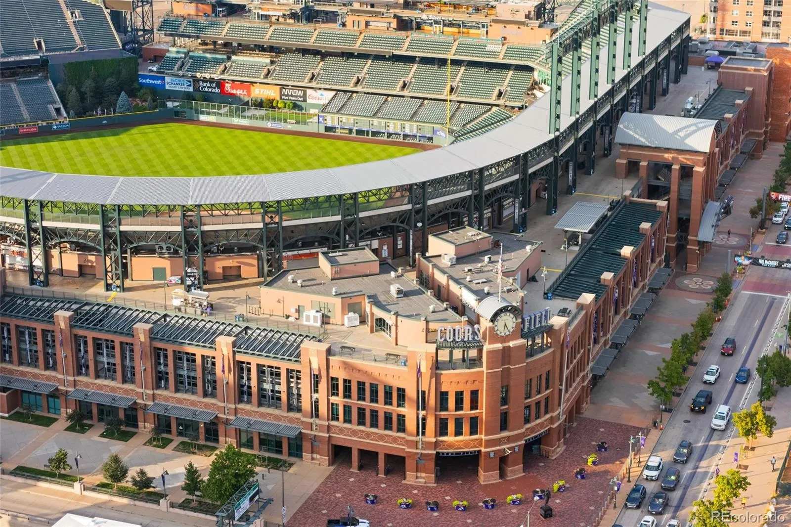 Step into a refined Denver lifestyle at McGregor Square, where modern design meets impressive convenience. This residence offers a balanced blend of comfort, sophistication and smart urban living, suited for anyone who values quality, style and proximity to the best of downtown. The open concept layout welcomes natural light and frames a tranquil courtyard outlook that feels private within a vibrant city setting. A thoughtfully designed kitchen features quartz countertops, ItalKraft cabinetry and Wolf, Sub Zero and Asko appliances. The living area includes a custom Murphy bed that enhances the flexibility of the space while maintaining a polished aesthetic. The expansive private balcony is a signature feature, extending the living space and creating an exceptional setting for entertaining or unwinding. From this vantage point, the stadium style outdoor screen offers a front row viewing experience for sports and events, while sunsets and lively plaza gatherings create a captivating backdrop for quiet evenings at home. The primary suite provides a spacious walk in closet and a luxurious five piece bathroom, while a second bathroom ensures added comfort for daily living. Every detail throughout has been selected to support a lifestyle of refinement, ease and modern comfort. Residents enjoy a state of the art fitness room, a rooftop infinity pool, a sauna, an infrared sauna, a hot tub, a resident lounge, concierge services, 24 hour security and valet guest parking. Dining, entertainment, boutique wellness studios, markets, Coors Field and the dynamic McGregor Square plaza sit just beyond the front door, creating effortless connection to the neighbourhood’s most vibrant offerings. This residence presents a remarkable opportunity to experience elevated urban living in one of Denver’s most desirable and walkable locations.