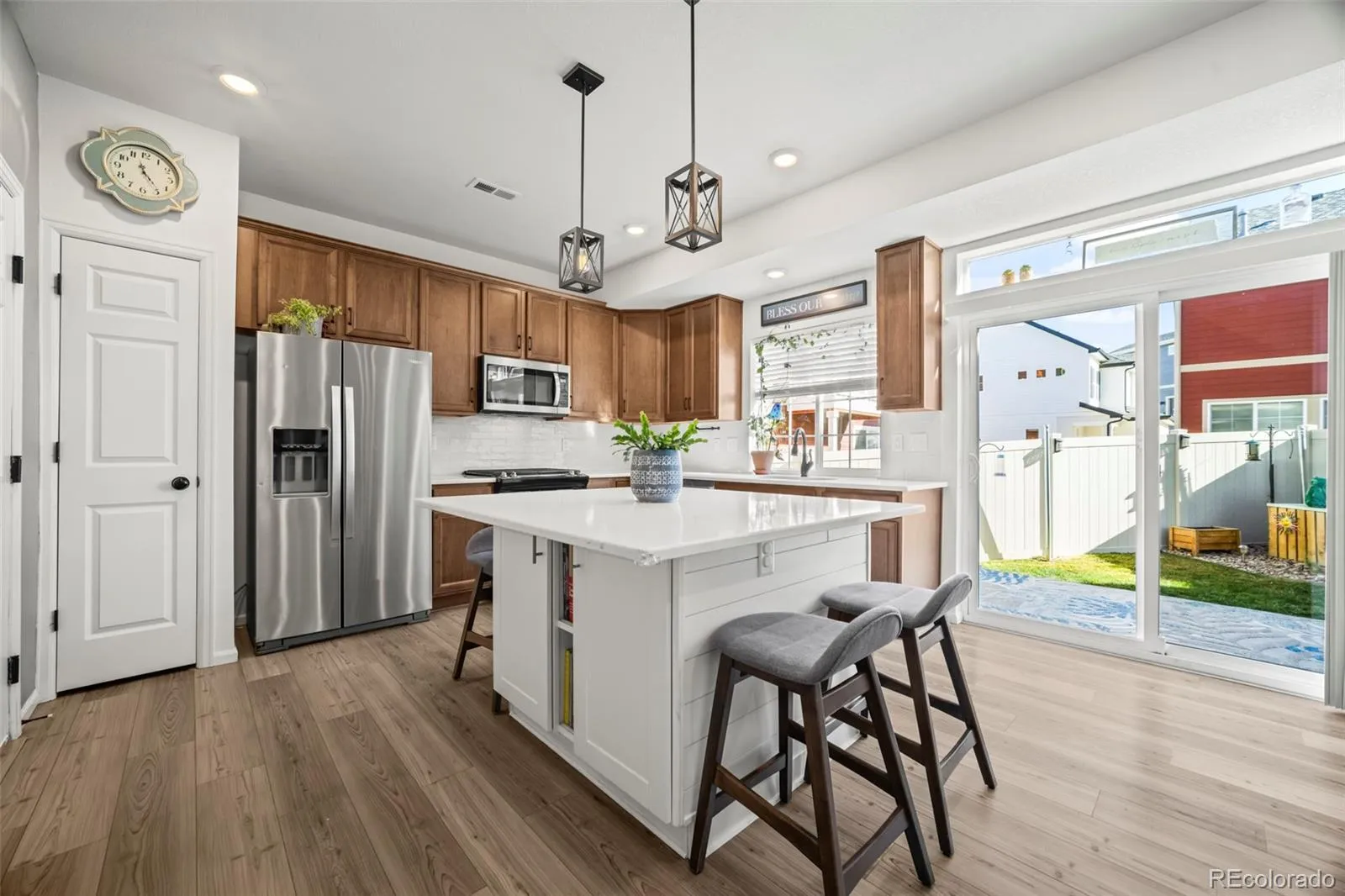 Welcome to 1174 Highlands Drive, a beautiful, well appointed, customized home in the highly desirable Erie Highalnds community of Erie. This light, bright home blends luxury design updates, spacious living/kitchen/dining and amazing outdoor space great for effortless entertaining. Step inside to a bright, open main level featuring expansive windows, amazing natural light, with custom fireplace back splash. The expansive kitchen serves as the heart of the home, complete with quartz countertops, abundant cabinetry, a large island, large pantry. Upstairs, the serene primary suite provides a peaceful retreat with a large walk-in closet and a well-appointed upgraded bath and walk-in tiled shower and two sinks. Additional bedrooms offer flexibility for guests, hobbies, or a home office. Laundry room offers tons of storage, customized cabinets, and awesome counter space for folding! All rooms have upgraded lighting, many with dimmers for ease and ambiance. Outside, enjoy a beautifully landscaped yard with garden area, perfect for relaxing or dining al fresco – and great storage in the spacious shed! Located minutes from top-rated schools, parks, trails, and all the charm Erie has to offer, this move-in-ready home delivers exceptional convenience, comfort, and style.