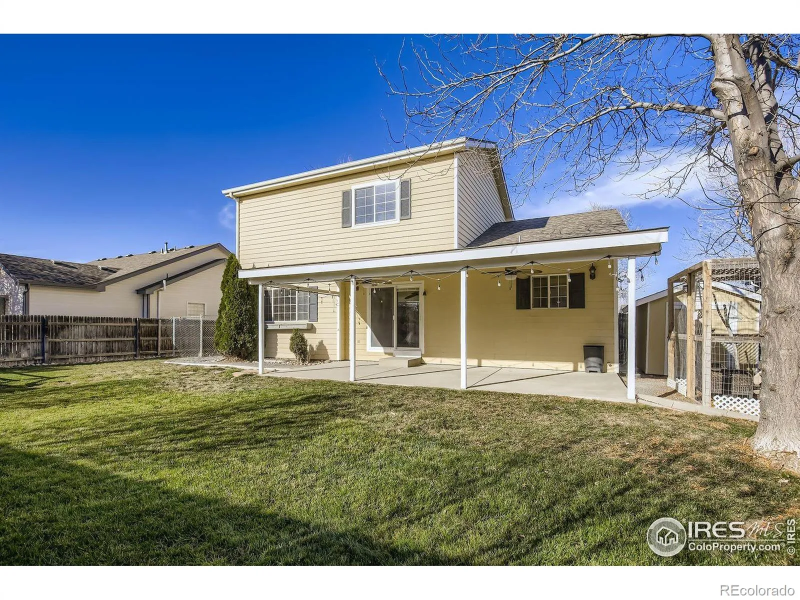 Turn-key two-story home in the desirable Drakes Crossing! Tucked away on a private, maturely landscaped cul-de-sac lot, this home offers great curb appeal with concrete curbing and garden beds. The main floor features a formal living room or flex office space, kitchen with stainless steel appliances, dining area, and large family room with cozy gas fireplace. Upstairs includes a loft, two guest bedrooms with full bath, and a spacious primary suite with 5-piece bath and walk-in closet. The finished basement has new carpet and a large bedroom with en-suite bath, second living area, and storage. Enjoy the backyard retreat with covered patio, privacy fence, dog run, and storage shed. Conveniently located near schools, grocery, dining, coffee, and quick Hwy 34 access!