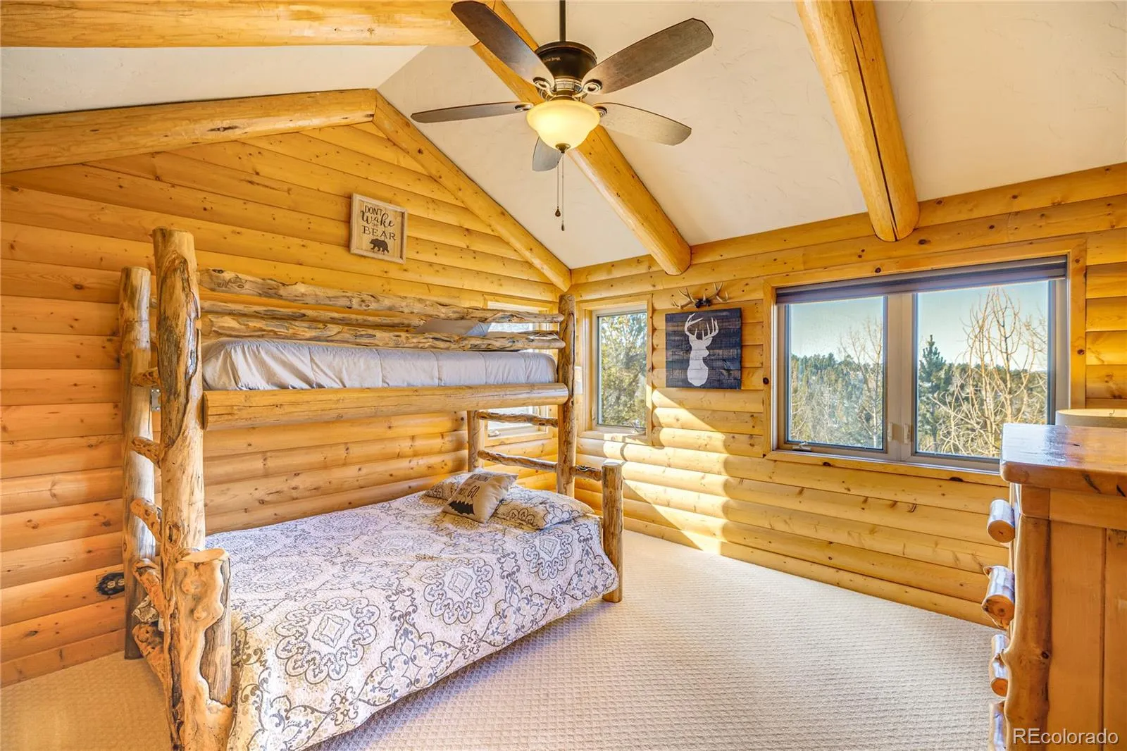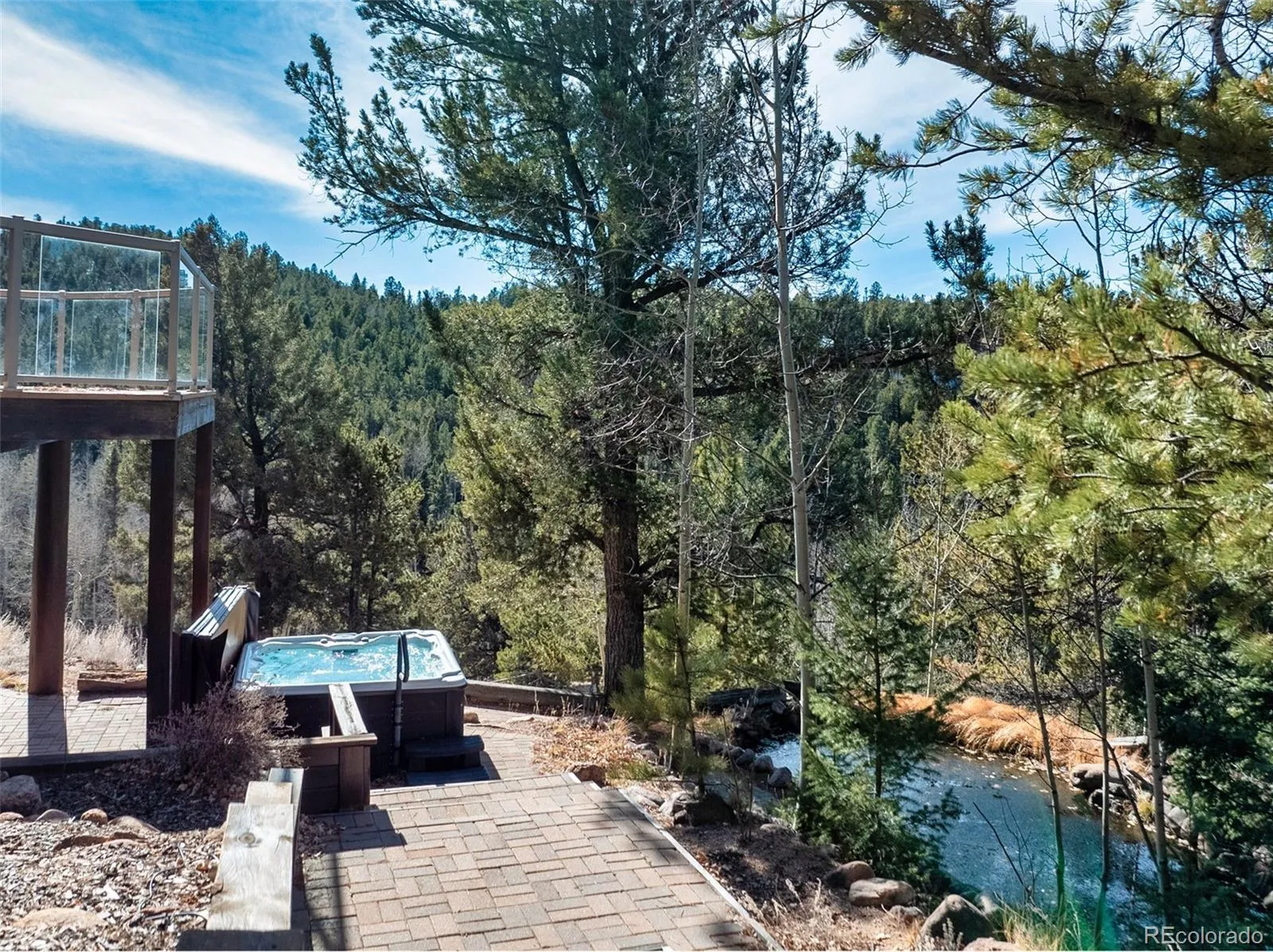 Amazing, custom mountain log home, overlooking your own personal pond w/water rights! This is a turnkey property, set-up as a successful short term rental business! 12 inch log construction, open beams & soaring great room floor plan. Living area boasts soaring beamed ceilings, & a wood-burning fireplace w/ log mantle. Great room is adjacent to an incredible sunken, sunroom, overlooking the large pond! Commercial kitchen equipped w/ Subzero refrigerator, new commercial Zline 6 burner gas stove/oven w/ griddle & commercial hood, beverage refrigerator; counter-bar island seating. Main level master suite, w/ walkout to the deck, attached 5 pc. bath, new walk-in custom shower, plus a claw foot tub. New interior paint, light fixtures, fans, new boiler system, & exterior stain recently completed. Main level laundry, mud room, & 3 car oversized garage. 2 upper level bedrooms nicely appointed, one of the guest rooms has it’s own 1/2 bath attached. Upper level addt’l 5 pc. guest bathroom available on this level. Expansive lower level w/ rec room area, + large family room, walkout to the lower patios & new hot tub. 2 large storage rooms also complete this level. Windows surround this room making this a wonderful entertaining area. Perimeter decks include tempered glass panels never obstructing views while picnicking outdoors! Paver stone patios, walkways, paths & garage apron; outdoor fire-pit, gazebo picnic area, trails & hiking throughout the parcel! Property INCLUDES the WATER RIGHTS from the spring fed pond, multiple water feature ponds plumbed for the enjoyment of the sounds of trickling water! Outdoor entertaining is key to this home! South and Western exposure, making solar gain a key aspect in this comfortable home, which also includes hot water in floor & baseboard heating. Located only 10 minutes from Divide and 20 minutes to Woodland Park. Just 1.5 hrs from snow skiing, 30 minutes from trophy trout fisheries, and Mueller State Wildlife Park is just one ridge away!
