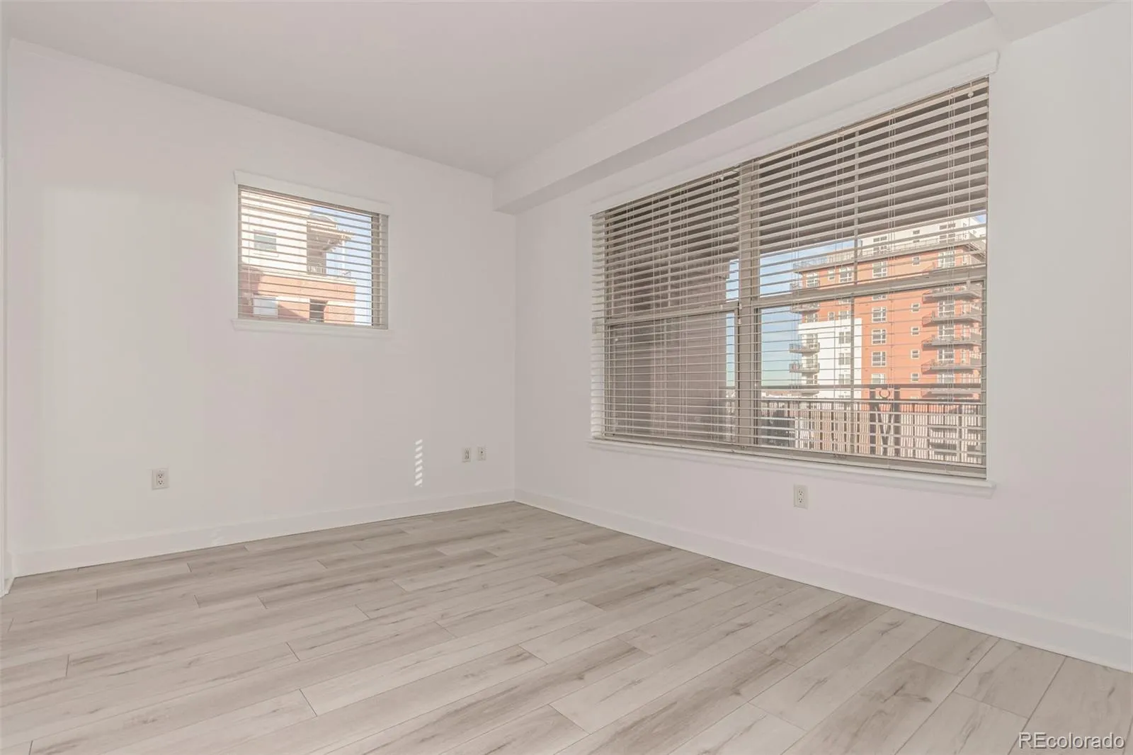 Grant Park Condos, Urban Contemporary Living in the Heart of Uptown! Welcome to this stunning & bright two bedroom and two bath unit. This nicely updated condo with east facing views from the living room, primary bedroom and your own private balcony—ideal for relaxing evenings or morning coffee. Inside, this beautiful unit offers a modern, open-concept layout, a large kitchen with island, white cabinetry, sharp Quartz countertops, stainless steel appliances, gas stove and plenty of space to cook & entertain. The open style great room flow is a comfortable combination of living & dining. The primary bedroom with three windows, an ensuite four-piece bathroom and walk-in closet. The second bedroom has a full-size Murphy bed installed, closet, built-in corner office desk and bookshelves- a wonderful use of space. Additional features include wood flooring throughout and a stackable washer/dryer. Access the 2nd floor for the great building amenities- a large fitness center, spacious outdoor patio and community meeting room. Set in a prime location, across the street from the corner of the building is the local Benedict Fountain Pocket Park. Looking for more close by? Travel south a block over to the close by 19th street row of restaurants and businesses. If that’s not enough, travel up just 2 blocks more to 17th Avenue, which is whole additional corridor of restaurants, shops & stores. Downtown Denver too is very close, just head over west about 5 blocks and you are connected to the newly updated 16th Street with free buses making it easy to enjoy everything the city has to offer all the way to LODO & Union Station.