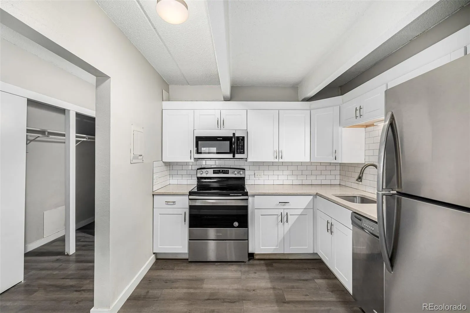 Check out this beautiful 2 bed, 1 bath condo in Capitol Hill, now for sale! Discover a spacious dining & living area w/beamed ceilings, wood-look flooring, neutral palette, and a fireplace to keep you warm & cozy during the coming winter months. The kitchen comes equipped w/shaker cabinetry, granite counters, subway tile backsplash, and all the stainless steel appliances you’ll need for home cooking. Cozy bedrooms w/mirrored closets promise you and your loved ones a good night’s sleep. PLUS! The bath also showcases dual sinks for added convenience. Enjoy various Community amenities, such as a fitness center and a refreshing pool! Also including a quaint covered patio where you can sit back and enjoy a relaxing summer evening, this is sure to be the place you’ve been looking for! Don’t miss out!