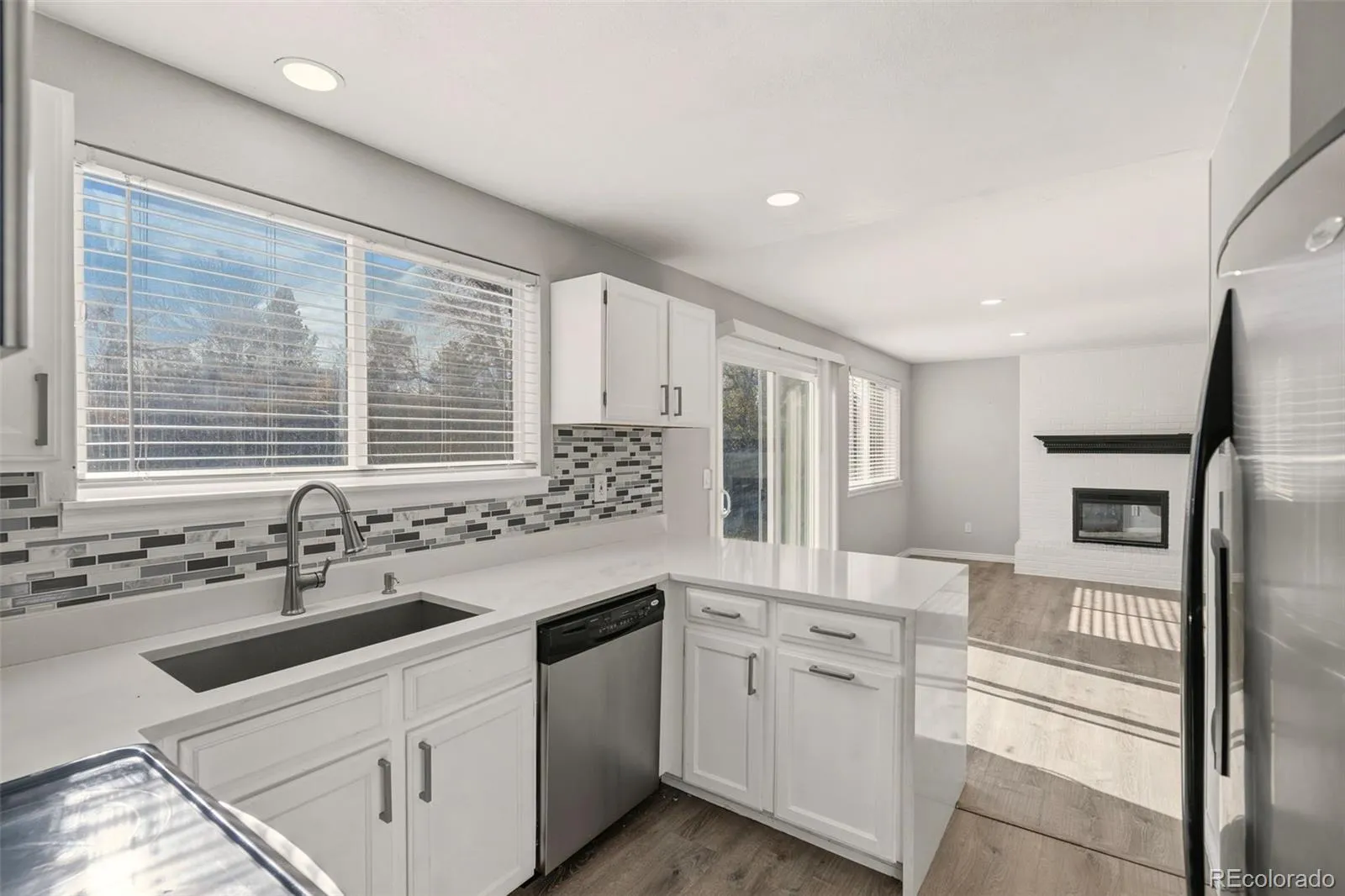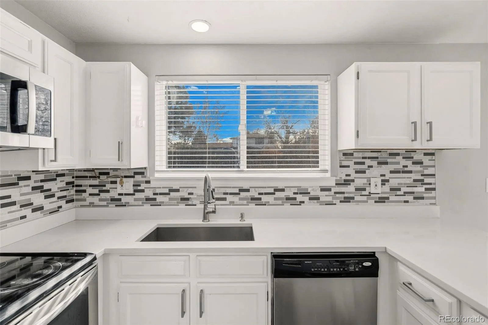 Updates galore in this 3-bed/2-bath sprawling ranch home in Thornton. It sits on a massive 15,783sf lot and has outdoor space for days in both the front and back. The southern-facing backyard is enormous with a few mature trees for shade in the hot summer. It’s fully fenced and has a tough shed for extra storage of yard equipment. There is a stamped concrete patio – perfect for relaxing in the hammock or hosting BBQ night. The open floor plan is bright with recessed LED lights throughout the common areas. The kitchen has stainless steel appliances and quartz countertops. The sink was replumbed to accommodate the deeper country sink. Brush nickel hardware all over. LVP throughout the home. Living room has a brick hearth that adorns the electric fireplace. NO STAIRS! Main floor washer/dryer (included with sale.) Utility room closet has floor access to the crawlspace. All the bedrooms have a ceiling fan. The Goodman A/C and furnace were replaced in 2022. Newer vinyl windows (2020) come with coverings. Water heater is 2015. Brand new roof (2024.) Garage door and opener can be controlled from your phone. Driveway has been replaced (2024.) Sprinkler system front and back were installed in 2020. Trash day is Wednesday 😉 Let’s do this!