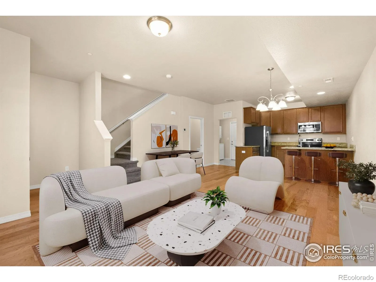 Fantastic Fort Collins location!! Tucked in close to transportation, shopping, dining, and parks. This West facing Rockefeller Plan features an open kitchen layout with beautiful cabinetry, granite counter tops, hardwood floors and stainless steel appliances. The main level is light and open with gorgeous hardwood floors in the Kitchen and Living Room. The guest 1/2 bath is located on the main level as well as the Laundry/Mud Room. On the upper level, the Primary Bedroom features it’s own private bathroom and West facing windows along with the additional two bedrooms and additional bath. The 2 car attached garage is newly painted and wonderful for easy grocery unloading. This one has everything needed to move in today with all appliances including Washer and Dryer. You can call it home for the holidays!