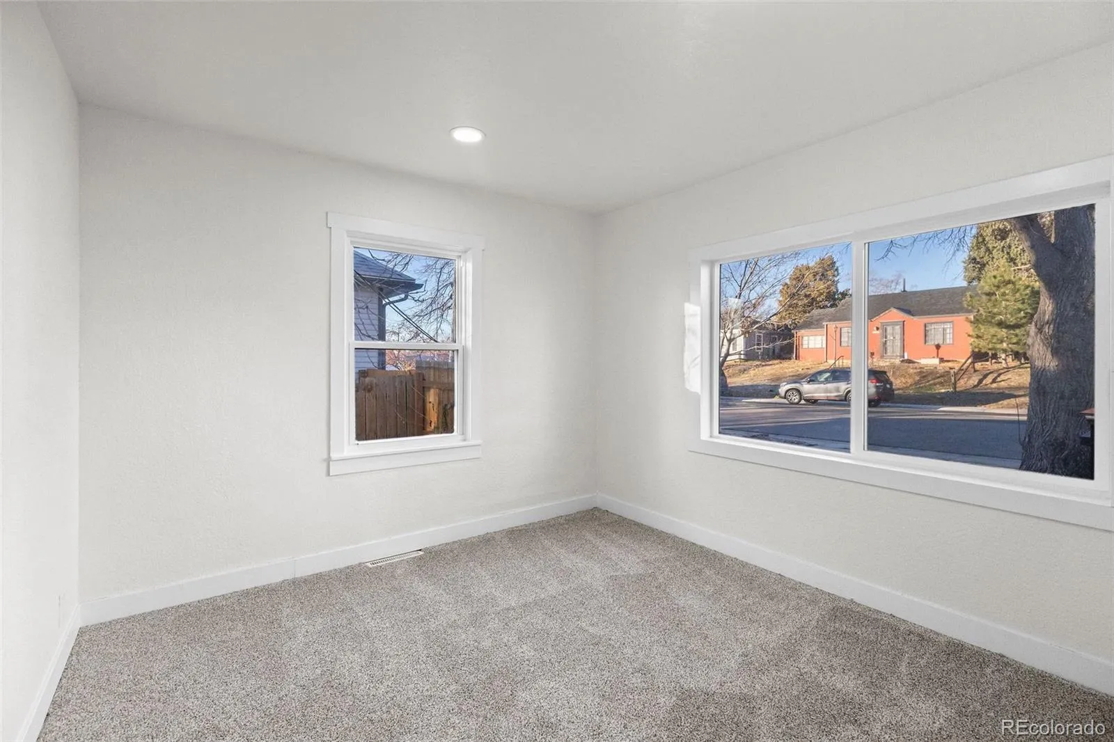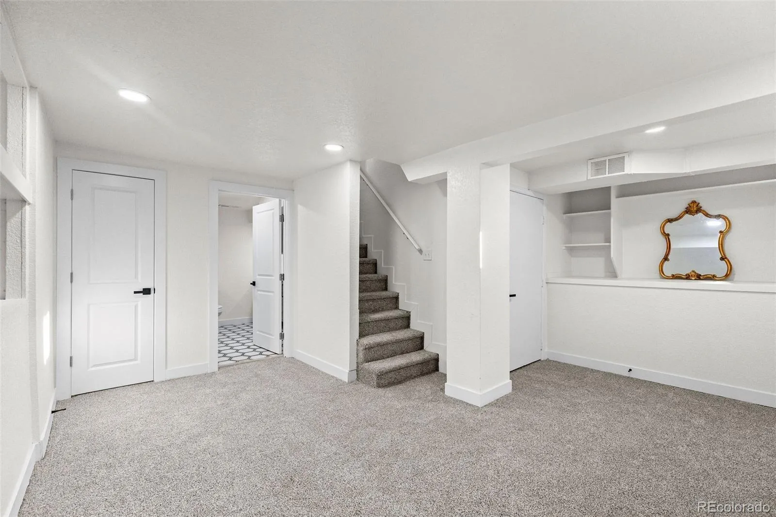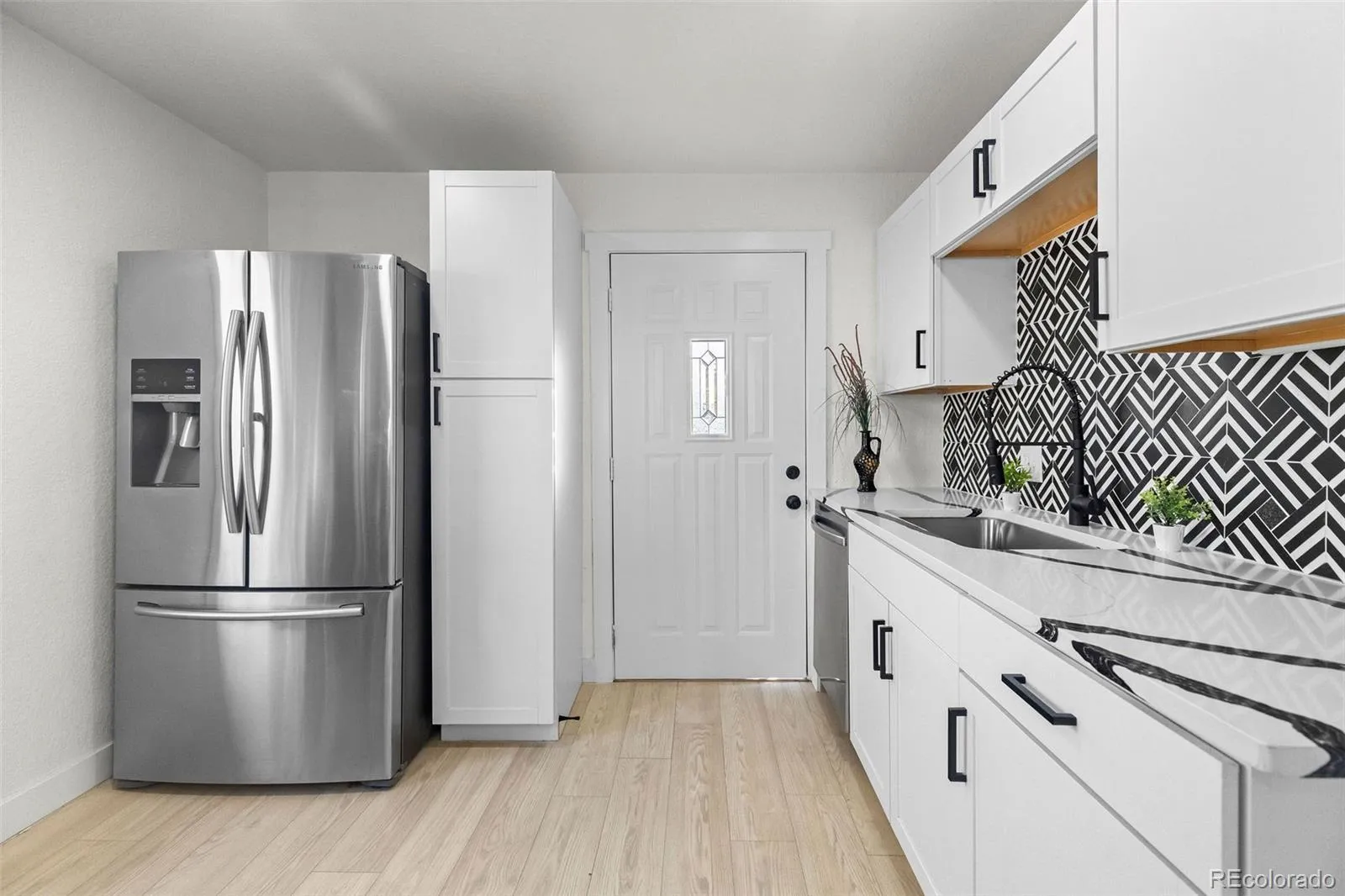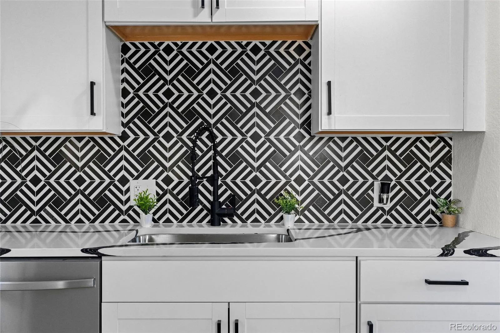 Step inside and discover a beautifully reimagined three-bedroom, two-bathroom home that lives bright, modern, and effortlessly inviting. The main level welcomes you with an open layout drenched in natural light, where the living room connects seamlessly to a designer kitchen. White cabinetry, stainless steel appliances, quartz countertops, and a striking Basalt Dolomite Geo Mosaic backsplash create a clean, contemporary feel that any home chef will love. Just off the kitchen, the dedicated dining room feels special with oversized windows and a custom walnut fluted wood-panel accent wall—a true statement moment. A generous secondary bedroom (ideal for guests or a home office) and a full bath with a marble-tiled shower complete the main floor. Head downstairs to the lower level and you’ll find a private primary retreat designed for comfort. Custom built-ins maximize space, while the large closet and stylish 3/4 en-suite add function and luxury with hexagon marble mosaic flooring, a double vanity, and a quartz step-in shower. Outdoor living is made easy in the fully fenced backyard, offering mature landscaping, privacy, and plenty of room to make it your own. A small shed provides convenient extra storage. Perfectly situated just minutes from lakes, parks, and trails, the location offers endless ways to enjoy the Colorado outdoors. Prefer city energy? Downtown Denver is only 10 minutes away, with quick access to DTC and DIA—both about 30 minutes from your front door. Bonus: Our preferred lender is offering a complimentary 1-0 temporary rate buydown for qualified buyers—exclusive to this property. Ask for details!