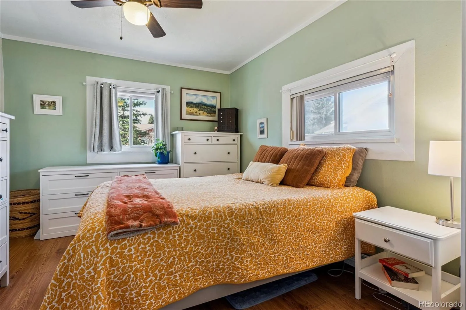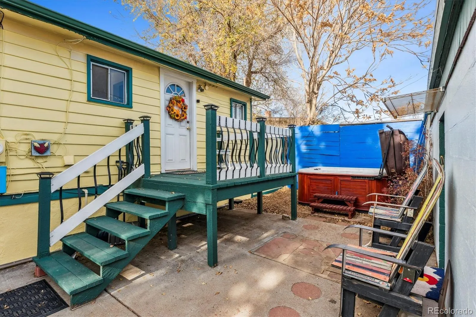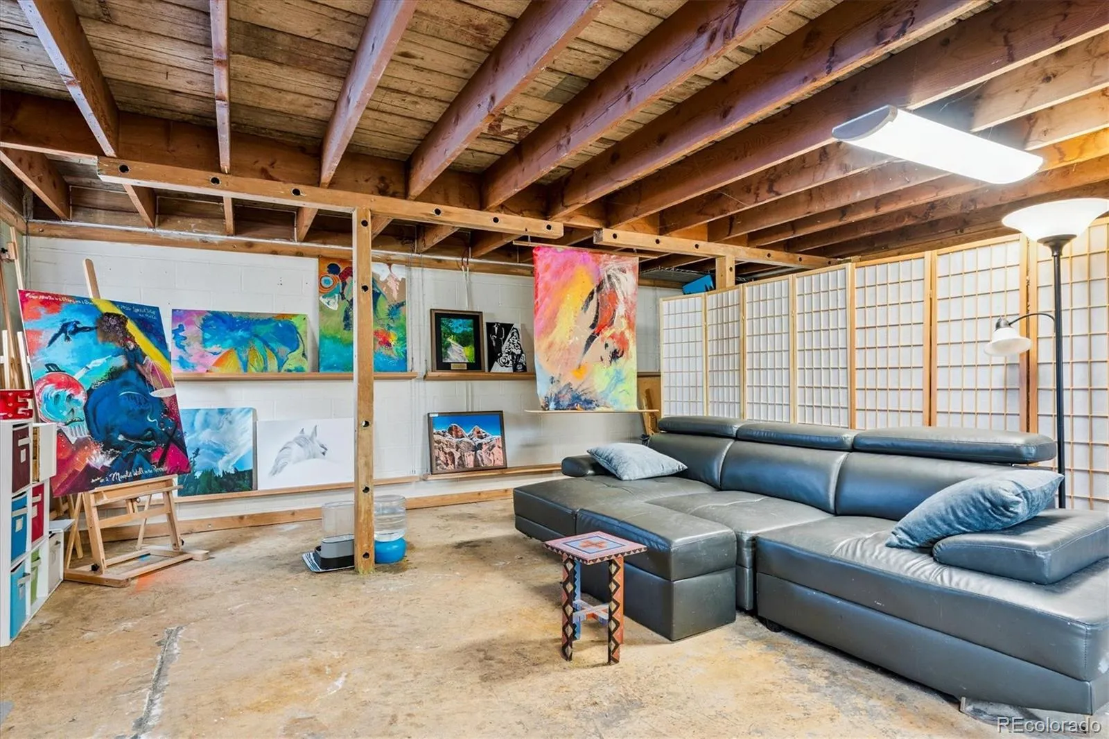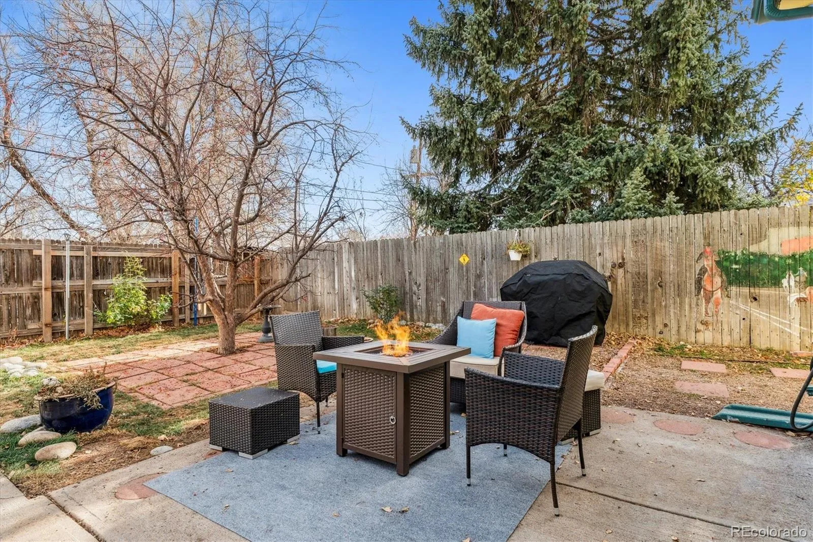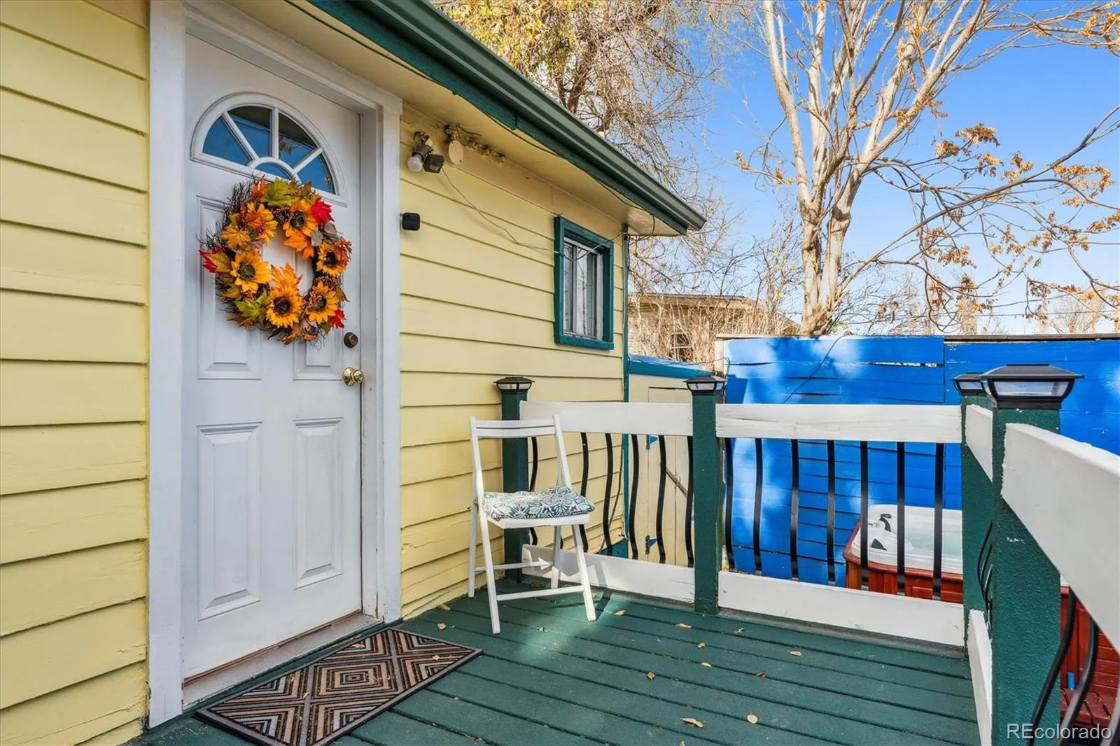 Turn back the clock and step into the timeless charm of this 1925 Barnum neighborhood treasure—just steps from the Lakewood Gulch Trail. This storybook bungalow welcomes you with original hardwood floors and a living room featuring a retro built-in entertainment center, flowing into a dining area with a classic box window and window seat. The open kitchen blends history and function with a built-in bar, brand-new flat-top stove, ample counter space, and a window overlooking the private courtyard-style backyard. The main level includes a spacious primary bedroom with two closets, accompanied by a full bath conveniently located in the hallway. The finished basement adds character with two non-conforming bedrooms, colorful tile accents, built-in bookshelves, and flexible space perfect for a workout area, office, or second living room, plus plenty of storage. Outside, enjoy a secluded retreat complete with a hot tub, firepit area, and a detached 2-car garage transformed into an art studio with a gas fireplace. A brand-new full-length shed expands storage options, and four additional dedicated parking spaces sit conveniently behind the home. Just minutes to Sloan’s Lake, downtown Denver, and public transportation, this 1925 gem beautifully blends old-world charm with modern convenience.