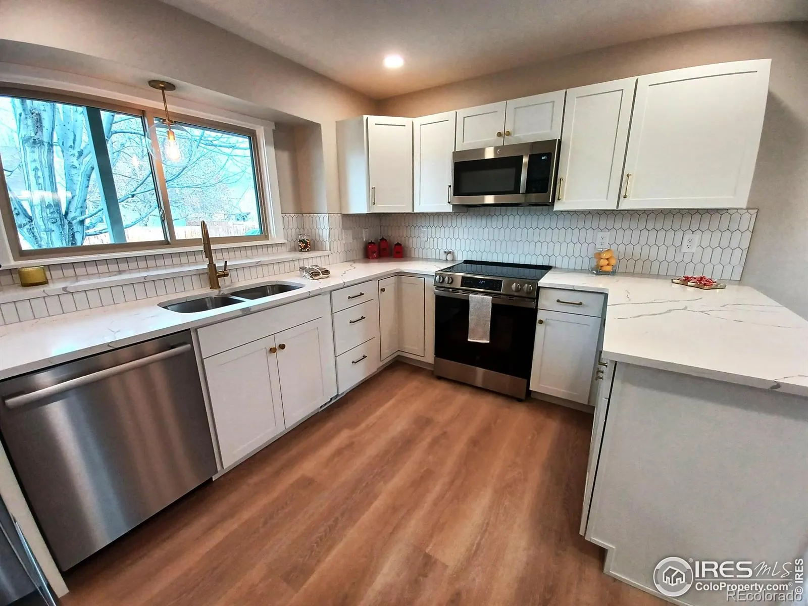 Stunning Updated Two Story Home with Excellent West Longmont Location! Efficient 3-bedroom floor plan with spacious rooms and large windows that let in a lot of sunlight. Finishes include new flooring throughout, new kitchen and baths, newer windows, roof, furnace and AC, large private yard with sprinkler system, radon and a full unfinished basement, plus much more. Convenient location on quiet street, minutes from parks, paths, schools, stores and restaurants. No HOA. This property is the perfect place to call home.