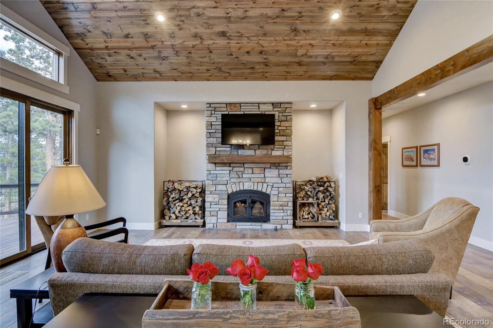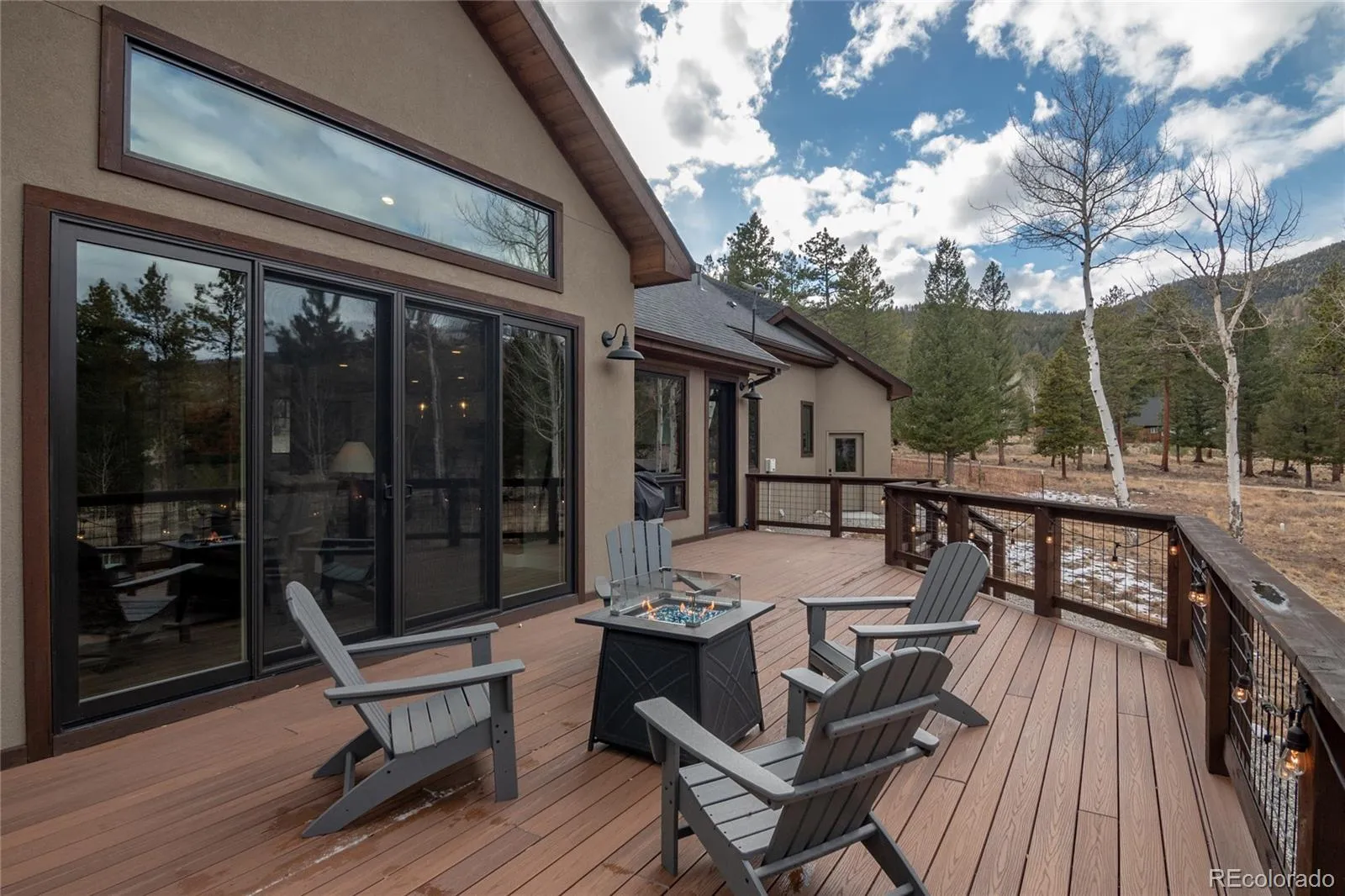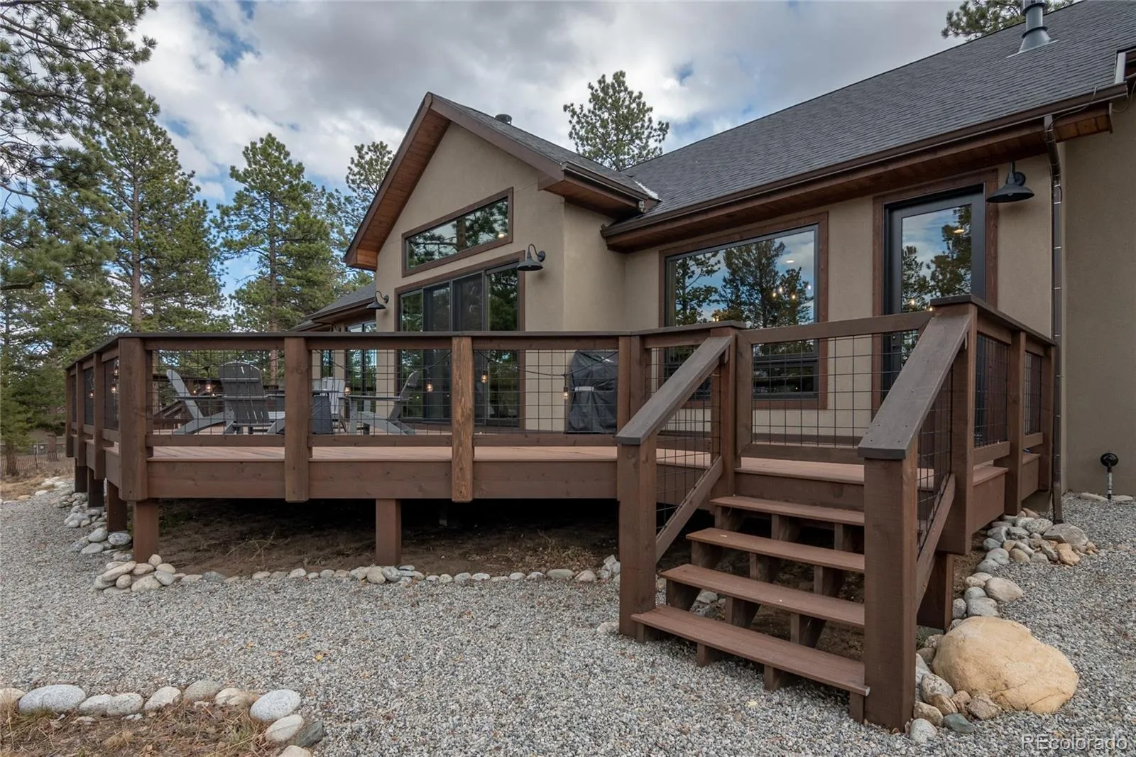 Everyone loves a custom, newer ranch style home, and this one has it all. With no stairs, 3 bedrooms, 3 bathrooms, and a 3 car garage, it offers comfort, convenience, and thoughtful design throughout. The beautiful lot features aspens, lodgepole pines, and borders Adventures Unlimited on the north side, giving you exceptional privacy with only the occasional sight of a few horses passing by. The exterior showcases attractive rock accents, low-maintenance stucco, and a spacious composite deck perfect for evening dining or relaxing in the sunshine. As you enter, a welcoming foyer leads you into a warm, cozy living room where the aroma of the wood-burning rock fireplace instantly makes you feel at home. The vaulted ceiling with wood tongue-and-groove accents adds rustic charm, while four large glass doors open to the back deck, filling the space with natural light and offering views of the wildlife that often wanders through the yard. The kitchen is truly a dream. Bright, white, and beautifully designed with abundant cabinetry, a large inviting island, a stylish farmhouse sink, and oversized pendant lighting that adds personality and warmth. Additional cabinets and counter space along the south wall provide even more storage, and the walk-in pantry includes electrical outlets so appliances can stay tucked away, keeping the counters clean and crisp. The desirable split floor plan features a spacious primary suite with a large bath and extended walk-in closet, while two additional bedrooms on the west side include one with its own ensuite bath. The oversized mudroom keeps coats, boots, and gear organized, and the 3-car garage is a welcome bonus. This home looks and feels like new, in a wonderful location close to paved roads, mailboxes, and endless outdoor recreation, National Forest access, hiking, biking, trails, hunting, and just 10 minutes from all the fun and charm of Buena Vista. I’m excited to show this property to you. I know you’ll love it!