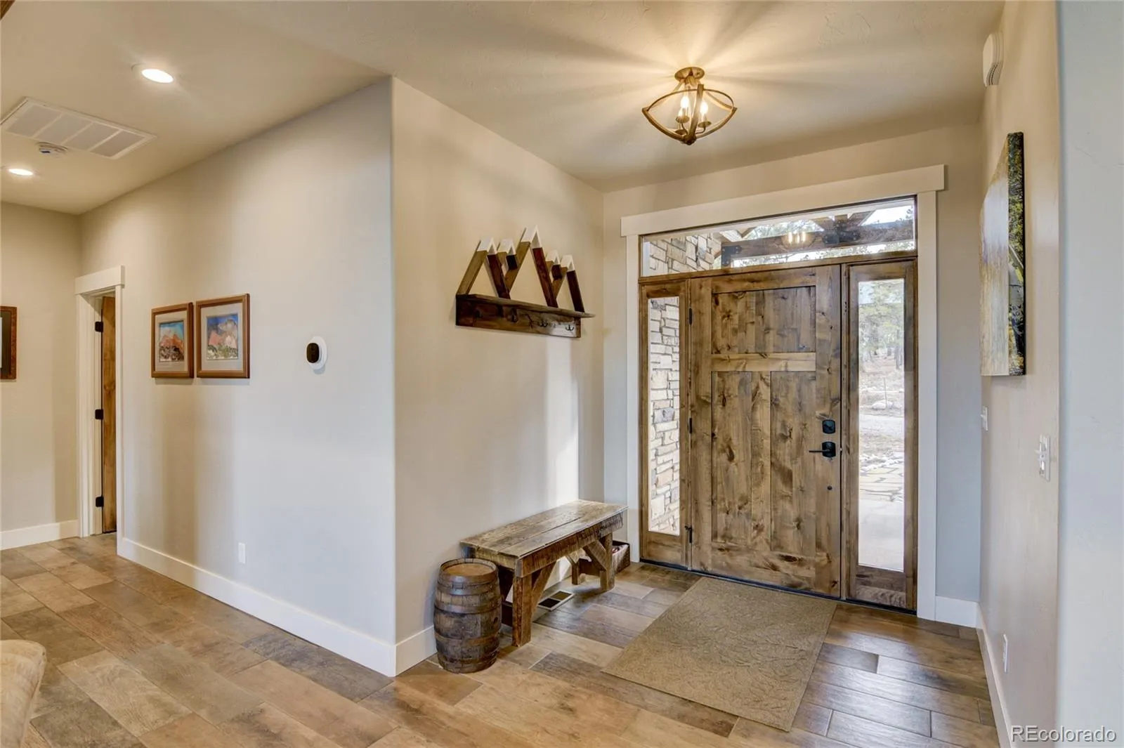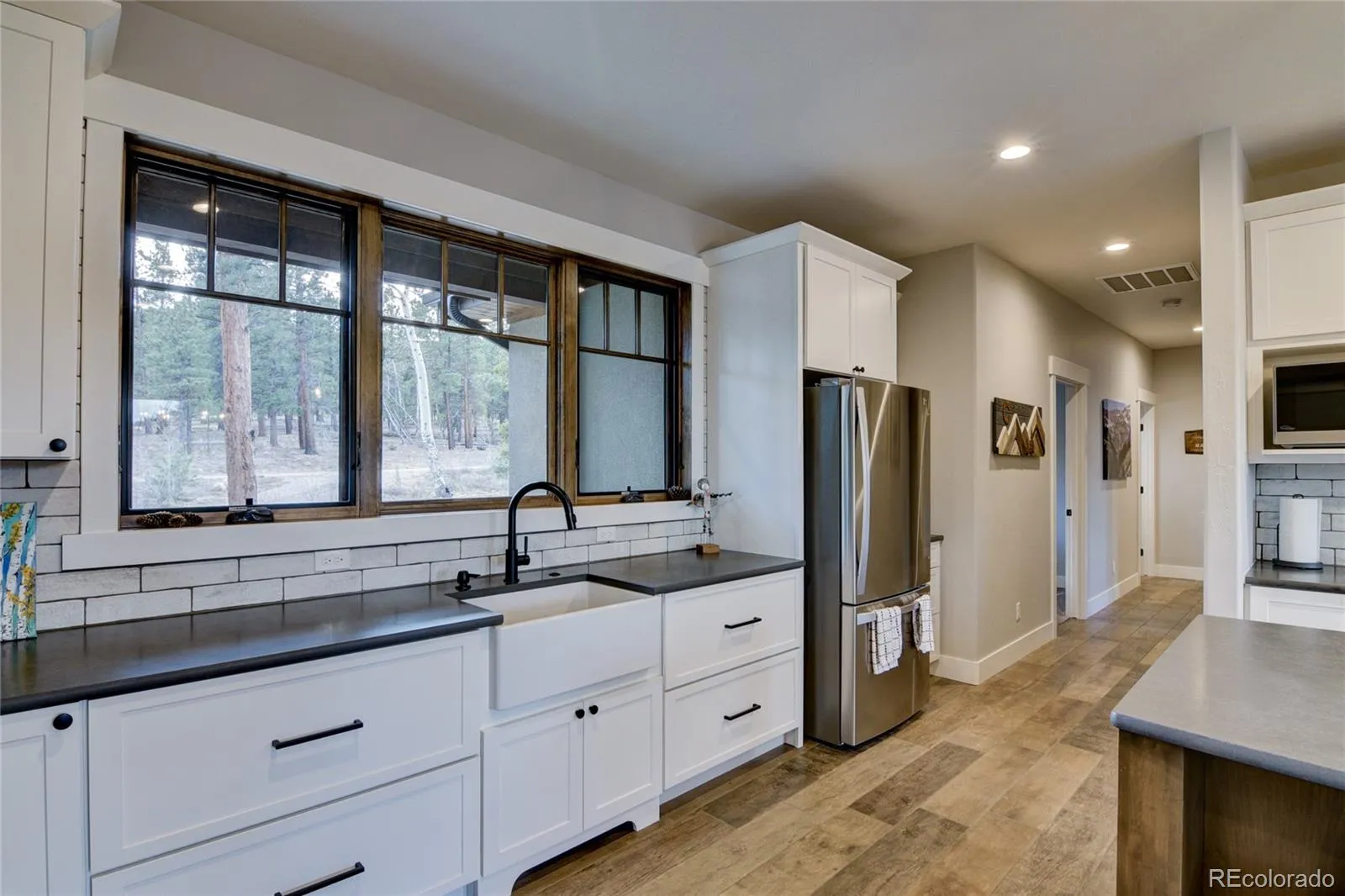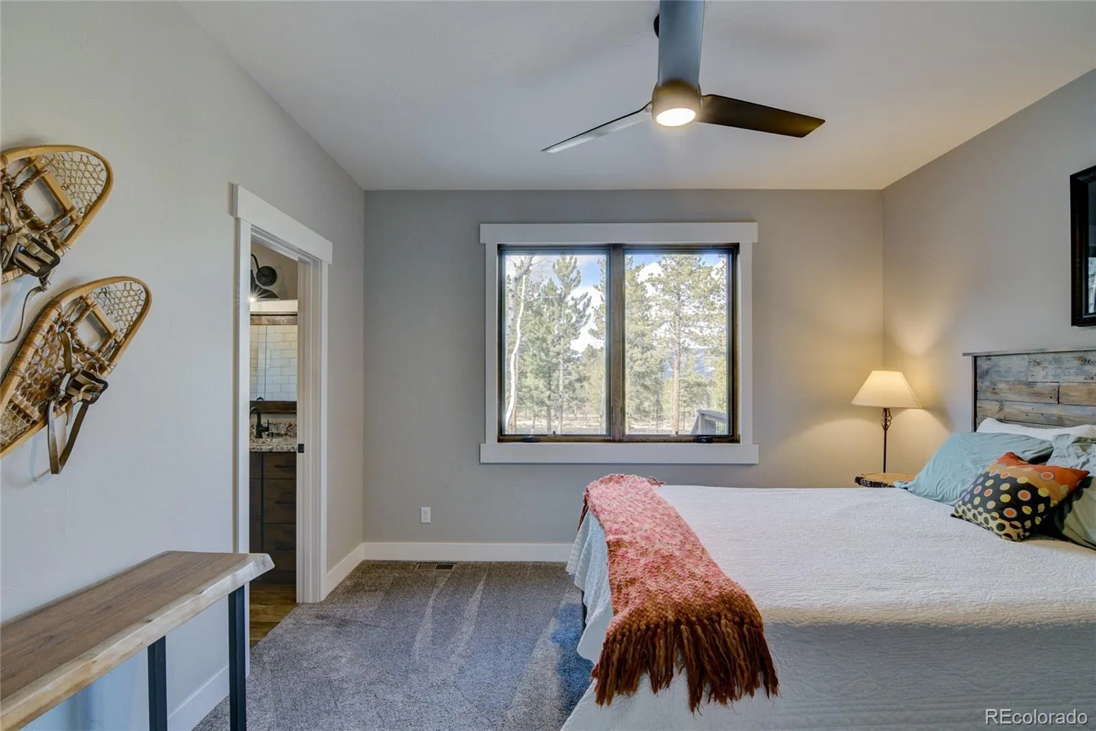 Everyone loves a custom, newer ranch style home, and this one has it all. With no stairs, 3 bedrooms, 3 bathrooms, and a 3 car garage, it offers comfort, convenience, and thoughtful design throughout. The beautiful lot features aspens, lodgepole pines, and borders Adventures Unlimited on the north side, giving you exceptional privacy with only the occasional sight of a few horses passing by. The exterior showcases attractive rock accents, low-maintenance stucco, and a spacious composite deck perfect for evening dining or relaxing in the sunshine. As you enter, a welcoming foyer leads you into a warm, cozy living room where the aroma of the wood-burning rock fireplace instantly makes you feel at home. The vaulted ceiling with wood tongue-and-groove accents adds rustic charm, while four large glass doors open to the back deck, filling the space with natural light and offering views of the wildlife that often wanders through the yard. The kitchen is truly a dream. Bright, white, and beautifully designed with abundant cabinetry, a large inviting island, a stylish farmhouse sink, and oversized pendant lighting that adds personality and warmth. Additional cabinets and counter space along the south wall provide even more storage, and the walk-in pantry includes electrical outlets so appliances can stay tucked away, keeping the counters clean and crisp. The desirable split floor plan features a spacious primary suite with a large bath and extended walk-in closet, while two additional bedrooms on the west side include one with its own ensuite bath. The oversized mudroom keeps coats, boots, and gear organized, and the 3-car garage is a welcome bonus. This home looks and feels like new, in a wonderful location close to paved roads, mailboxes, and endless outdoor recreation, National Forest access, hiking, biking, trails, hunting, and just 10 minutes from all the fun and charm of Buena Vista. I’m excited to show this property to you. I know you’ll love it!