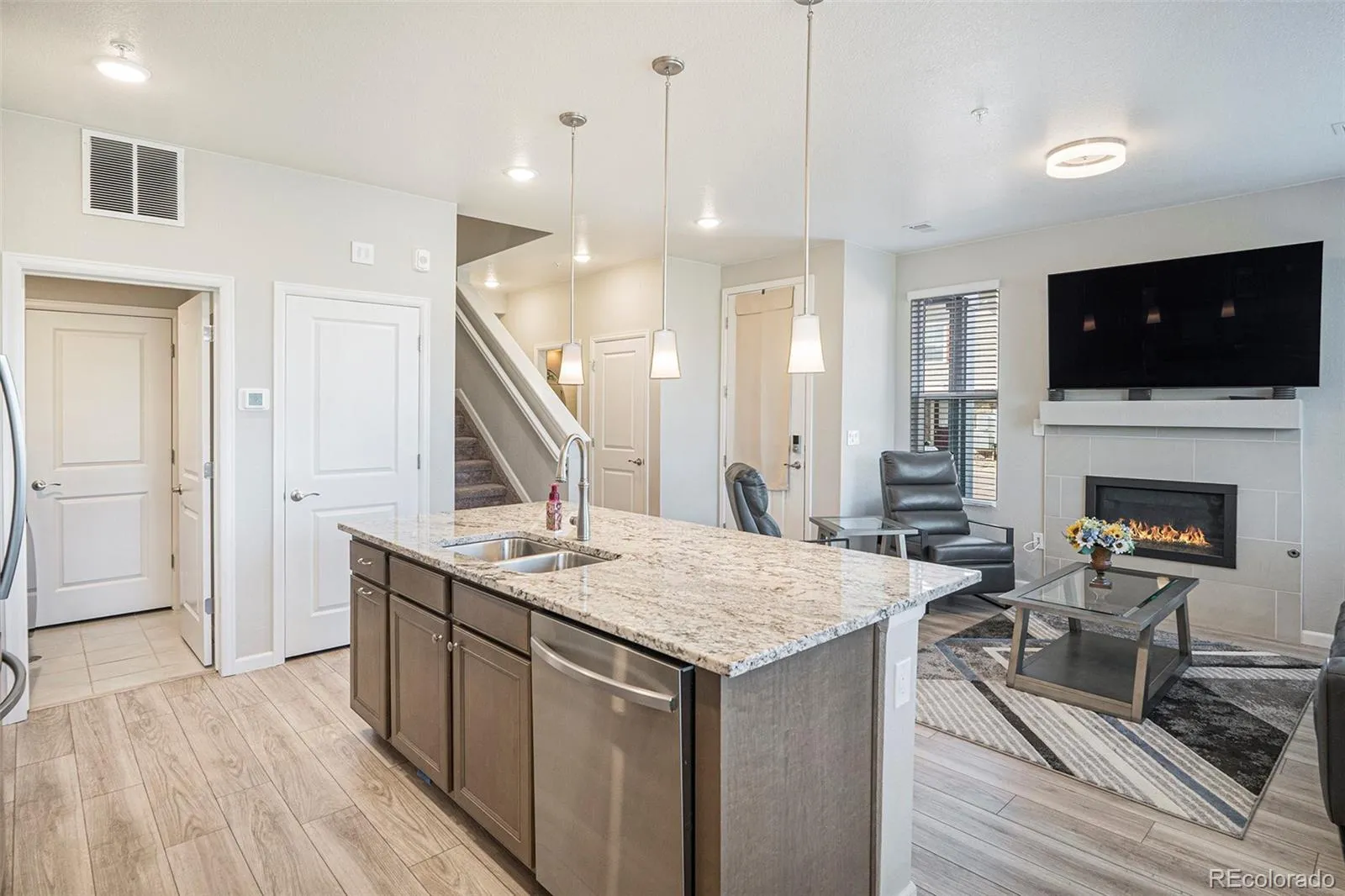 Location, Location! End unit with additional square footage and windows to make it light and bright! Longest driveway for off street parking, west facing for snow melt and lots of guest parking nearby* Like new, 3bed 3bath townhome + oversized attached garage* Modern Kitchen with grey cabinets, granite countertops, upgraded gas stove, Stainless steel appliances, large island overlooking the Dining and Living rooms* Cozy gas log fireplace*Luxury vinyl plank floors* Courtyard and patio off Dining with views from all windows of the open the space behind* Primary bedroom with large walk in Closet, double vanity sinks and soaking tub* Ceiling fans in all bedrooms* Tankless water heater* End of the community for privacy and open space with easy access to E-470 and Smoky Hill, near Southlands Mall and short commute to DIA* Low maintenance lifestyle with community pool, clubhouse, and other common areas* Many shopping and dining outlets within a close radius and in the award winning Cherry Creek School District* All furniture can be negotiable*
