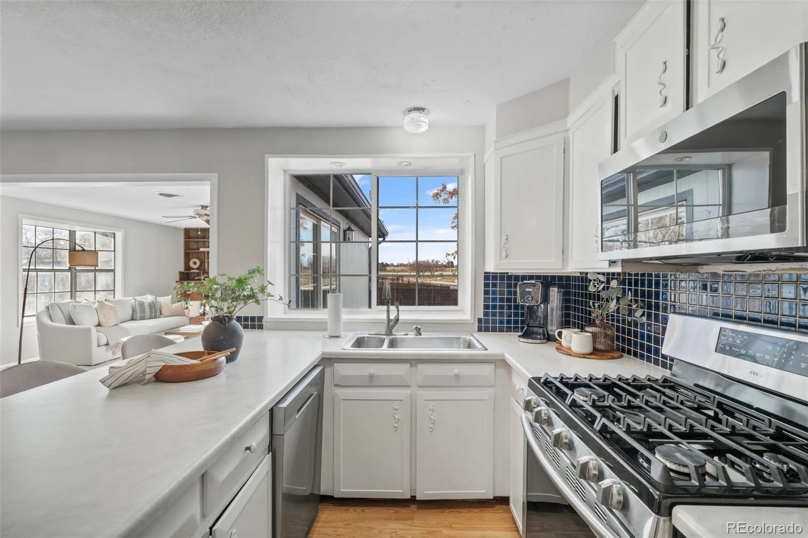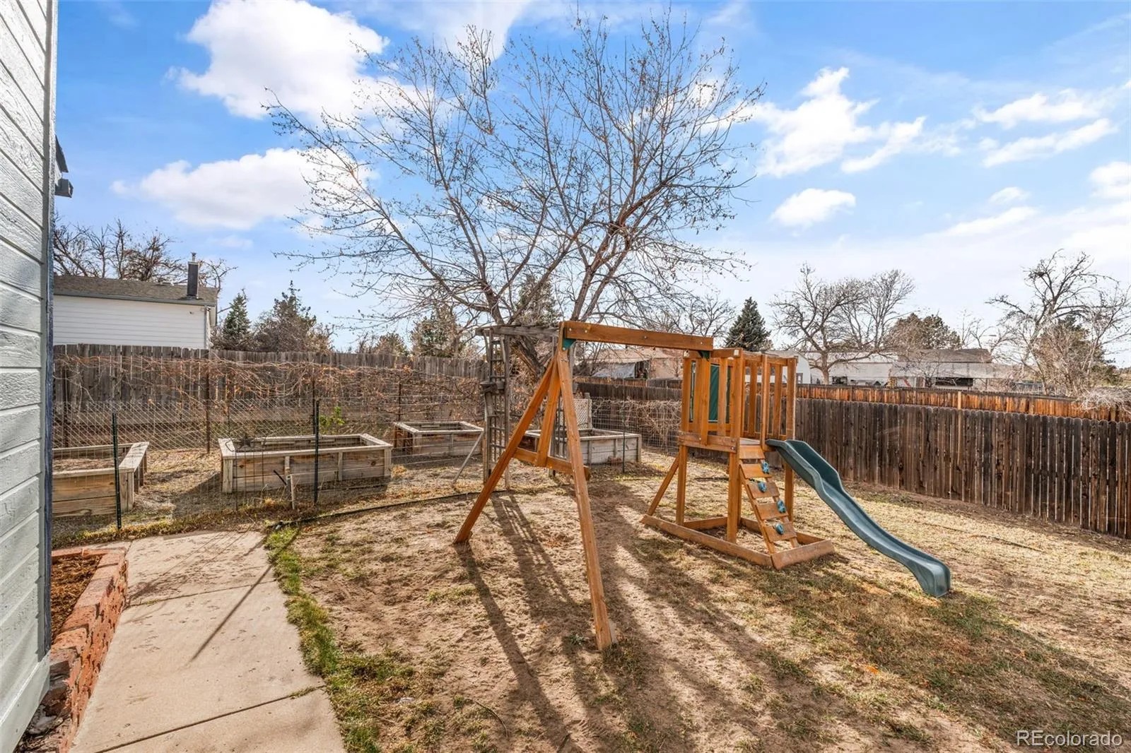 Welcome to this well-cared-for, original-owner corner-lot home in Aurora—thoughtfully maintained over the years with major system improvements and a layout designed for everyday comfort. The main level features a bright front formal living room with a large bay window, flowing into the kitchen with a gas range, stainless steel appliances, new faux-marble laminate countertops, abundant storage (don’t miss the pantry!), and space for both a breakfast nook and bar seating. Just through the kitchen you’ll find a second cozy living room filled with natural light, complete with beautiful built-ins, a wood-burning fireplace, and plenty of room for entertaining. Sliding glass doors lead to the expansive backyard. Outside, enjoy fresh exterior paint, a large concrete patio, mature shade trees, raised garden beds, and a stone-lined fire pit—creating endless options for outdoor living. The extended driveway and side-access brick paver area provide additional space for parking, trailers, or toys. On the main floor, you’ll find the primary suite with an en-suite ¾ bathroom, along with two additional generously sized bedrooms and a full bath off the hallway. The finished basement adds valuable flex space, including a large rec room, two flex-sized bedrooms, a full bathroom, a dedicated laundry room with cabinetry and workspace, and a separate storage/utility area. This lower level offers endless possibilities, guest area, hobby rooms, home office, or playroom. This home has been lovingly maintained and is move-in ready as-is, with plenty of opportunity to update, personalize, and build future equity at your own pace. Nearby, you’ll find Cherry Creek State Park, several neighborhood parks, and easy access to schools, shopping, and E-470. Centre Hills Park and its disc golf course are approximately a 12-minute drive away. Virtual Tour added so you can walk through house 🙂