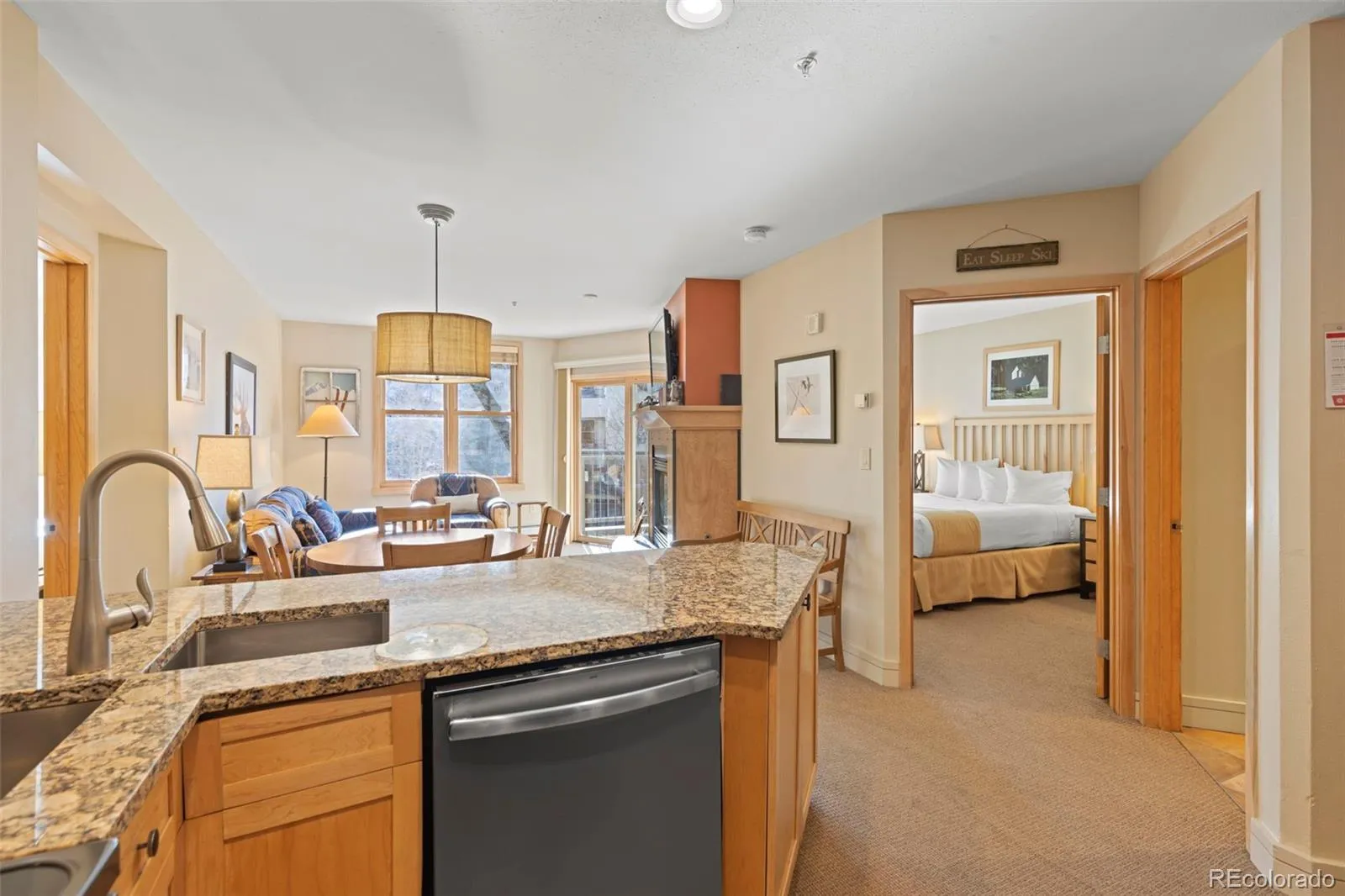 Sought after south facing River Run village 2 bedroom overlooking quiet courtyard and with great ski area views. Unique oversized walk-in primary bedroom closet. Special location near stairwell allows for very easy access to the Silver Mill courtyard and parking garage below (without utilizing the elevator and hallways). Updated with granite countertops and slate appliances in the kitchen, full master bathroom re-model with barn door, & more. Short walk to gondola & bars/restaurants. Heated underground parking, bike storage, fitness room, hot tubs, swimming pool, spacious lobby with billiards, sauna, and ski lockers. Short term rental friendly per current county and town guidelines. Your perfect ski condo hit the market just in time for ski season!