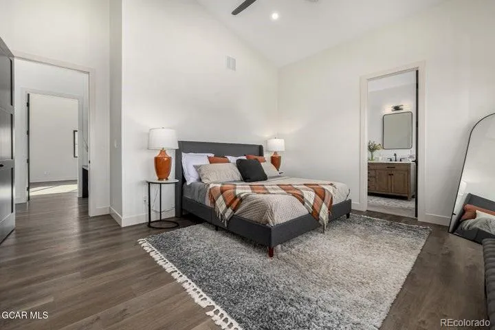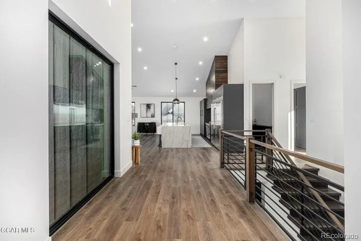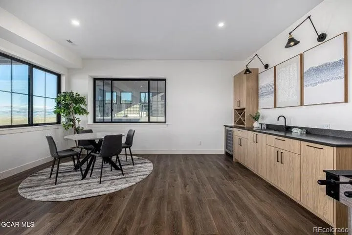 Wow! This extraordinary 7-bedroom retreat in Granby Ranch is truly a dream come true! Escape the city and savor crisp mountain air in this contemporary masterpiece, where spectacular vistas and impeccable craftsmanship take center stage. Step through the custom entry door to discover breathtaking design defined by clean lines, high-end finishes, and a modern, airy ambiance. The spacious living room welcomes you with an entertainer’s wet bar, while upstairs a stunning great room impresses with soaring ceilings and an in-wall gas fireplace. Thoughtful details shine throughout—recessed lighting, LVP flooring, stylish fixtures, sleek ceiling fans, and sweeping views of the snow-capped mountains from nearly every window. A showpiece worthy of a magazine, the kitchen radiates sophistication, with custom black cabinetry, stained shiplap accents, marble countertops & backsplash, stainless steel appliances, and a large waterfall island. The owner’s suite offers a luxurious escape, featuring a spa-inspired ensuite with a dual vanity, freestanding soaking tub, and beautifully tiled shower. A second primary suite elevates the experience further with its own lavish ensuite adorned with striking gold fixtures. Even the oversized garage impresses with custom lighting & pristine epoxy flooring. Enjoy serene moments on the cozy balcony or fire up the grill on the back patio. This one-of-a-kind gem truly has it all. Don’t miss the chance to make it yours!